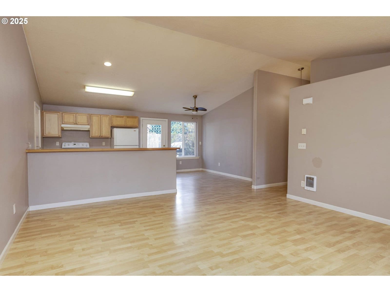 Discover comfort and convenience in this charming 3-bedroom, 2-bath ranch-style home tucked away at the end of a private flag lot. Nestled in a quiet setting, this property offers peace and privacy while still being close to everyday amenities.Step inside to find vaulted ceilings and an open layout that create a light and spacious feel.Laminate flooring flows through the main living areas, blending durability with style. The kitchenand dining spaces connect seamlessly, making it easy to gather and entertain.Outside, enjoy an easy-maintenance yard designed for simplicity, so you can spend more time relaxing and less time on upkeep. The single-level layout ensures comfort and accessibility, making this home a great fit for many lifestyles.