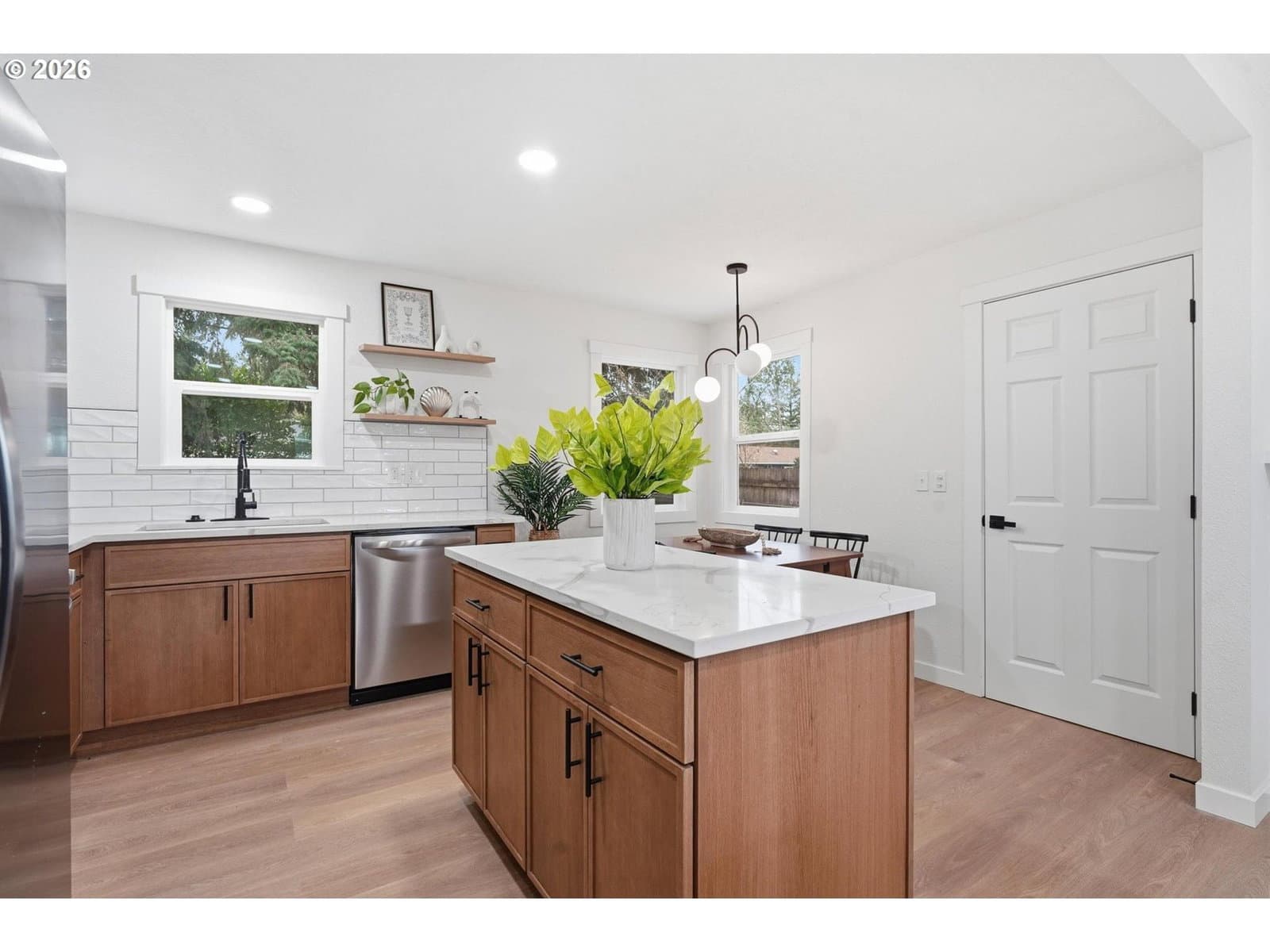 Open House Sunday 03/22 2:30-4:30PM. Welcome to your SE Portland retreat, where modern upgrades meet stylish charm in the heart of Brentwood-Darlington. Just minutes from Woodstock’s vibrant cafés, Sellwood’s scenic riverfront trails, and the open green spaces of Lents Park, this beautifully remodeled 2-bedroom, 1-bath home offers the perfect blend of comfort, convenience, and the Portland lifestyle you’ve been looking for. Step inside to a spacious living room anchored by a cozy fireplace—ideal for relaxing with a good book or enjoying time with friends and family. It has New doors, new windows, new LVP flooring, a fully remodeled kitchen with new appliances, an updated tiled bathroom, a new sewer cleanout, a new garage door opener, a new concrete driveway, a newer roof (2018), and fresh interior and exterior paint. Fully fenced with beautiful and large backyard. [Home Energy Score = 7. HES Report at https://rpt.greenbuildingregistry.com/hes/OR10245870]