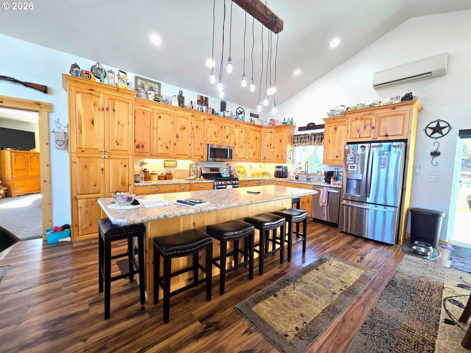 This custom-built Craftsman home is available for sale for the first time! Completed in 2021, the residence features steel framing and high-quality materials throughout. Located in the desirable Canyon Mt. Heights subdivision, this three-bedroom, two-bathroom home offers stunning views of Canyon Mountain and spans an impressive 1,860 square feet. Step inside to find exquisite hickory and knotty pine finishes, complemented by an open-concept kitchen equipped with a propane stove, perfect for both cooking enthusiasts and casual chefs. A mini-split system ensures optimal comfort year-round, providing efficient heating and cooling. The vaulted ceilings and trapezoid picture windows flood the space with natural light, creating an airy atmosphere. The spacious primary bedroom features knotty pine details, ADA-compliant doors, and an ensuite bathroom with a tiled walk-in shower, its own mini-split, and a large walk-in closet. Additional highlights include a whole-house on-demand propane hot water heater and a water filtration system, enhancing the home's functionality. You'll also appreciate the 528-square-foot attached garage and a separate 24x36-foot garage/shop that comes with a cement floor, bathroom, pellet stove, and 220 power—ideal for hobbies or additional storage. For those who love outdoor projects, a charming 12x20 finished she-shed features a loft, laminate flooring, power, and a cadet heater. The 0.36-acre property is beautifully landscaped, with an efficient sprinkler system to keep your landscaping green in the hot summer heat. RV parking with full hookups is available, making it easy for adventurers. Pride of ownership is evident throughout, making this Craftsman home a must-see! Schedule a viewing today to explore this remarkable property and all it offers.
