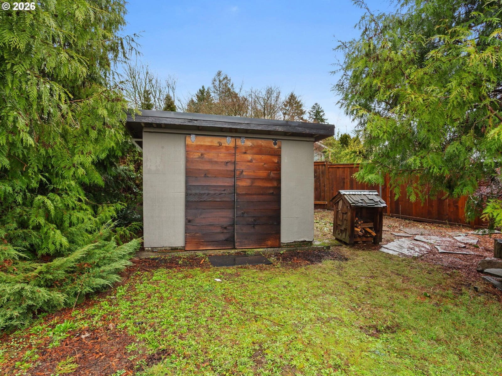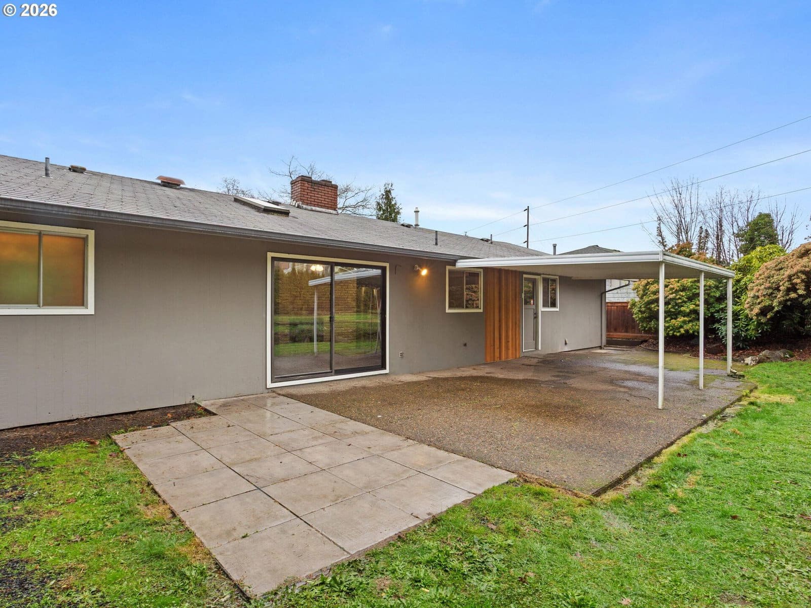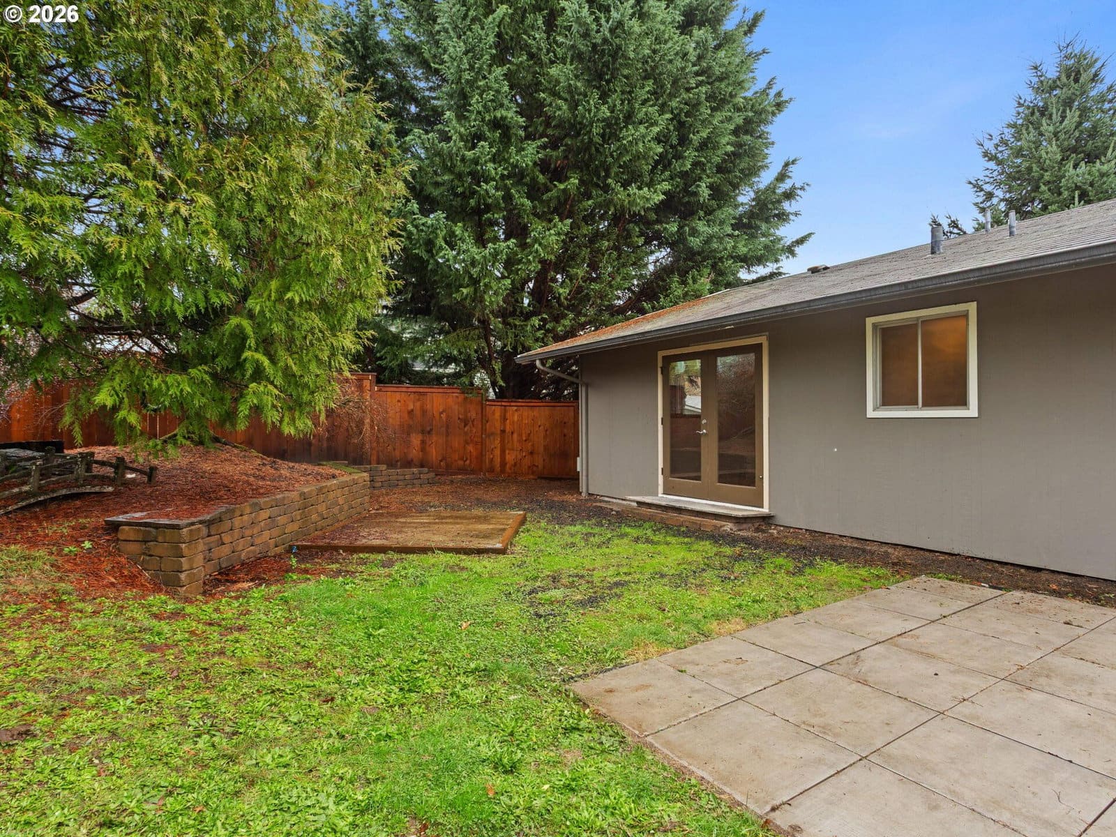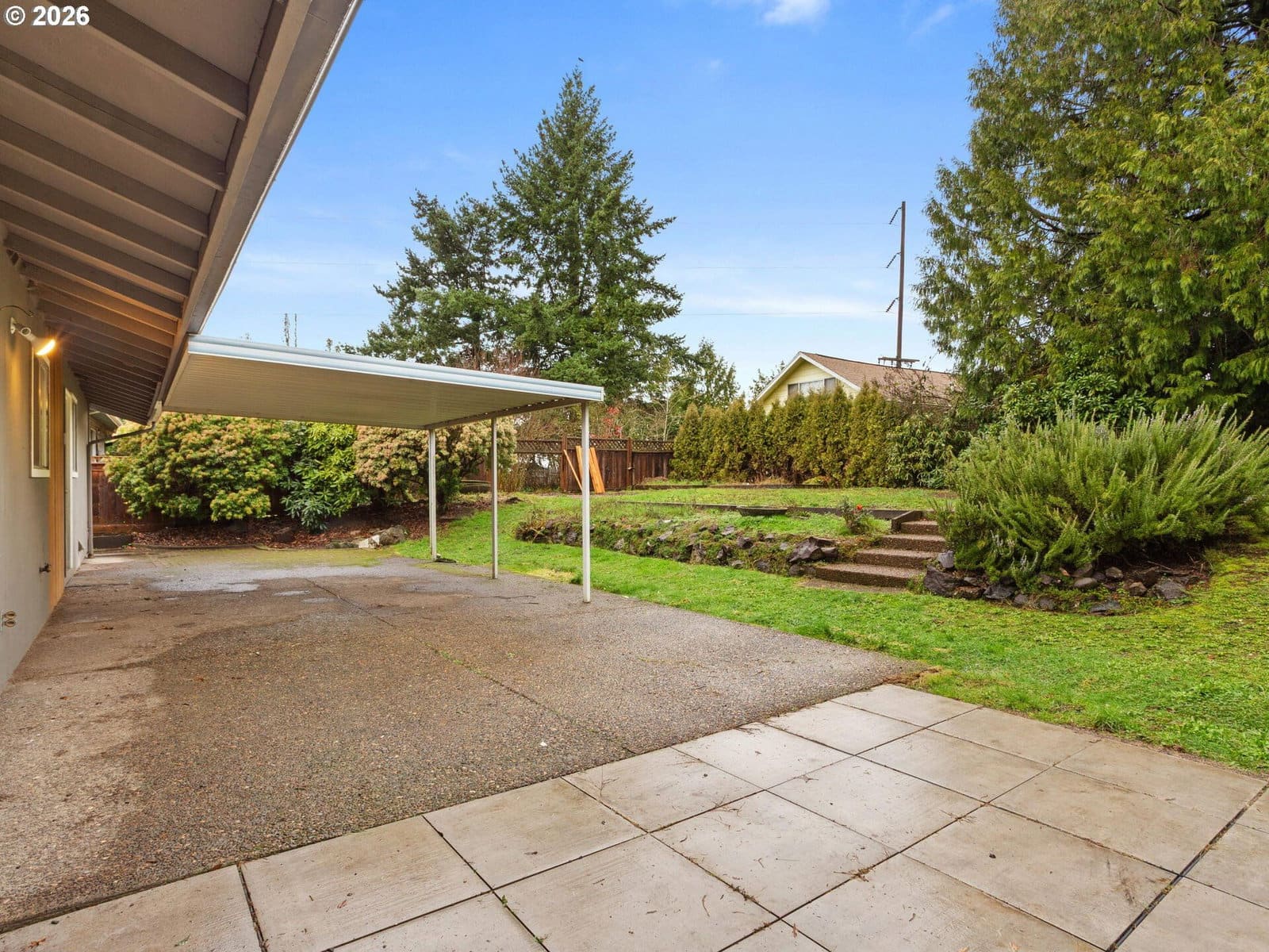 Mid-Century Modern Ranch Dream in Excellent Vermont Hills Location! Enter the hand scraped wood entry through oversized double doors, into this tastefully updated home, with thoughtful consideration to character and charm of mid-century living. Hand crafted wood paneled entry cove bench with area for shoe and coat storage, vinyl plank wood like floors throughout. Open living room with stately double sided brick fireplace, complete with large picture windows, overlooks the tree lined view of SW Portland. Spacious kitchen with plenty of storage and stainless steel appliances. Dining area with double doors leading to terraced backyard, garden beds, flat seating or possible firepit area, and hot tub pad with hookup. 3 full bedrooms, complete with primary suite and full updated bath with poured concrete countertops, custom overmount sink, and designer mirror and lighting. Patio door in primary leading to spacious and private backyard setting, with concrete pad, perfect for patio seating or a hot tub. Built-in shelving and desk in second bedroom. Oversized two car garage with additional workspace for hobbies and toys. Garage stairs lead down to finished storage area, perfect for hobbies, play, storage, or bring your imagination. Pool table included. New 25-year composition roof to be installed and included prior to closing. Open house Sunday, 01/11, from 11am - 1pm. [Home Energy Score = 5. HES Report at https://rpt.greenbuildingregistry.com/hes/OR10243343]