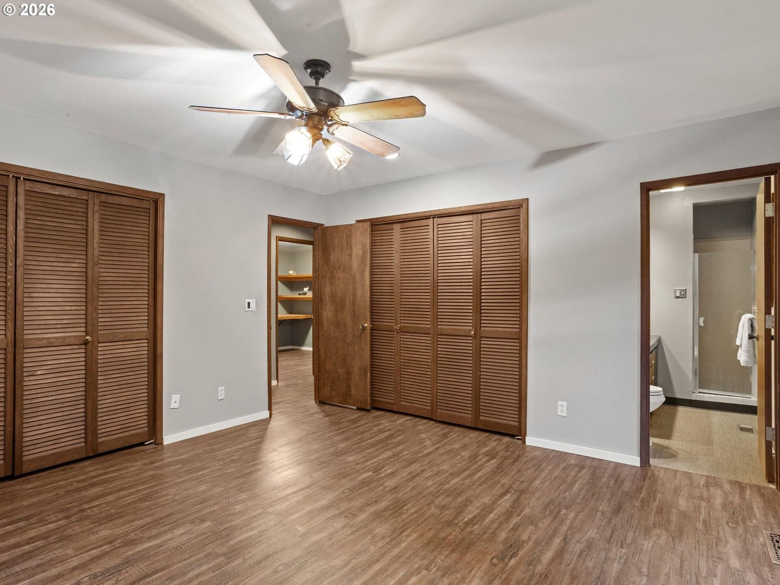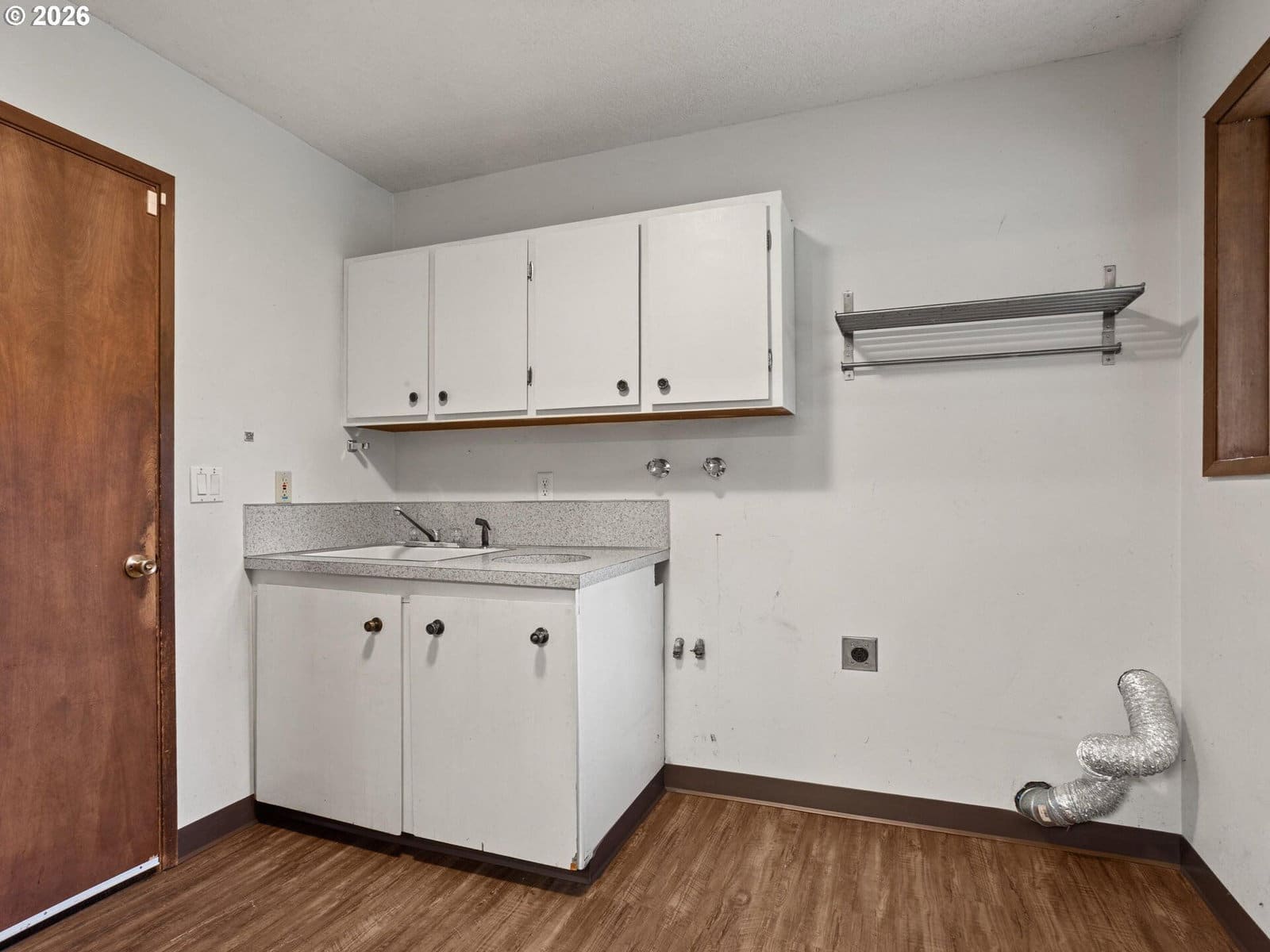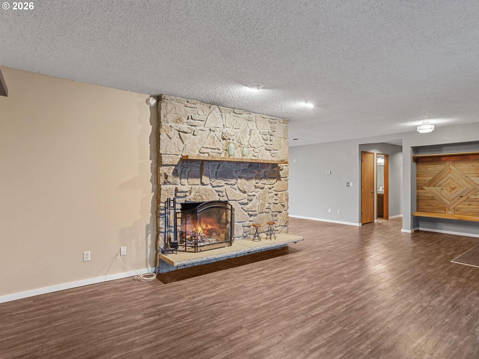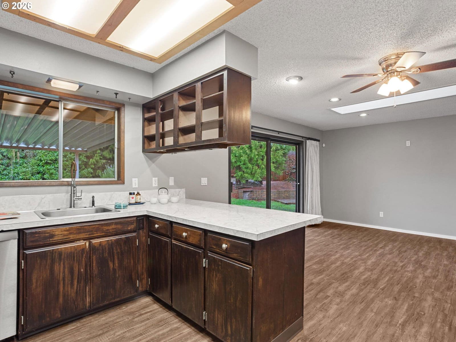 Mid-Century Modern Ranch Dream in Excellent Vermont Hills Location! Enter the hand scraped wood entry through oversized double doors, into this tastefully updated home, with thoughtful consideration to character and charm of mid-century living. Hand crafted wood paneled entry cove bench with area for shoe and coat storage, vinyl plank wood like floors throughout. Open living room with stately double sided brick fireplace, complete with large picture windows, overlooks the tree lined view of SW Portland. Spacious kitchen with plenty of storage and stainless steel appliances. Dining area with double doors leading to terraced backyard, garden beds, flat seating or possible firepit area, and hot tub pad with hookup. 3 full bedrooms, complete with primary suite and full updated bath with poured concrete countertops, custom overmount sink, and designer mirror and lighting. Patio door in primary leading to spacious and private backyard setting, with concrete pad, perfect for patio seating or a hot tub. Built-in shelving and desk in second bedroom. Oversized two car garage with additional workspace for hobbies and toys. Garage stairs lead down to finished storage area, perfect for hobbies, play, storage, or bring your imagination. Pool table included. New 25-year composition roof to be installed and included prior to closing. Open house Sunday, 01/11, from 11am - 1pm. [Home Energy Score = 5. HES Report at https://rpt.greenbuildingregistry.com/hes/OR10243343]