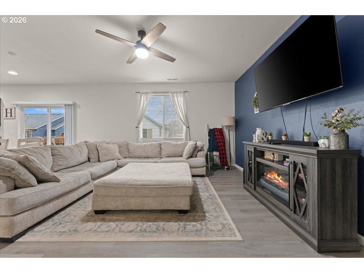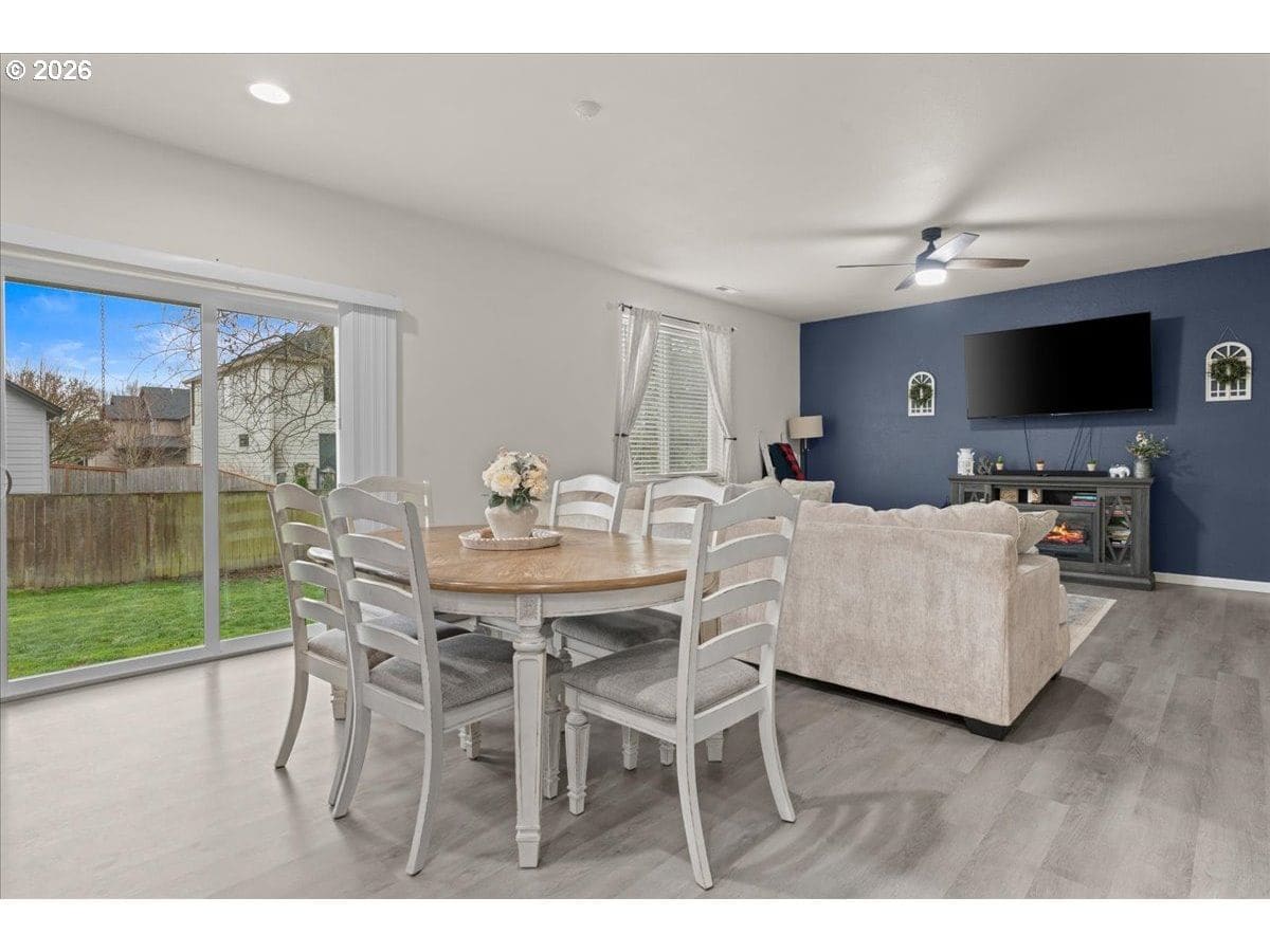 Welcome to a space designed for gathering, growing and making memories! The kitchen with an island, stainless steel appliances and a spacious pantry invites effortless entertaining while the adjoining dining area, with a sliding door to the backyard, creates seamless indoor-outdoor living perfect for summer barbecues and cozy evening dinners under the stars. The main level offers both a welcoming living room and a comfortable family room, giving everyone space to spread out or come together. Whether it’s a celebration or quiet nights in, this home adapts to every season of life. Upstairs, find the primary suite featuring a walk-in closet and bath—your own peaceful escape at the end of the day. A versatile loft or sitting area provides the perfect flex space for a game room, craft studio, or inspiring home office. With the laundry room conveniently located on the upper level, everyday routines feel just a little easier. Step outside to a fully fenced backyard designed for connection and comfort. Enjoy mornings under the covered patio, evenings around the fire pit, and plenty of room to play. Beyond your front door, the community truly shines—offering a clubhouse and pool. It’s more than a home; it’s a lifestyle filled with opportunity to connect, unwind, and belong.