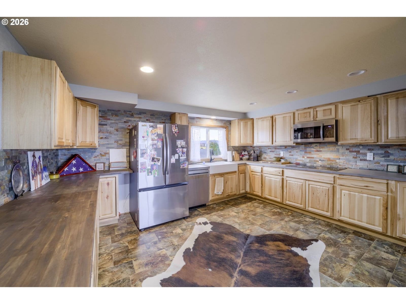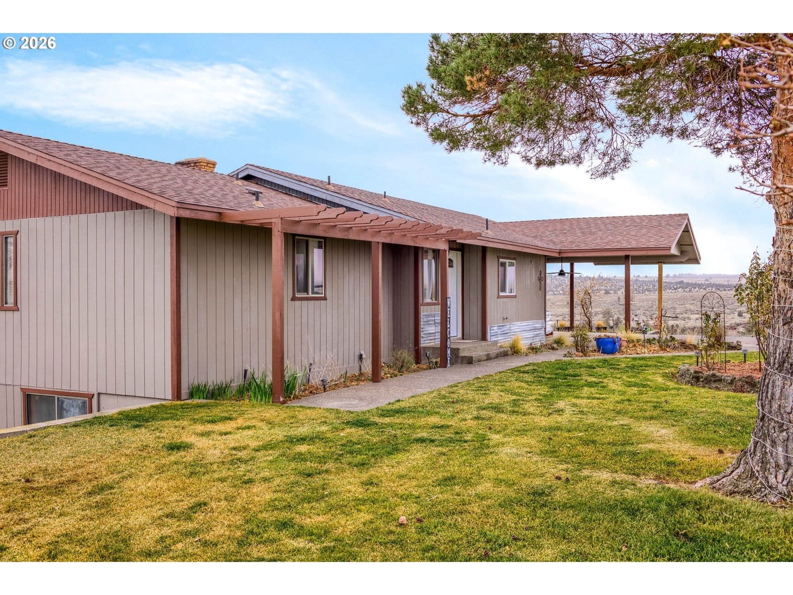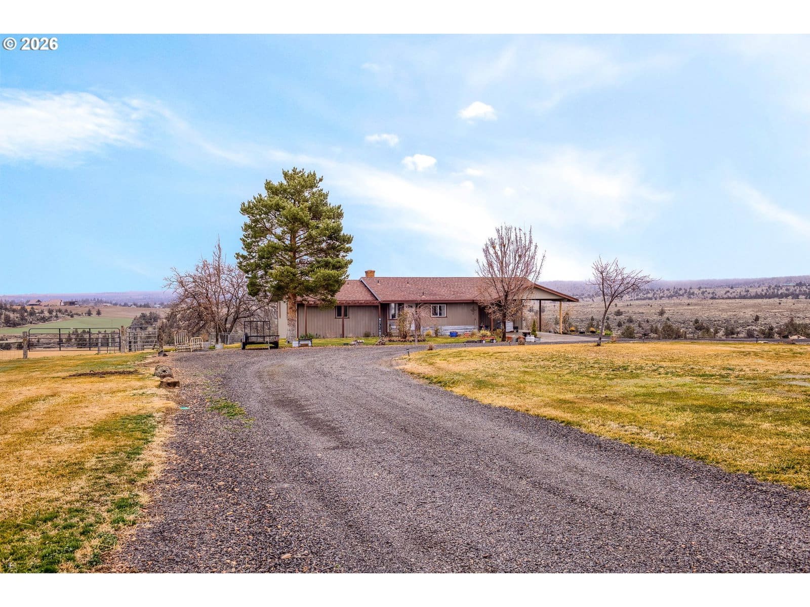 Welcome to SE Dover Lane! Modern living with country charm that Central Oregon offers. Easy access to Madras, Prineville, Redmond. This ranch style home has a full daylight basement with its own private access. 4 bedroom, 2.5 bath home sits on 10.49 acres with 9.7 acres irrigated in second year orchard grass producing over 7 tons of hay. Primary suite on main level with updated bathroom and walk in closet, large living room with big windows and small covered deck to take in the views, guest room, updated guest half bath, remodeled kitchen with new appliances, a versatile mud room/office/sew room that opens up into the 2 car attached carport. Downstairs has two large bedrooms, remodeled bath, storage, laundry room and nice living space with large windows. Outdoors, enjoy mountain views, beautifully landscaped grounds, garden area, hay storage, small livestock stall, fenced and crossed fenced, arena area and a 28x48 shop with heat, water and 220V inside and out, 2 sinks, wood stove, electric garage door with room for possible additional one, piping for air compressor inside shop. Don't miss this opportunity. Owner is licensed Oregon Realtor. Possible partial seller financing, priced to sell and looking at all offers. Built in double ovens, microwave, dishwasher and Induction cook top, butcher block countertops, tile back splash, disposal, plumbed for ice in frig and deep Farm Style white sink. Free standing Fireplace, underground sprinklers, new pellet stove. All Hand Line pipe and Main line pipe on property is included. Pond is off of Dover lane and has it's own pump shed, power meter pump and pipe. Water pond is shared with immediate neighbor. Pond is on Dover Ln. away from property, power meter is in owner's name, pump is co-owned with immediate neighbor including maintenance. No unit states recorded easements to pond; just not from pond to property; main lines owned independently.