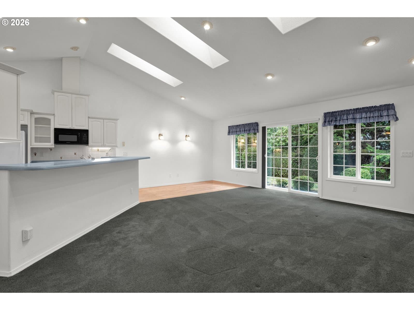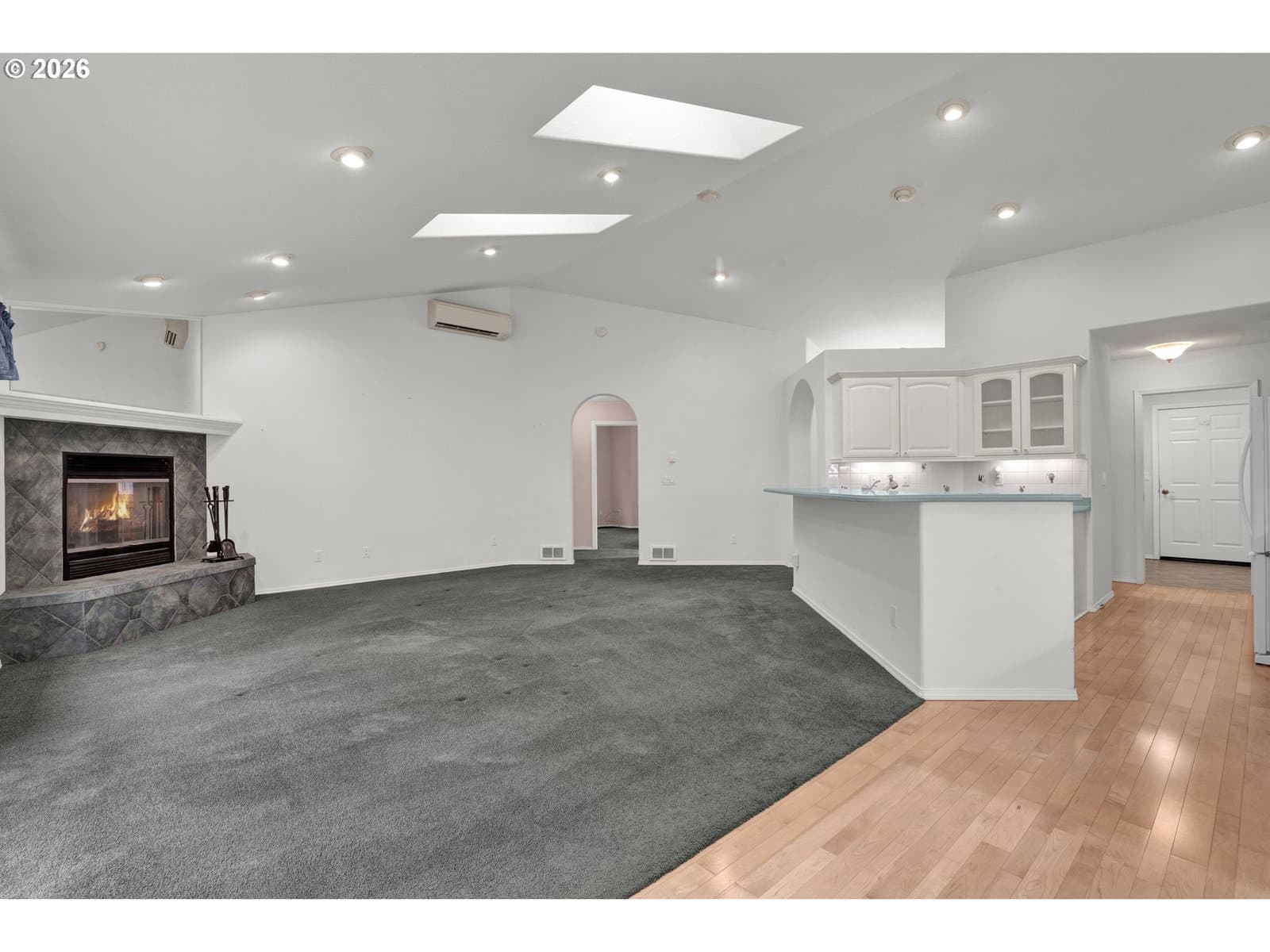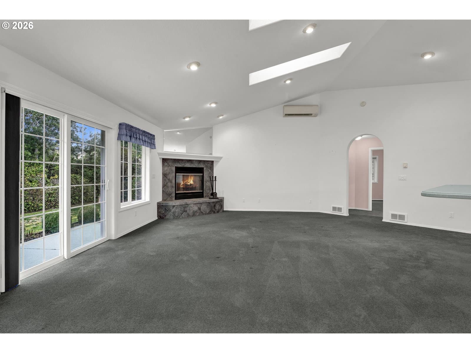 Located on a quiet cul-de-sac in the desirable Idylewood development in Florence’s beach area, this well-designed 3-bedroom, 2-bath home offers 1,735 square feet of comfortable living space with thoughtful separation of rooms and inviting coastal charm. Built in 2004, the home welcomes you with a large covered front porch and wood-floor entry that leads into a vaulted living room featuring skylights, a propane fireplace, and a sliding glass door to the backyard patio. The open floor plan flows seamlessly through the dining area and kitchen, where maple wood floors, a breakfast bar, ample cabinetry, and generous counter space make everyday living and entertaining easy. The primary suite is privately situated with vaulted ceilings, its own sliding glass door to the patio, a spacious walk-in closet, and an en-suite bath with dual sinks and a step-in shower. On the opposite side of the home are two additional bedrooms, including one with a charming bay window, along with a second full bath. Carpeted living and bedroom spaces add warmth, while the laundry room with sink and oversized garage provide practical convenience. The backyard features a patio and shed, completing this well-rounded home in a peaceful coastal neighborhood.