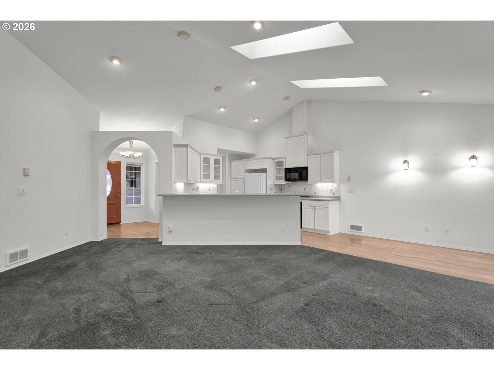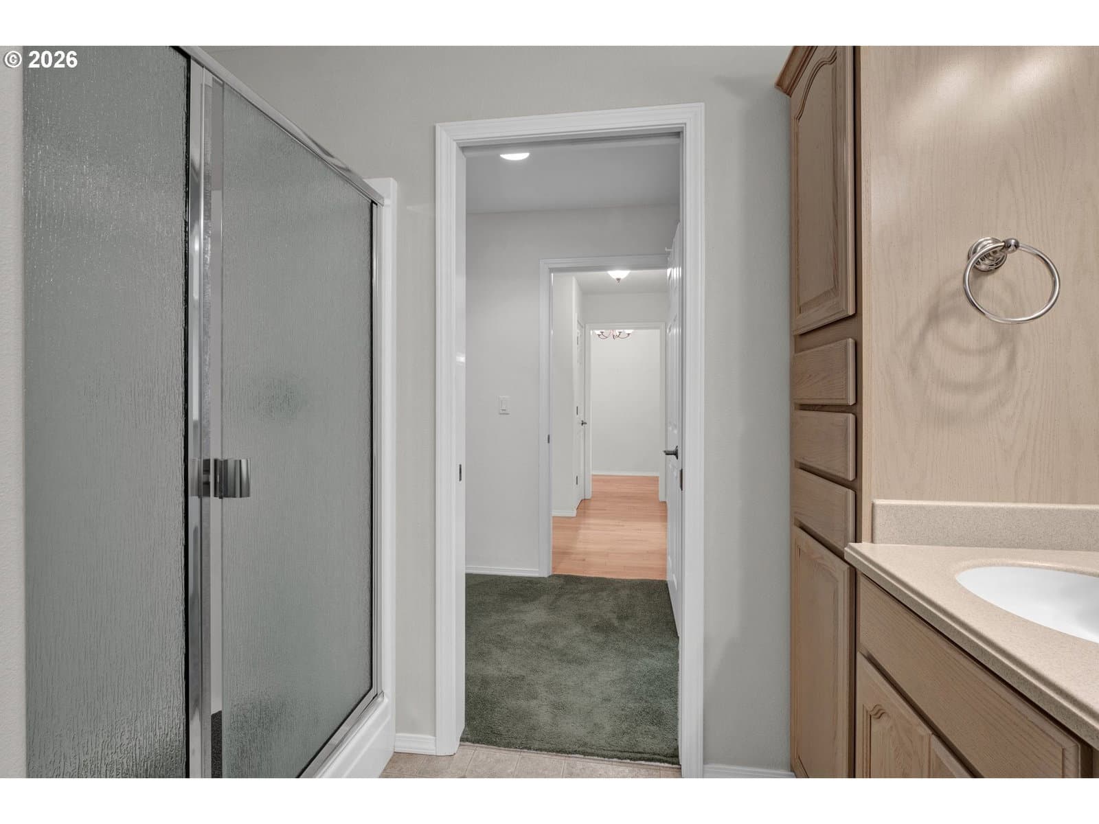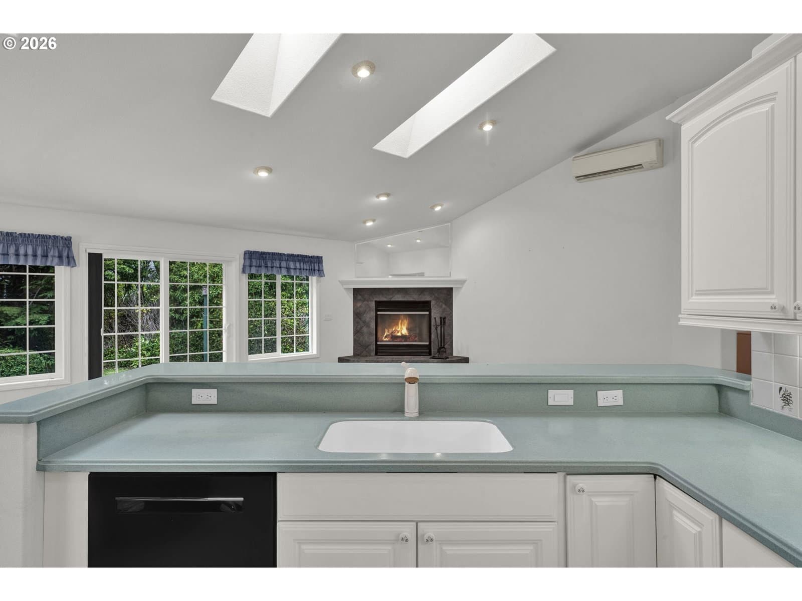 Located on a quiet cul-de-sac in the desirable Idylewood development in Florence’s beach area, this well-designed 3-bedroom, 2-bath home offers 1,735 square feet of comfortable living space with thoughtful separation of rooms and inviting coastal charm. Built in 2004, the home welcomes you with a large covered front porch and wood-floor entry that leads into a vaulted living room featuring skylights, a propane fireplace, and a sliding glass door to the backyard patio. The open floor plan flows seamlessly through the dining area and kitchen, where maple wood floors, a breakfast bar, ample cabinetry, and generous counter space make everyday living and entertaining easy. The primary suite is privately situated with vaulted ceilings, its own sliding glass door to the patio, a spacious walk-in closet, and an en-suite bath with dual sinks and a step-in shower. On the opposite side of the home are two additional bedrooms, including one with a charming bay window, along with a second full bath. Carpeted living and bedroom spaces add warmth, while the laundry room with sink and oversized garage provide practical convenience. The backyard features a patio and shed, completing this well-rounded home in a peaceful coastal neighborhood.