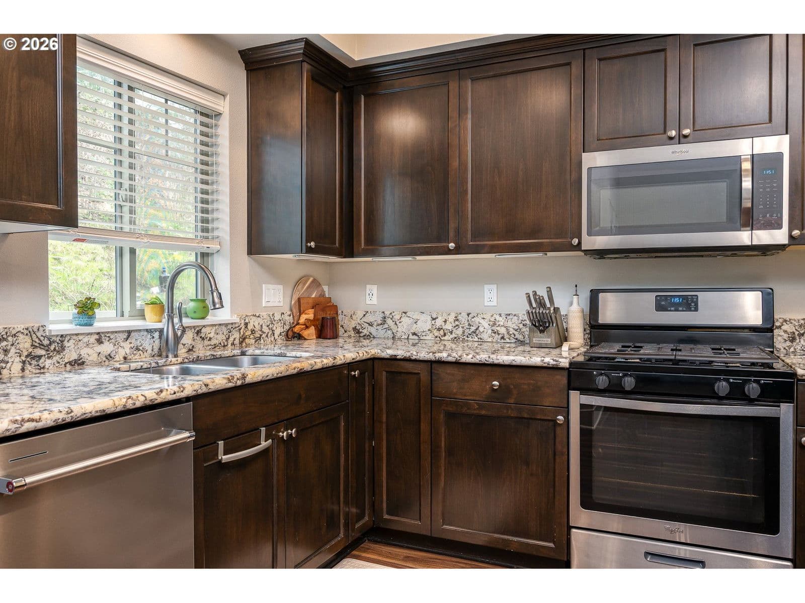 Beautifully updated townhouse in the Crest View Townhomes community offering comfort, functionality, and thoughtful upgrades throughout. The well-maintained interior features a stylish kitchen with granite island, eat-in nook, gas range, built-in micro-hood, new dishwasher, and ample workspace for cooking and gathering. The inviting living room includes a gas fireplace and ceiling fan, creating a comfortable and welcoming space.The spacious primary bedroom showcases vaulted ceilings, a walk-in closet, and a full bathroom with double vanity and tile flooring. A UV-filmed window provides added comfort and efficiency. Step outside to enjoy the private covered patio with gas hookup, ideal for outdoor cooking or relaxing.Additional highlights include central air conditioning and plumbing for central vacuum. The HOA provides front exterior maintenance along with access to community amenities including a pool, fitness room, and recreation space. Conveniently located near walking trails, parks, a dog park, and river access. Property is located within the Clackamas School District.