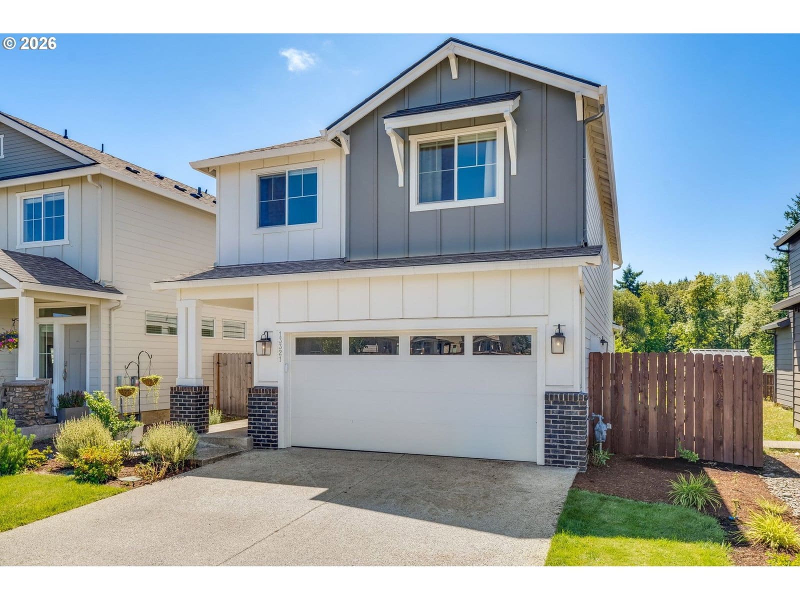 This thoughtfully designed home features an open-concept layout with 9-foot ceilings, a dedicated office on the first floor, and a stunning upgraded kitchen with freshly painted cabinets. The kitchen is a true standout with stainless steel appliances, quartz countertops, full-height cabinetry, custom paint, a large island with seating, and a oversized walk-in pantry. The inviting living area includes a modern electric fireplace and built-in storage, while the upstairs loft provides a versatile bonus space ideal for a media room, playroom, or second office. The private primary suite offers double sinks, a soaking tub, and a generous walk-in closet. Step outside to a backyard retreat designed for relaxation and gardening enthusiasts. A covered Trex deck overlooks beautifully maintained garden beds filled with roses, flowers, tomatoes, and more, along with mature trees that enhance the privacy of the no-rear-neighbor setting. Additional highlights include extra cabinetry throughout, a convenient upstairs laundry room with a deep sink, and included washer, dryer, and refrigerator — making this home truly move-in ready!