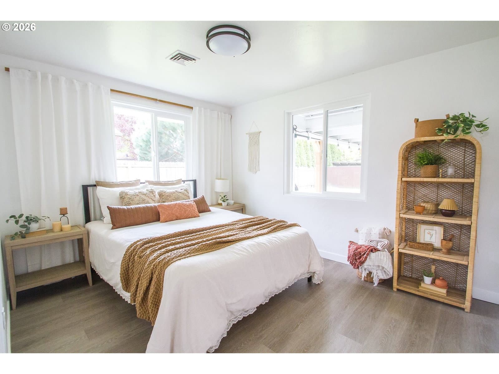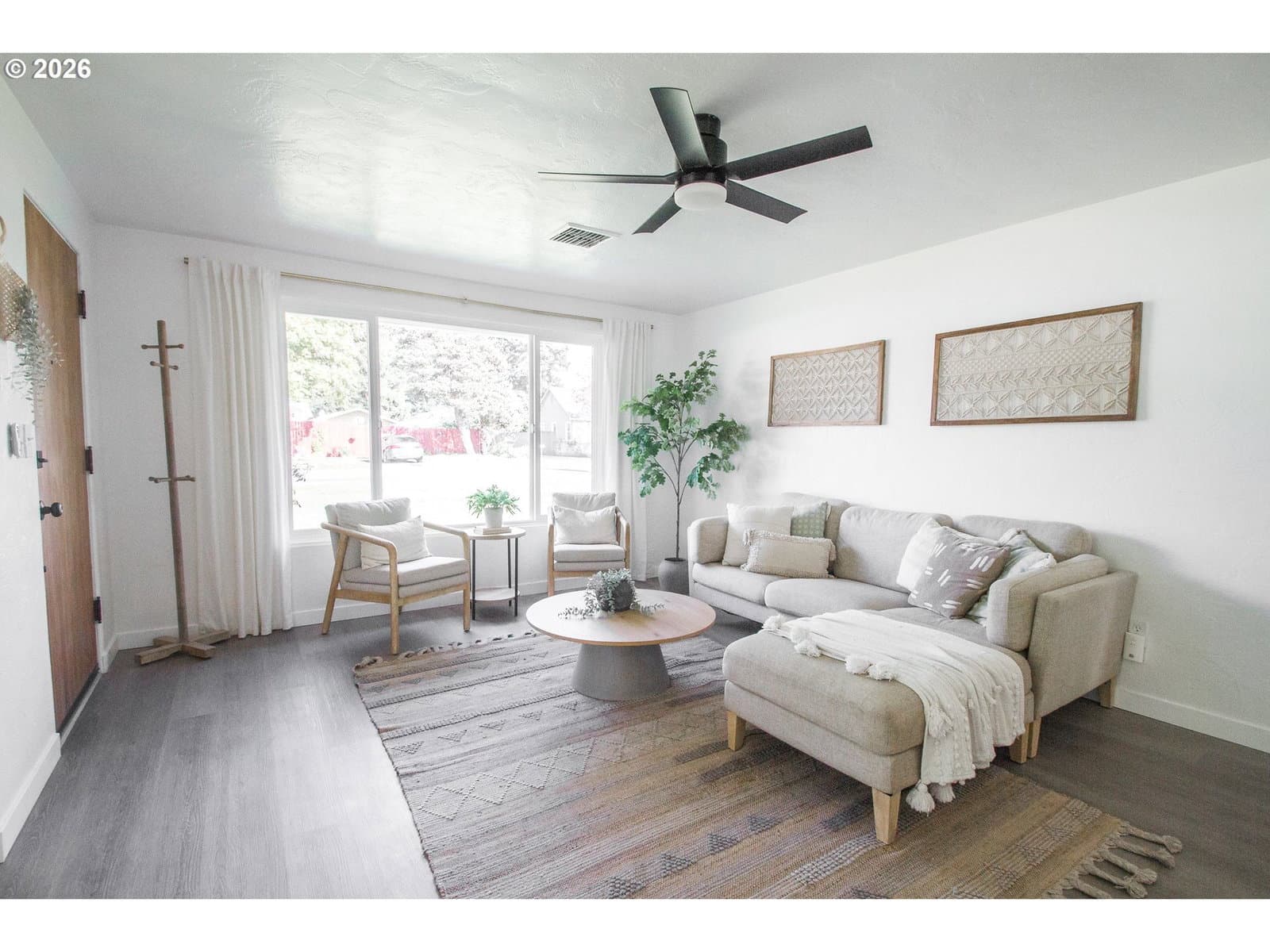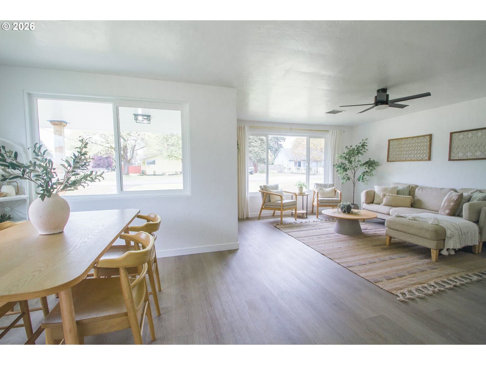 Updated and move-in ready, this single-level ranch style home offers 3 bedrooms, 1 bathroom, and 1,196 sq ft of thoughtfully refreshed living space in a highly convenient Eugene location. Recent upgrades include new flooring, fresh interior and exterior paint, and new windows, along with a newer roof and HVAC system for added peace of mind and comfort.Situated on a large corner lot, the property provides added space and flexibility, along with a fully fenced yard ideal for outdoor living, pets, or gardening. RV parking adds valuable convenience for extra vehicles, trailers, or recreational use.Enjoy quick access to freeways, schools, public transportation, airport, making commuting and daily travel simple and efficient.A true move-in ready updated home with strong functionality, major system updates, and a prime corner lot location—ready for its next owner.
