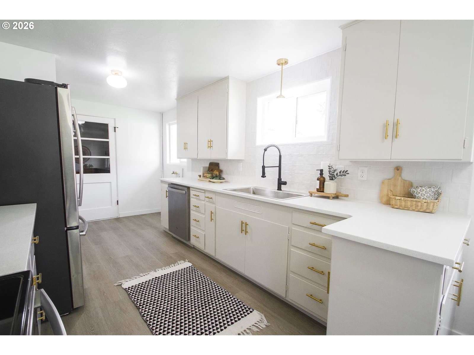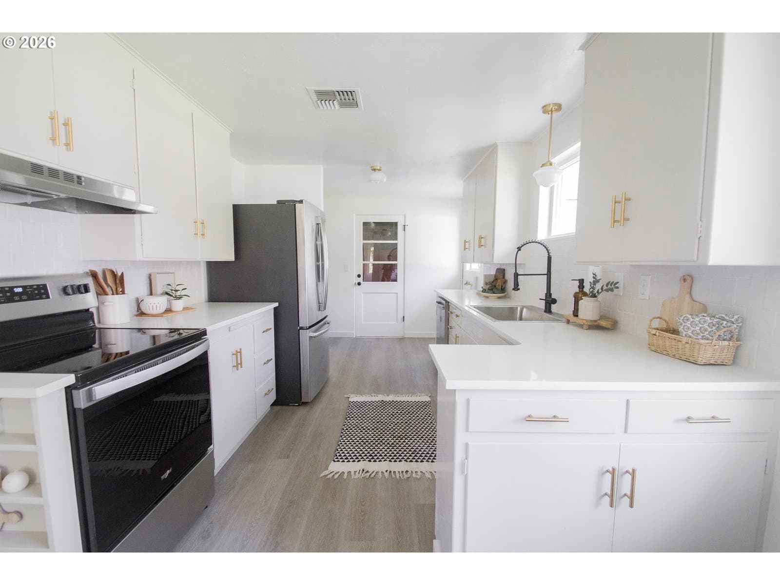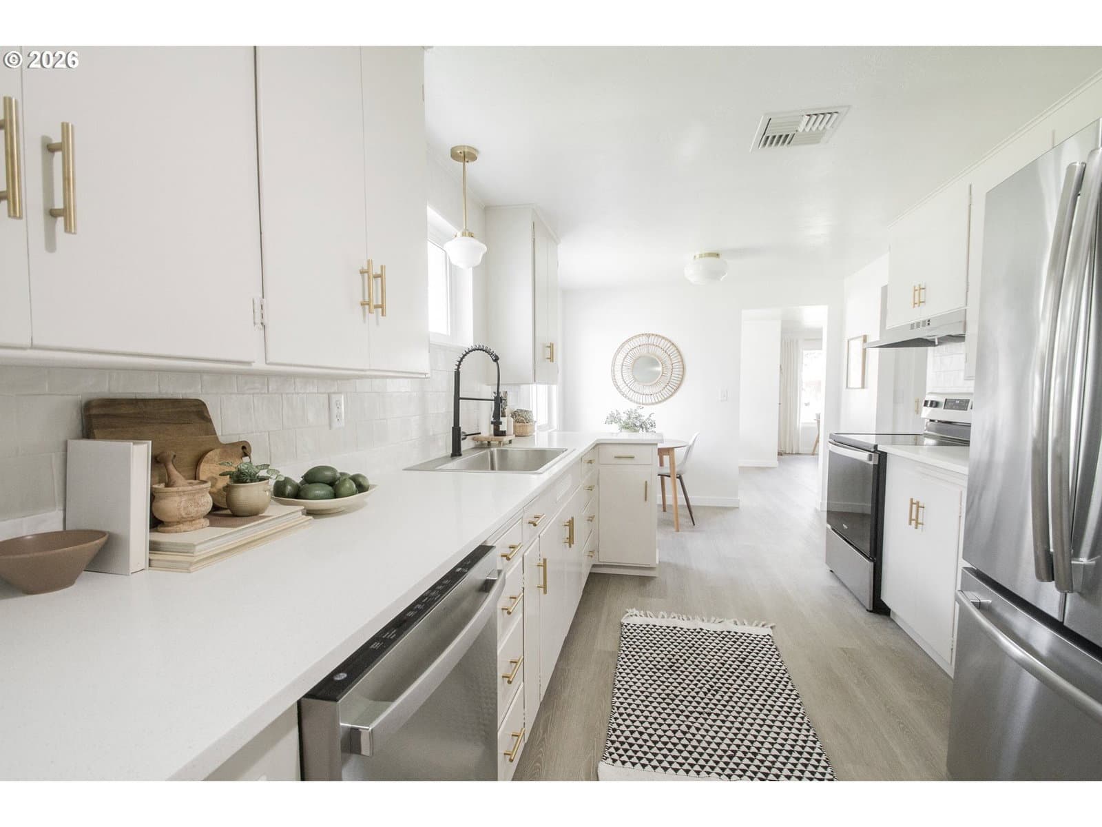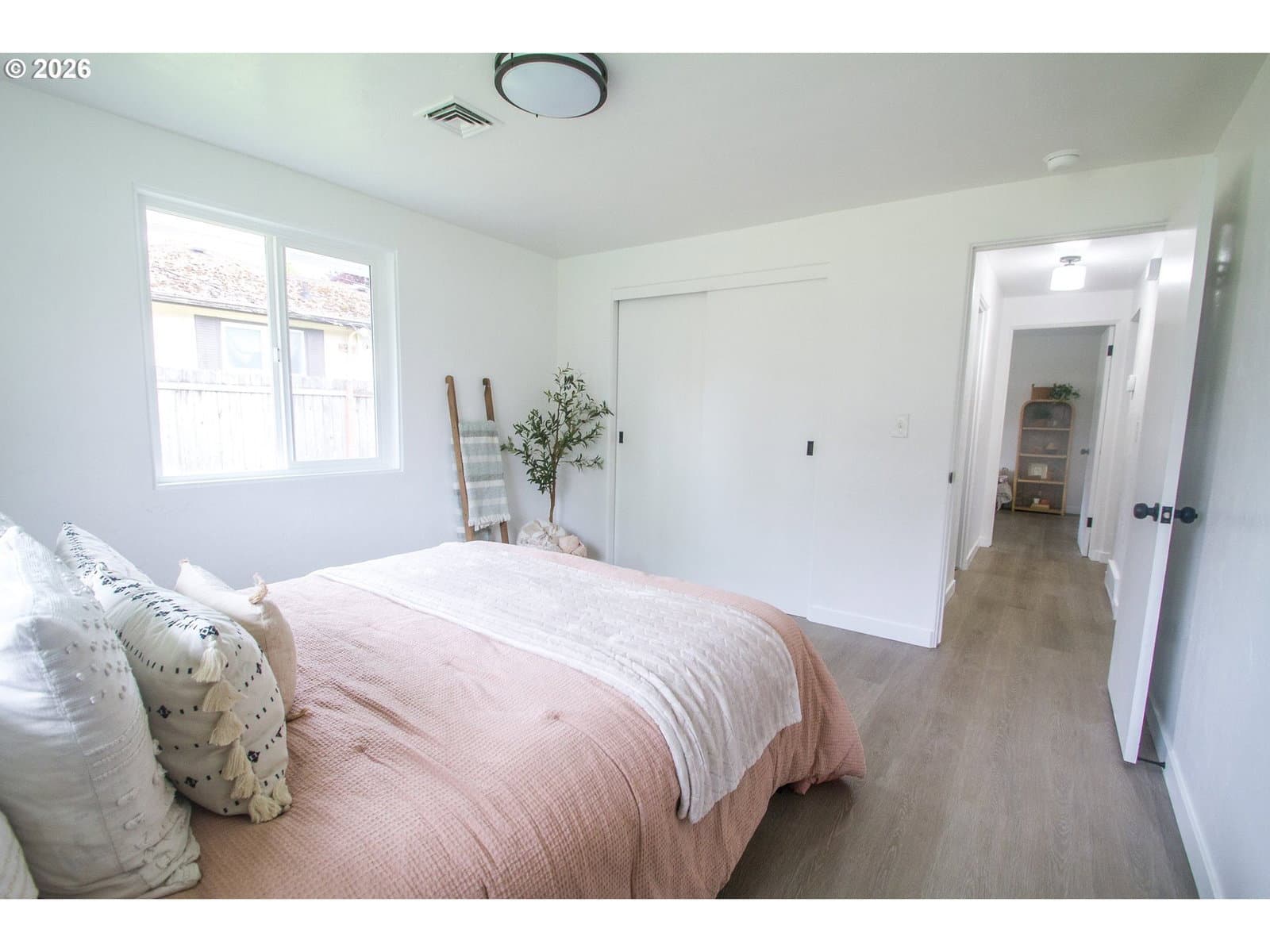 Updated and move-in ready, this single-level ranch style home offers 3 bedrooms, 1 bathroom, and 1,196 sq ft of thoughtfully refreshed living space in a highly convenient Eugene location. Recent upgrades include new flooring, fresh interior and exterior paint, and new windows, along with a newer roof and HVAC system for added peace of mind and comfort.Situated on a large corner lot, the property provides added space and flexibility, along with a fully fenced yard ideal for outdoor living, pets, or gardening. RV parking adds valuable convenience for extra vehicles, trailers, or recreational use.Enjoy quick access to freeways, schools, public transportation, airport, making commuting and daily travel simple and efficient.A true move-in ready updated home with strong functionality, major system updates, and a prime corner lot location—ready for its next owner.