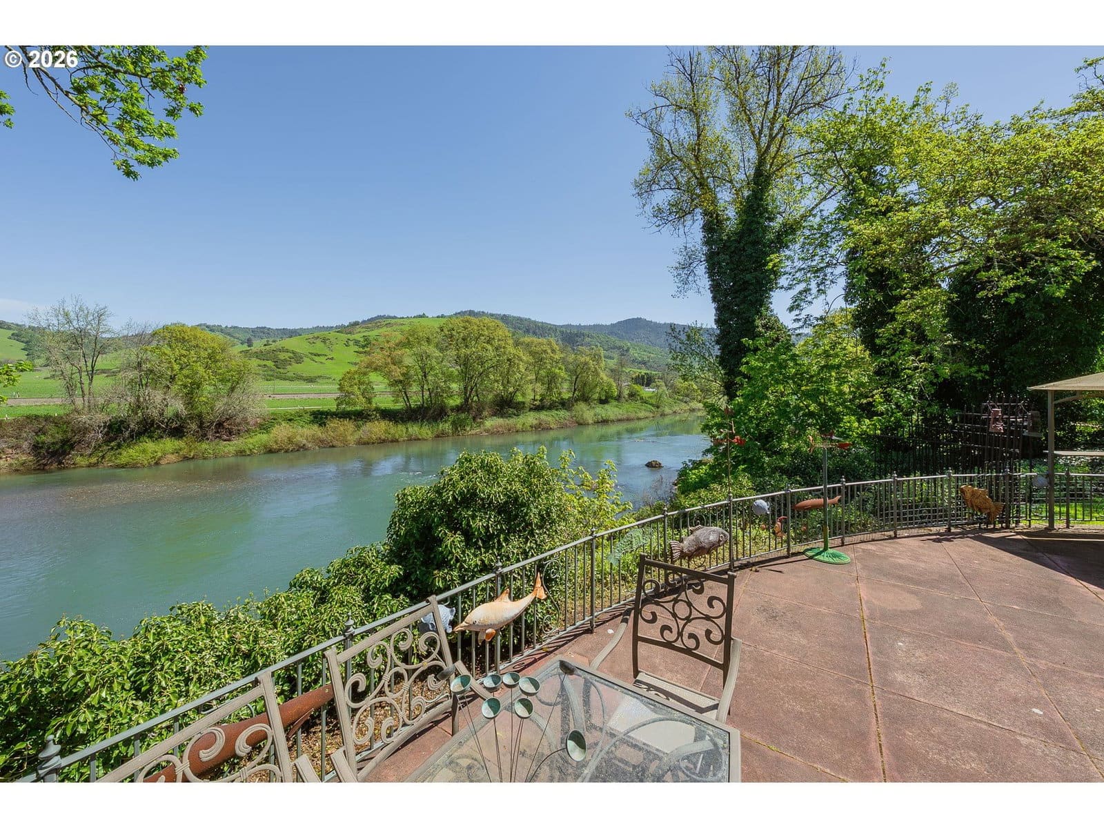 This is the dream home. Sitting on 3.07 acres right on the South Umpqua River, it truly has more than you could ever ask for.Built in 1952, this mid-century modern home is full of character at every turn. The kitchen has been beautifully updated with an island, under-cabinet lighting, stainless steel appliances, and double ovens—perfect for hosting. You’ve got a formal dining space with a pass-through and extra pantry storage.There’s a cozy den with a wood-burning fireplace and multiple access points leading out to the patio overlooking the river—perfect for relaxing or entertaining. The main living room features another fireplace and huge windows that take in incredible views of the valley and the flowing South Umpqua.The primary suite has been thoughtfully renovated with a walk-in shower and walk-in closet, and the home also offers a spacious laundry room with tons of storage. And don’t miss the original green tiled bathroom—such a fun, timeless detail you won’t want to miss.Outside, you’ve got a circular asphalt driveway, a breezeway/carport leading to a two-car garage, a storage building, and a massive 50x50 shop with multiple 18 ft overhead doors, plus an office and storage loft space.This property truly has it all.