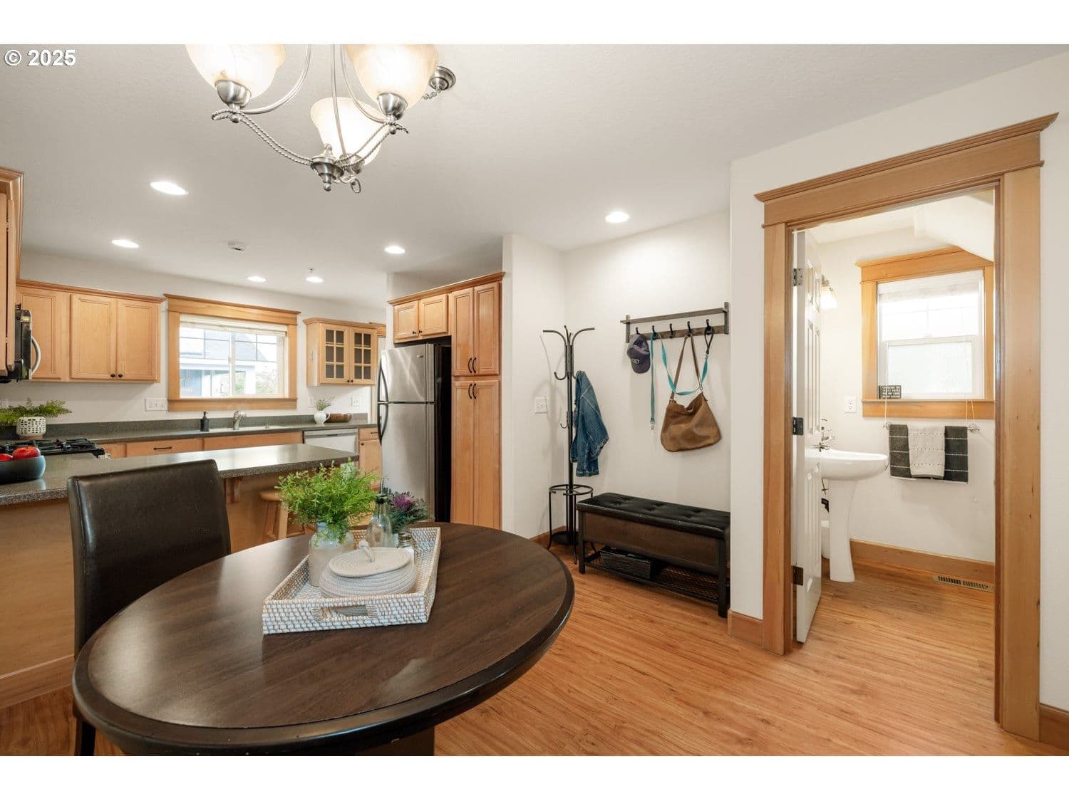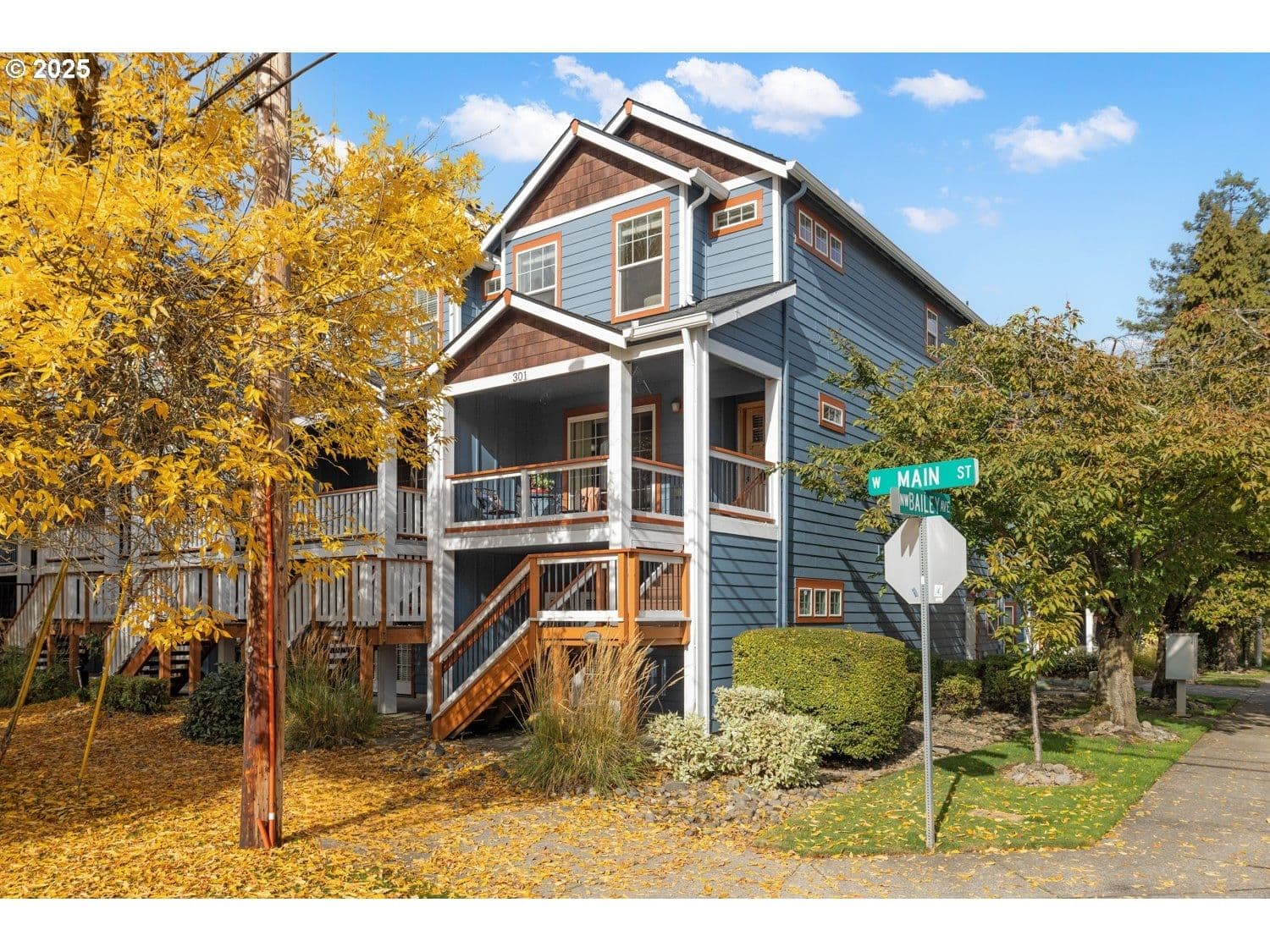 Welcome to this beautifully maintained 3-bedroom, 3.5-bath end unit townhome with attached garage in the heart of Hillsboro! Spread across three levels, this inviting residence blends modern comfort with classic charm—just blocks from historic downtown. Each bedroom features its own private bathroom, offering plenty of comfort and privacy for everyone. The main level includes a convenient half bath, a bright and spacious living room, and a well-appointed kitchen with gas range, stainless steel appliances, eating bar, generous counter space, and plenty of storage. Enjoy morning coffee on the covered deck or relax next to the fire in the open living room.Easy access to the MAX plus all the vibrant Hillsboro happenings -farmer’s market, shops, restaurants & more! This home offers the perfect combination of style, space, and location—don’t miss it! [Home Energy Score = 6. HES Report at https://rpt.greenbuildingregistry.com/hes/OR10225174]