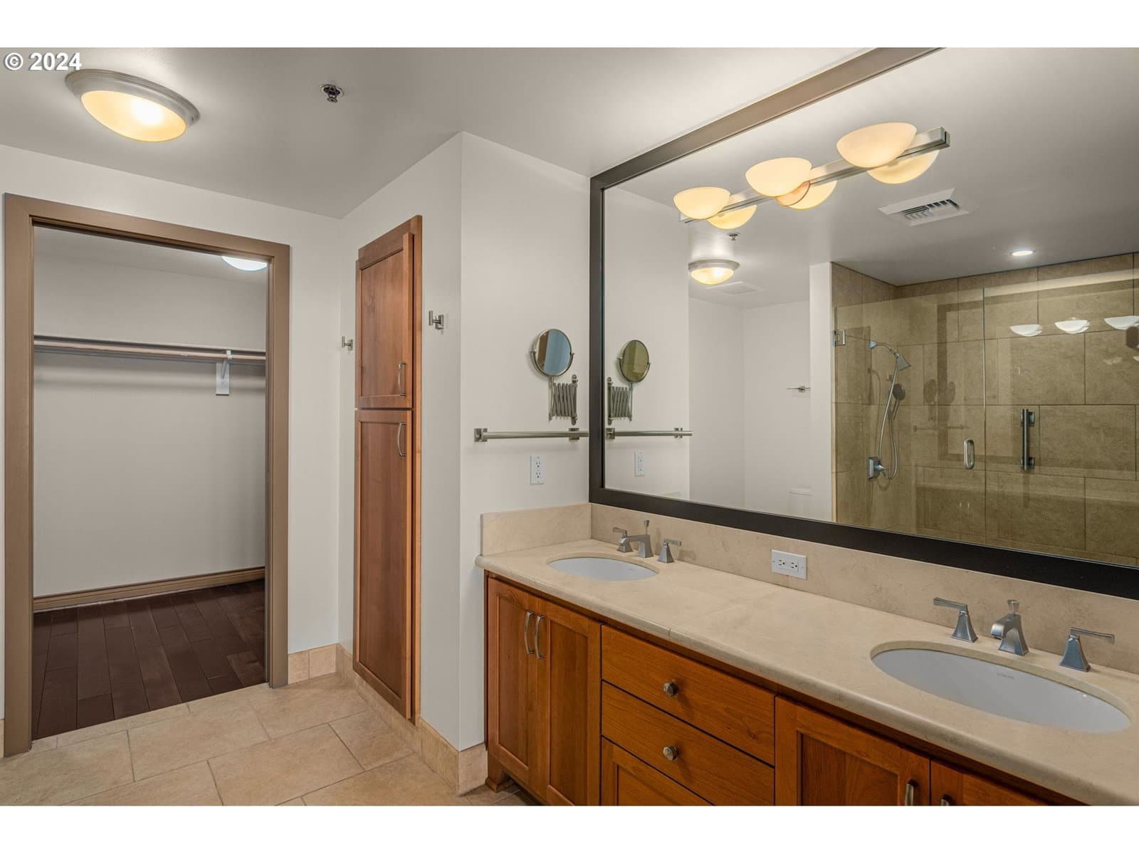 Enjoy a serene location and incredible city and mountain views from this two bedroom + den home in The Cambridge condominiums. East facing floorplan with well scaled rooms and two patios give plenty of opportunity to enjoy the outdoors. Hardwood floors throughout all the living spaces. Living room features a wall of windows and a cozy gas fireplace. Well appointed kitchen has a a center island, lots of storage, gas appliances, and slab countertops. The spacious primary suite has a large walk in closet, elegantly appointed bathroom with double vanity, and access to an east facing patio. The east facing windows have double sets of window shades - great for maintaining cool temperatures! Second bedroom has a private location, on the opposite side of the home from the primary. Office / den could easily flex into a third bedroom. Separate utility room offers extra space for in-unit storage and laundry space. Deeded two car tandem parking, complete with an EV charger. Large storage unit is just steps from the parking spaces.