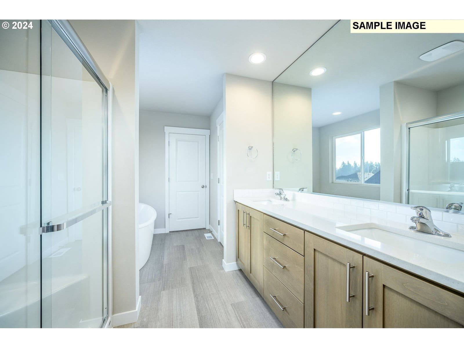 Move In Ready - Ask about Incentives! The 1857 plan features a thoughtful layout with 4 bedrooms, 2.5 bathrooms, upstairs laundry room & laminate flooring throughout the main level. Other features include a 2 car-garage and a covered patio. Primary suite offers soaking tub and walk-in closet. Front yard landscaping and maintenance are included plus a nice sized fully fenced backyard! *Sample Images - actual finishes vary. Other homes also available.