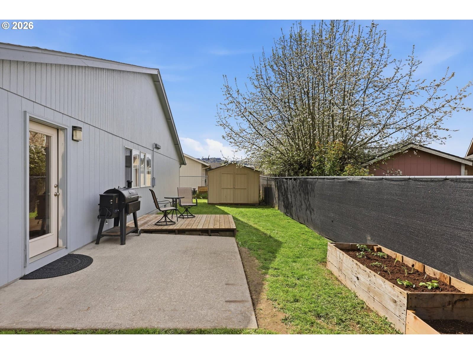 Experience the rare independence of a home with no HOA or CC&Rs. Situated on a quiet dead-end street, this 1,572 sq. ft. single-level residence offers a functional 3-bedroom, 2-bathroom layout. The interior features a versatile flex space that is ideal for a dedicated home office, gym, or secondary living area. Outside, the property is designed for utility with a fully fenced backyard, garden shed, and expansive space for RV or boat parking. Enjoy the peace of a quiet, low traffic street while remaining just minutes from I-5 and the riverfront at Riverside Park.