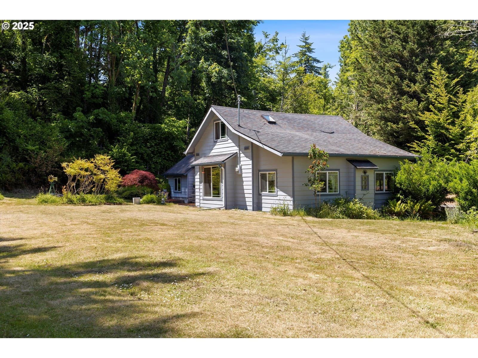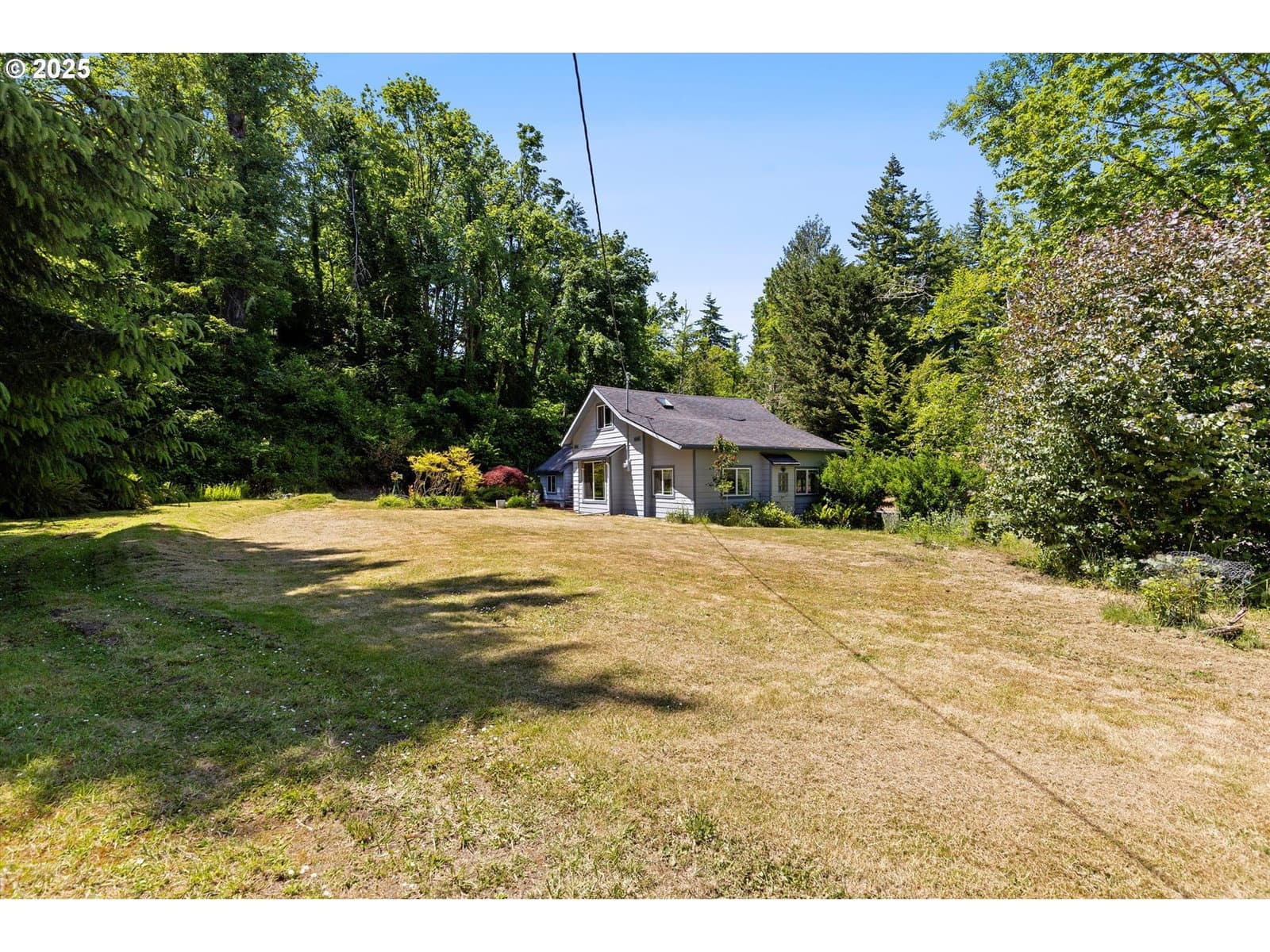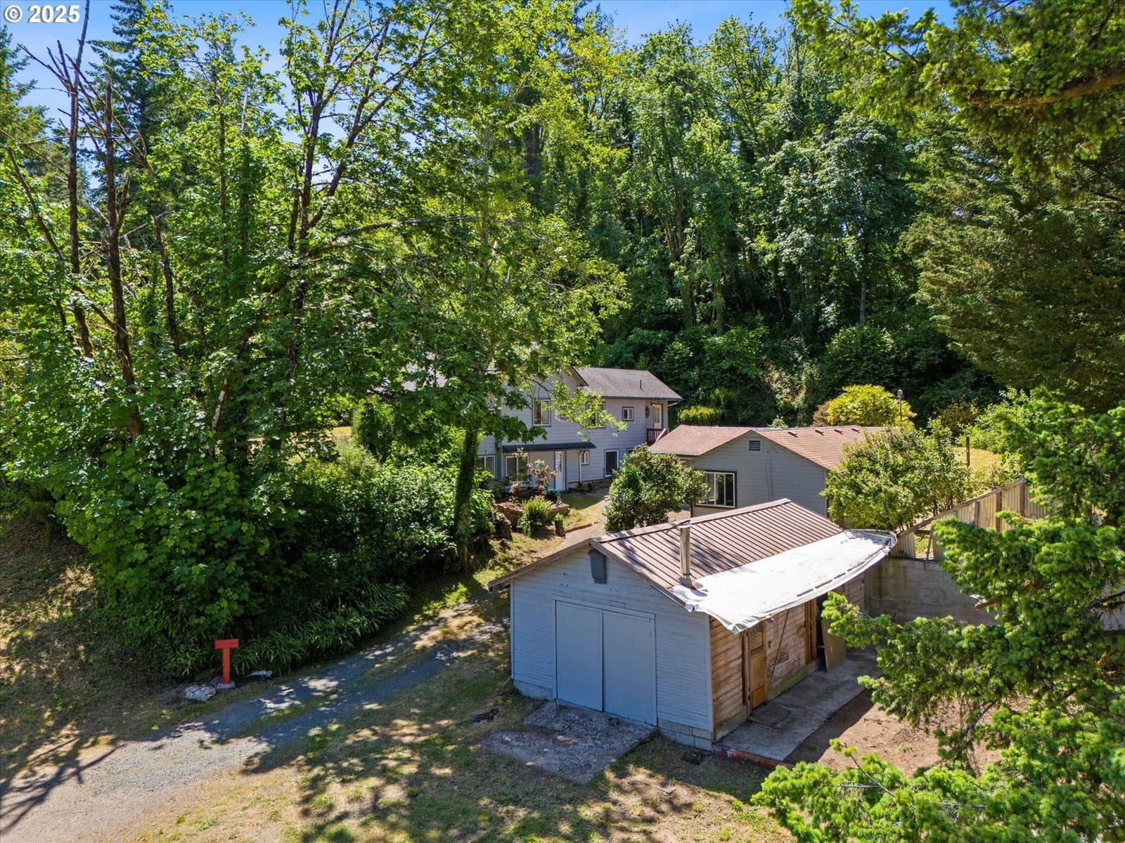 This charming house sits in a gorgeous, private and peaceful park like setting. Included are 2 commercially zoned lots, totaling just over an acre. The grounds are home to apple, pear, fig and eucalyptus trees plus blue berries, to name a few. The second lot includes a small, 644 sq ft house, (which needs some work), 2 car garage, shop and garden shed. Located on Business 20, great exposure for a business! Unfinished daylight basement adds 1000 sqft for MANY more possibilities. .