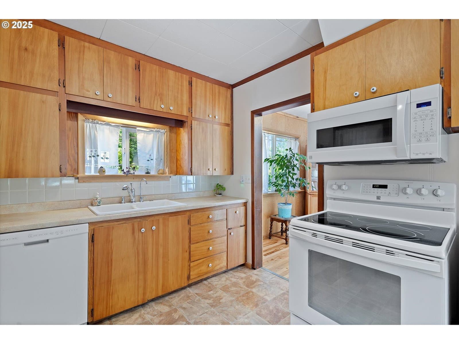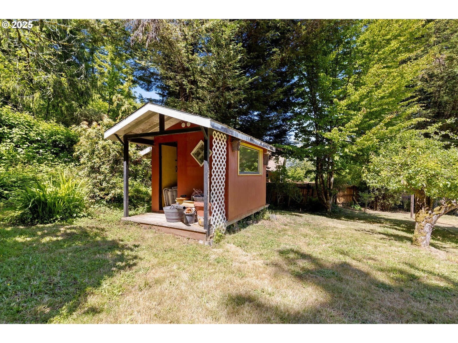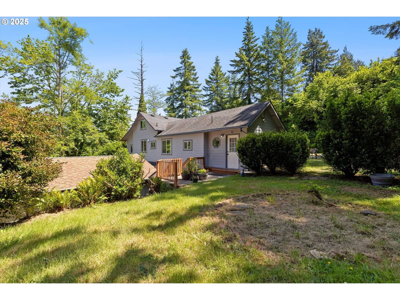 This charming house sits in a gorgeous, private and peaceful park like setting. Included are 2 commercially zoned lots, totaling just over an acre. The grounds are home to apple, pear, fig and eucalyptus trees plus blue berries, to name a few. The second lot includes a small, 644 sq ft house, (which needs some work), 2 car garage, shop and garden shed. Located on Business 20, great exposure for a business! Unfinished daylight basement adds 1000 sqft for MANY more possibilities. .