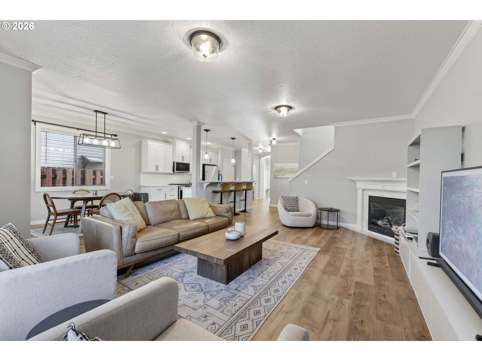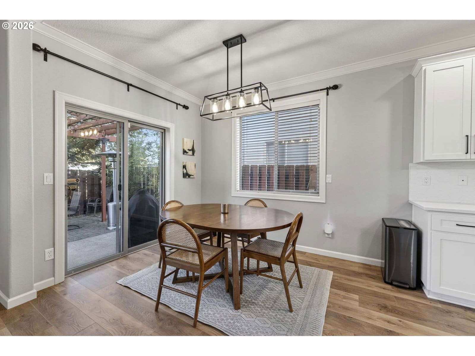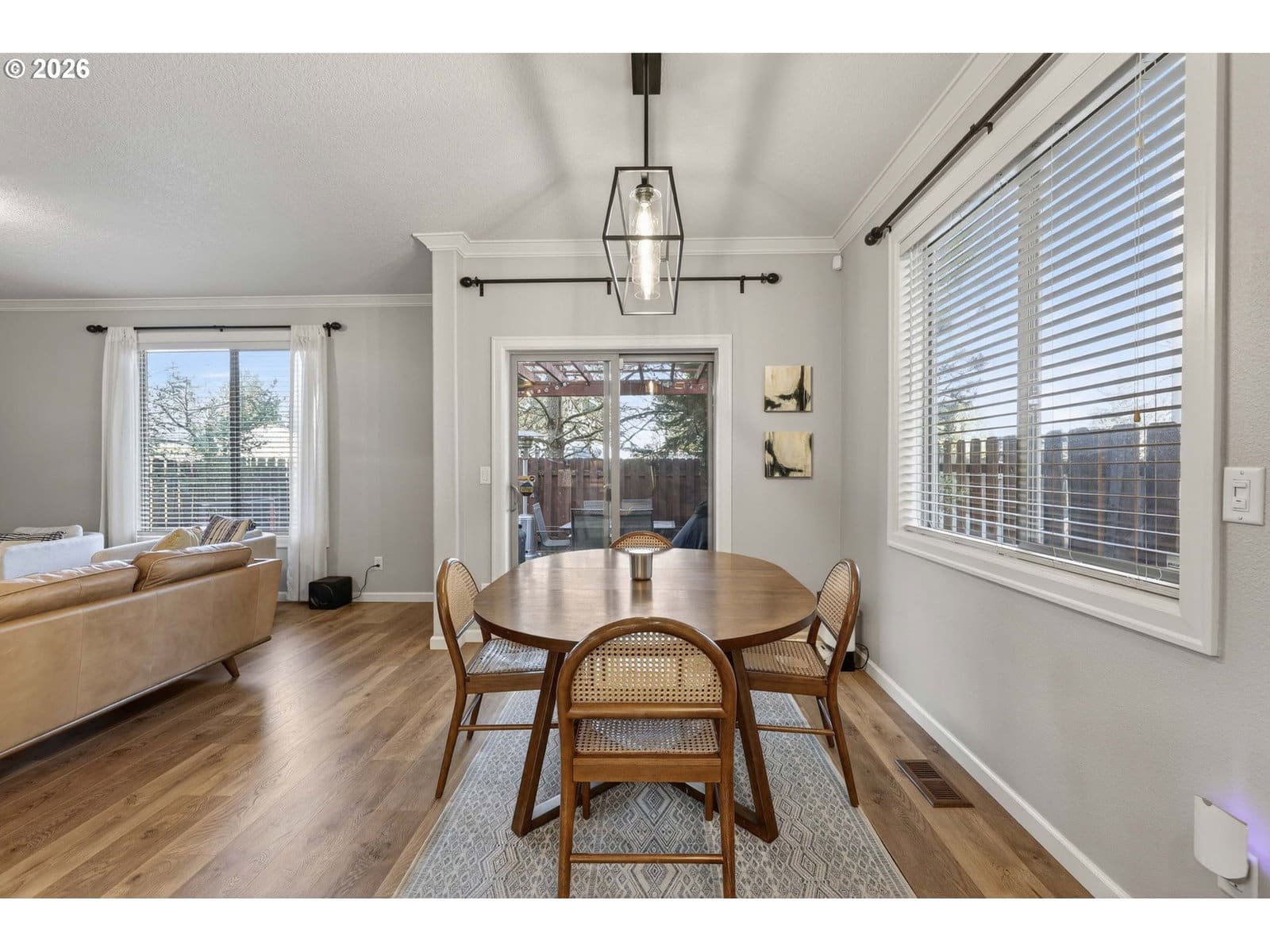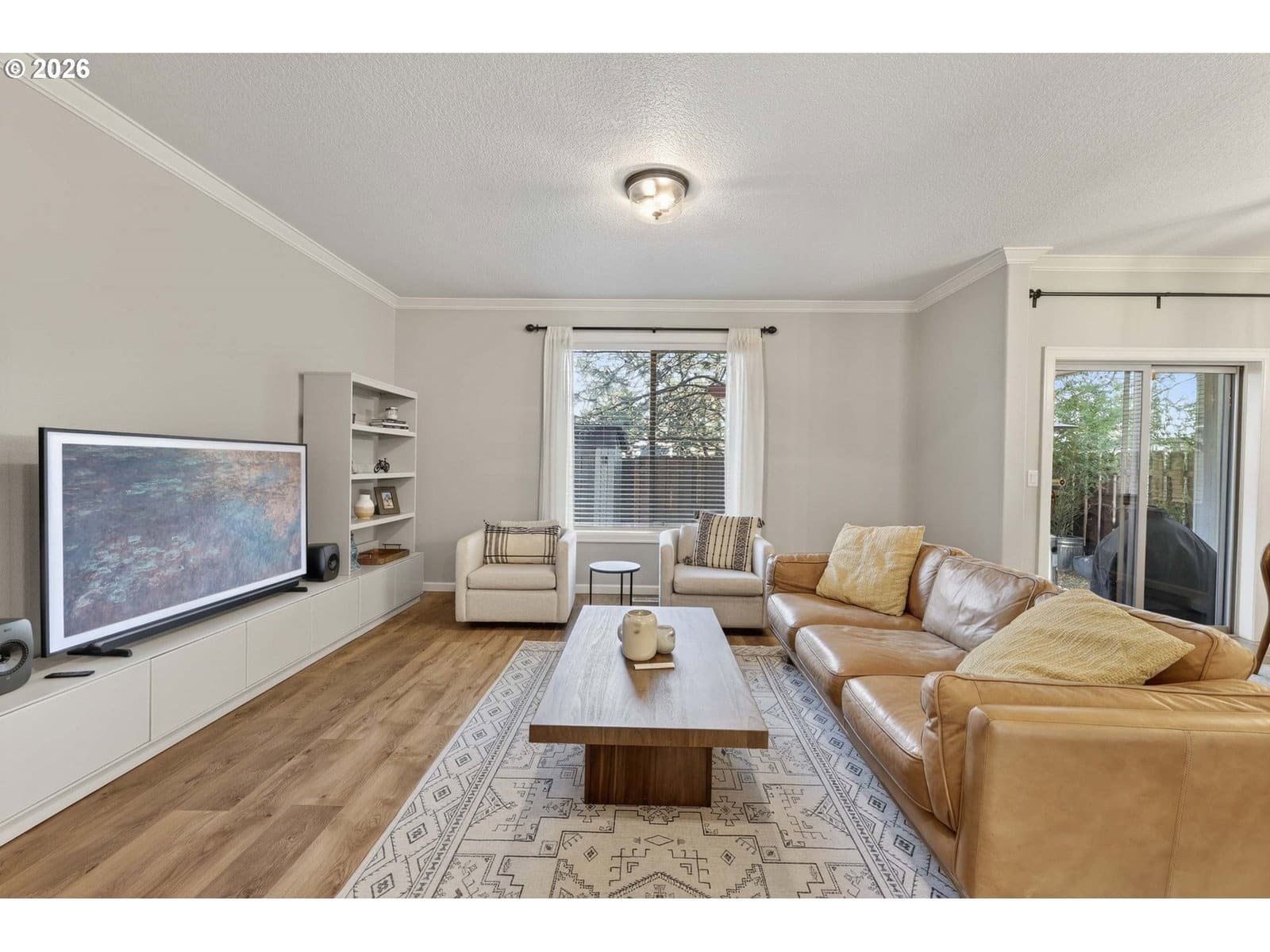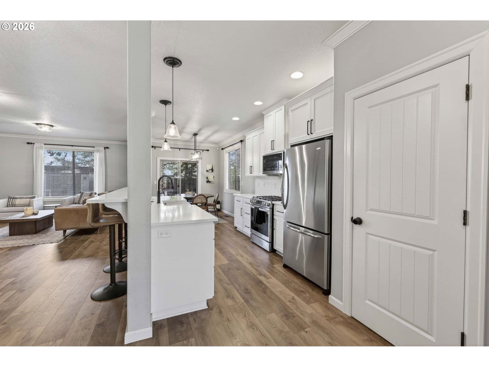 Welcome to this beautifully remodeled 4-bedroom, 2.5-bath home featuring an open concept floor plan and numerous premium upgrades. The entire downstairs boasts new laminate hardwood floors, crown molding, and upgraded paint, creating a bright and elegant living space. The gourmet kitchen includes soft-close cabinets, quartz countertops, and brand new stainless steel appliances: dishwasher, oven, and microwave. Light fixtures, faucets, and cabinet hardware throughout the home have all been recently upgraded. Enjoy a private backyard that backs to a city-owned green space, offering a tranquil retreat. Don't miss out on this stunning, move-in ready home! Seller is a licensed Oregon real estate agent/the listing agent.