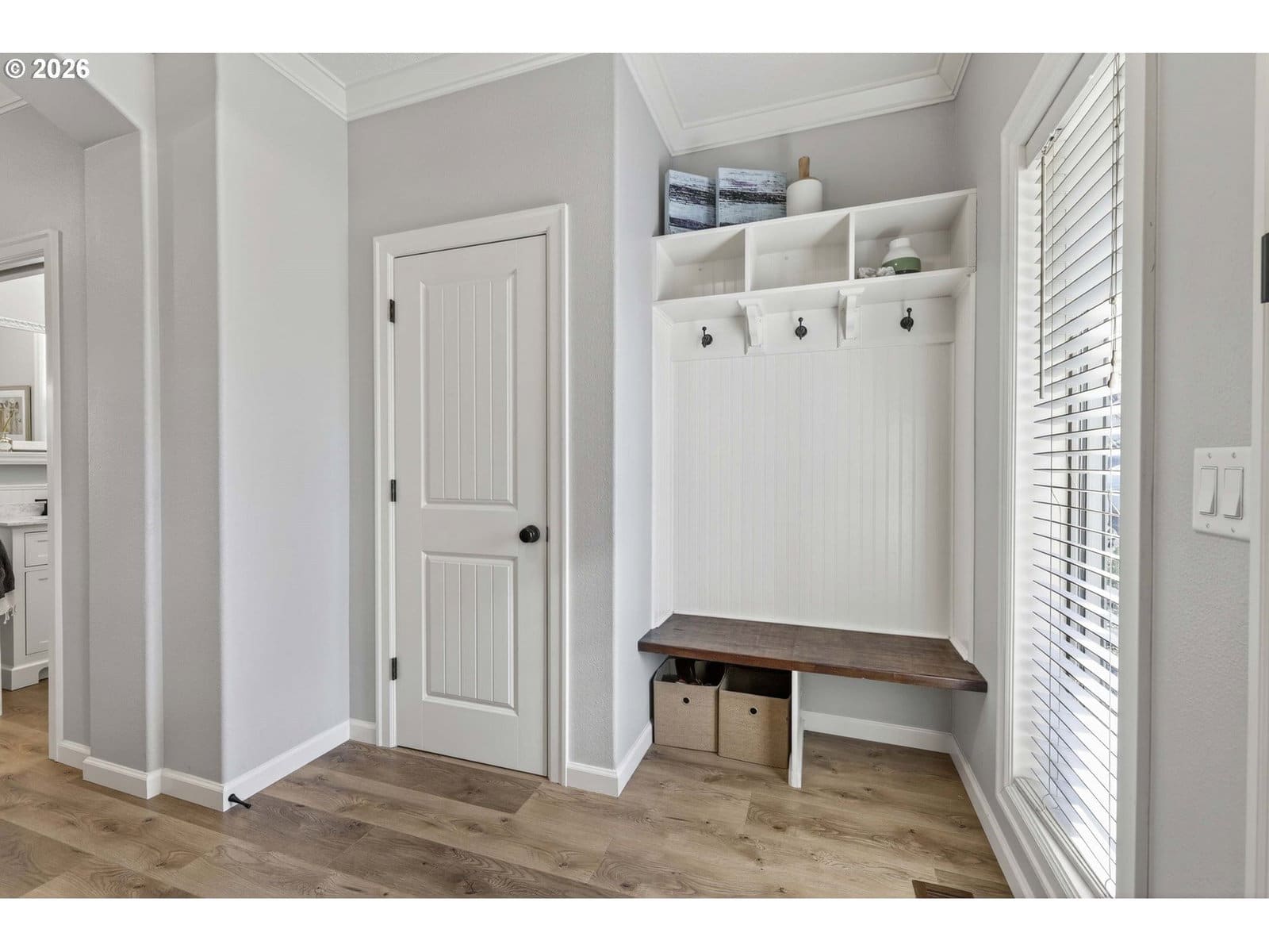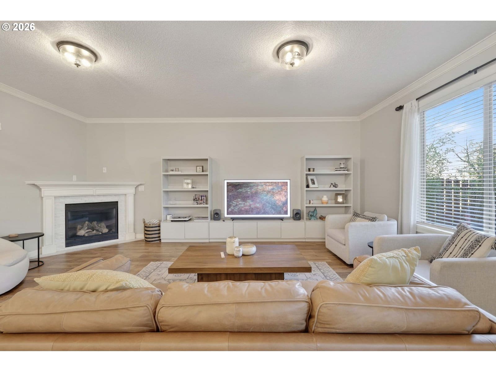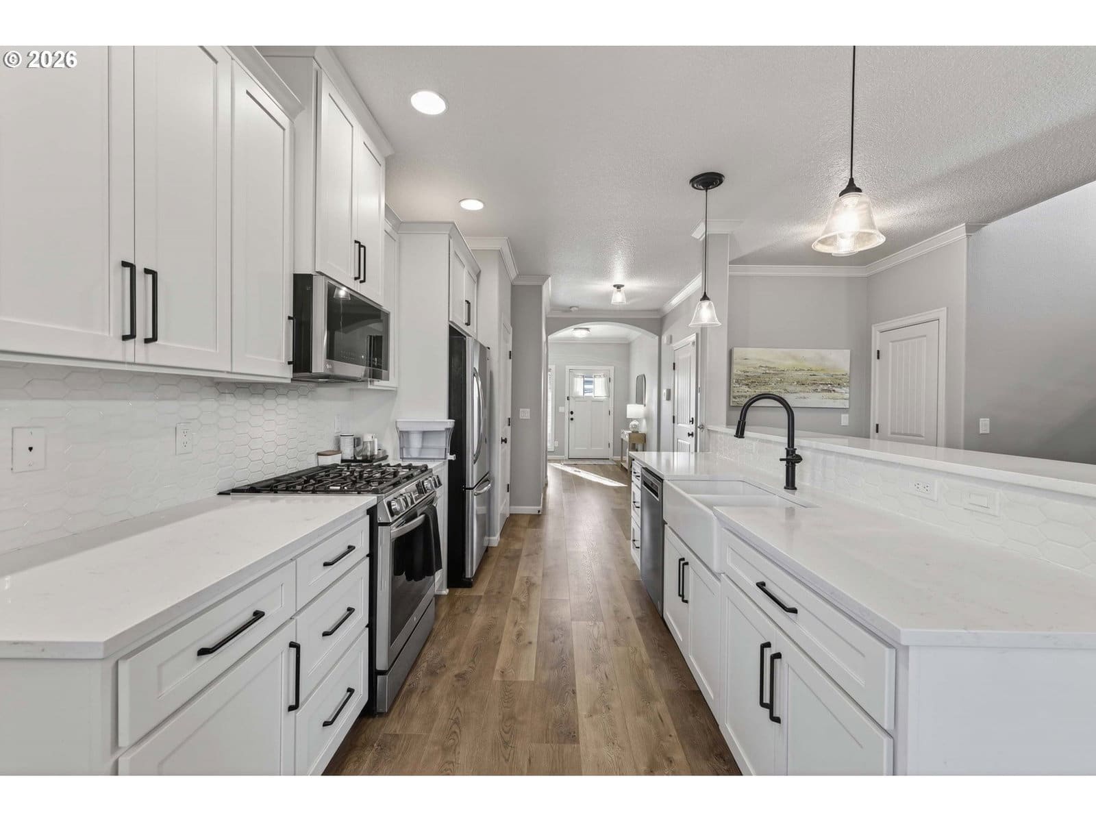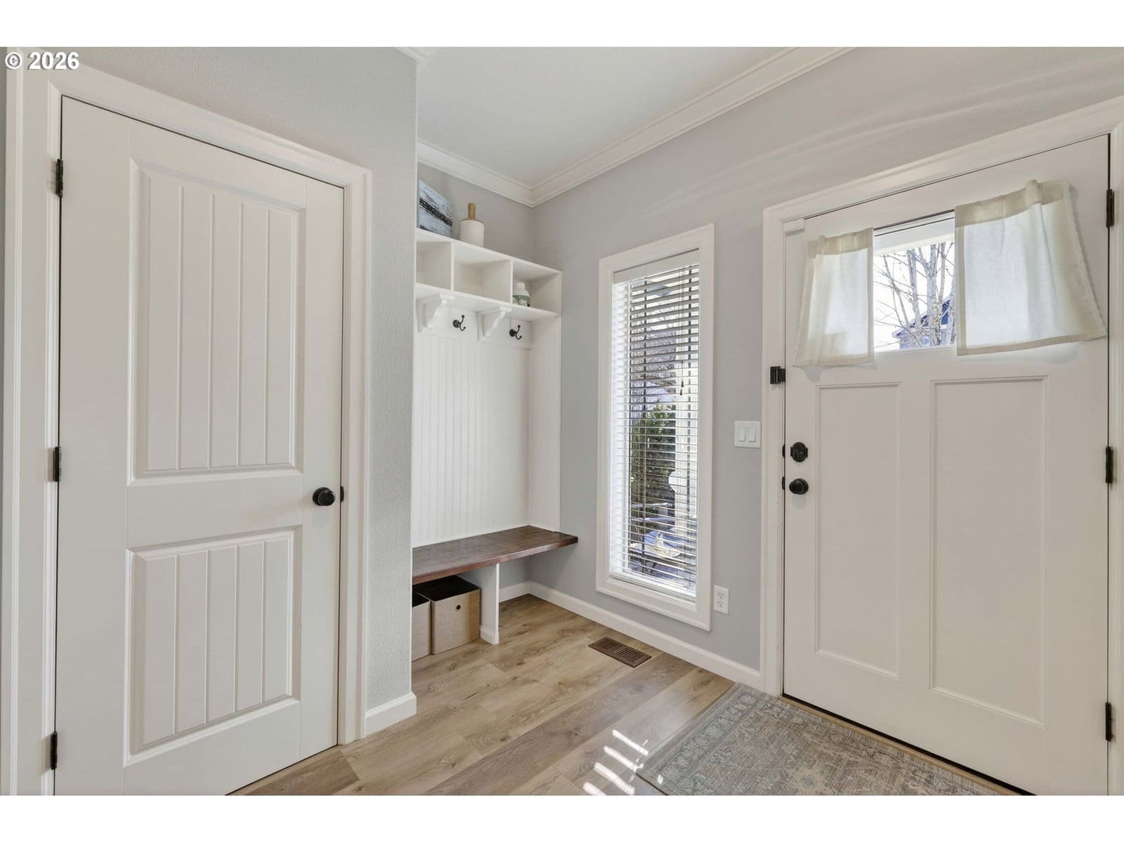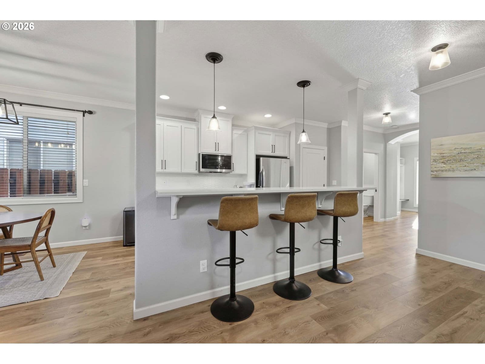 Welcome to this beautifully remodeled 4-bedroom, 2.5-bath home featuring an open concept floor plan and numerous premium upgrades. The entire downstairs boasts new laminate hardwood floors, crown molding, and upgraded paint, creating a bright and elegant living space. The gourmet kitchen includes soft-close cabinets, quartz countertops, and brand new stainless steel appliances: dishwasher, oven, and microwave. Light fixtures, faucets, and cabinet hardware throughout the home have all been recently upgraded. Enjoy a private backyard that backs to a city-owned green space, offering a tranquil retreat. Don't miss out on this stunning, move-in ready home! Seller is a licensed Oregon real estate agent/the listing agent.