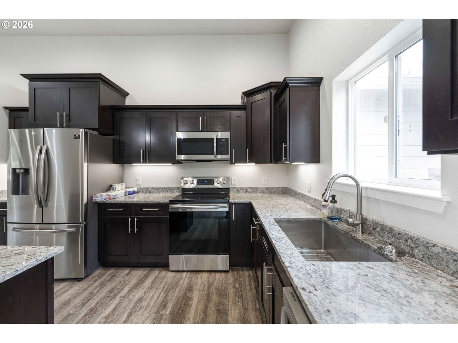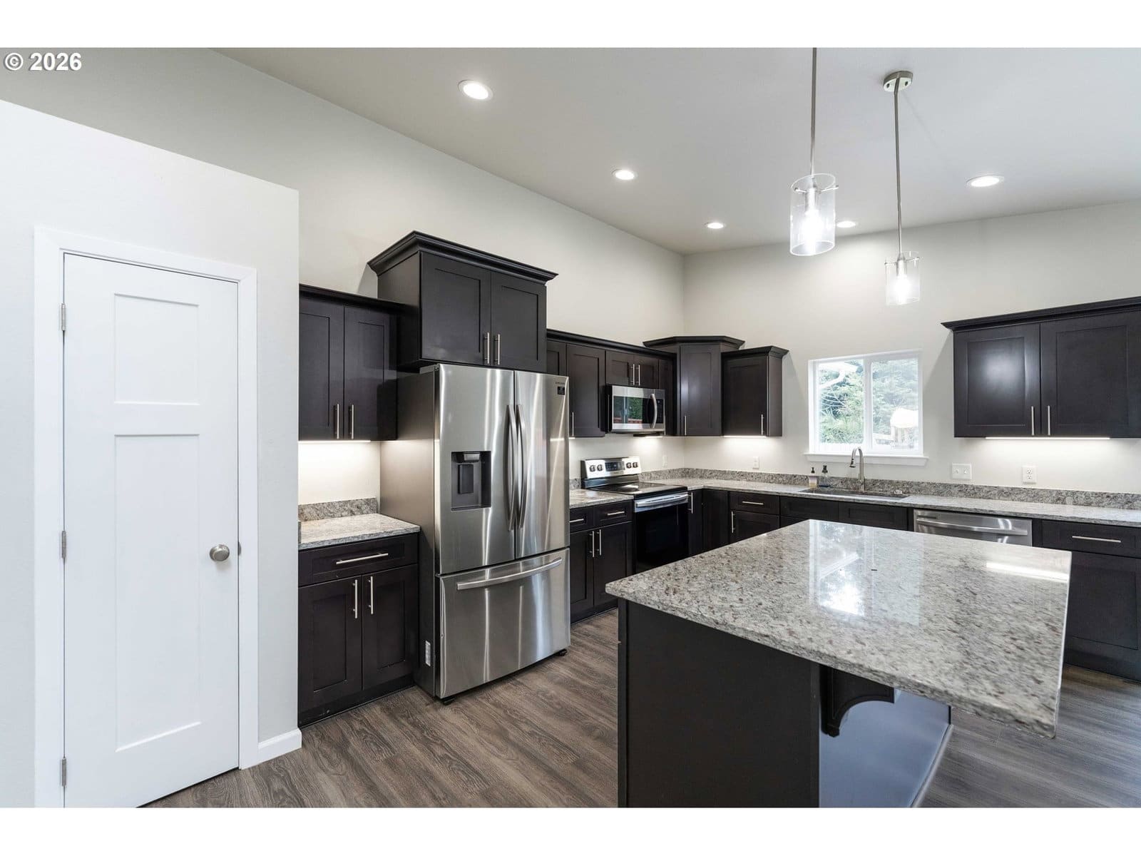 Step into modern luxury with this "like-new" 2020 build, meticulously refreshed with crisp paint and stylish touch-ups throughout. The heart of the home is a stunning vaulted great room that seamlessly integrates the living and dining areas with a chef-inspired kitchen. Anchored by a functional island, the kitchen boasts a full suite of stainless steel appliances—including a refrigerator, range, dishwasher, and built-in microwave—plus a spacious pantry for all your storage needs.Designed for ease and accessibility, the home features zero-entry access from the oversized garage. The convenience continues with a dedicated laundry room where the washer and dryer stay for the new owners. Experience ultimate comfort in both bathrooms, each with heated tile floors for a spa-like feel. Retreat to the primary suite, which offers a private sanctuary complete with a walk-in shower, alongside two additional well-appointed bedrooms.Step through the sliding glass doors to enjoy a fully fenced backyard, perfect for privacy and pets. Outdoor enthusiasts will love the forested walking trails steps from the front door, offering a peaceful escape just moments from the bay and beach access. This coastal gem is ready for you. Watch our Video Tour on YouTube and call today to schedule your private showing!