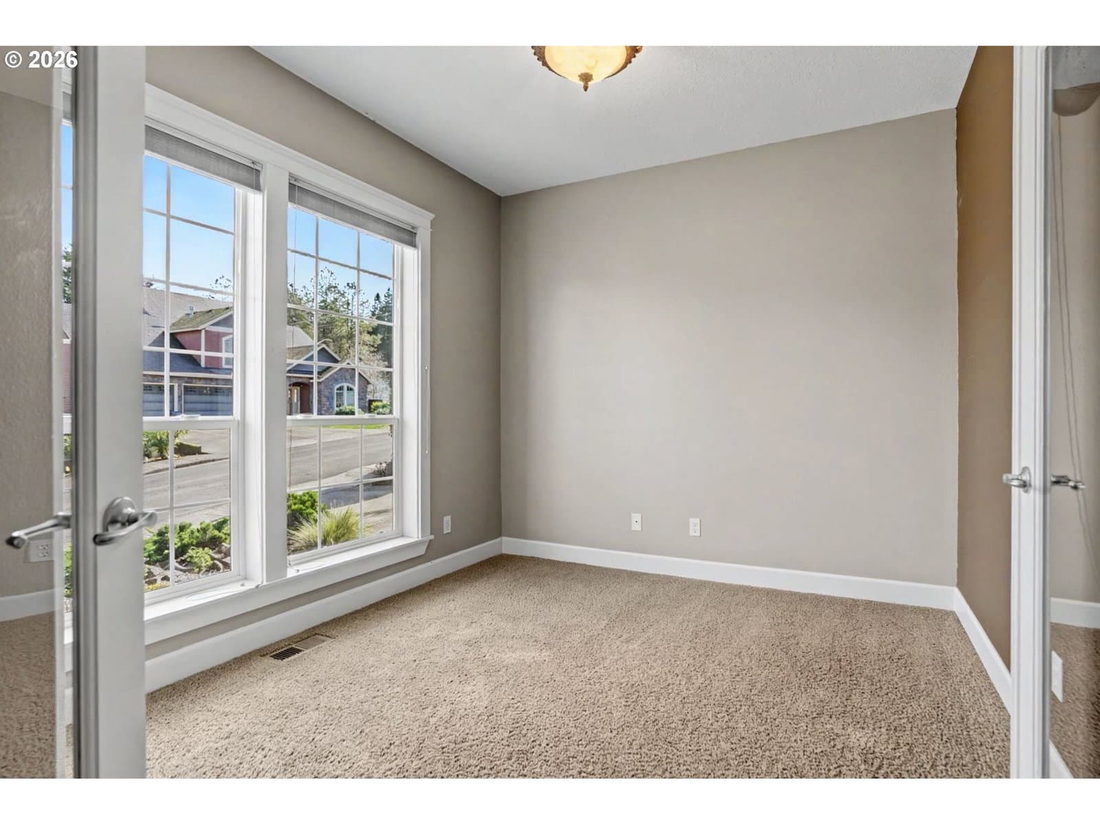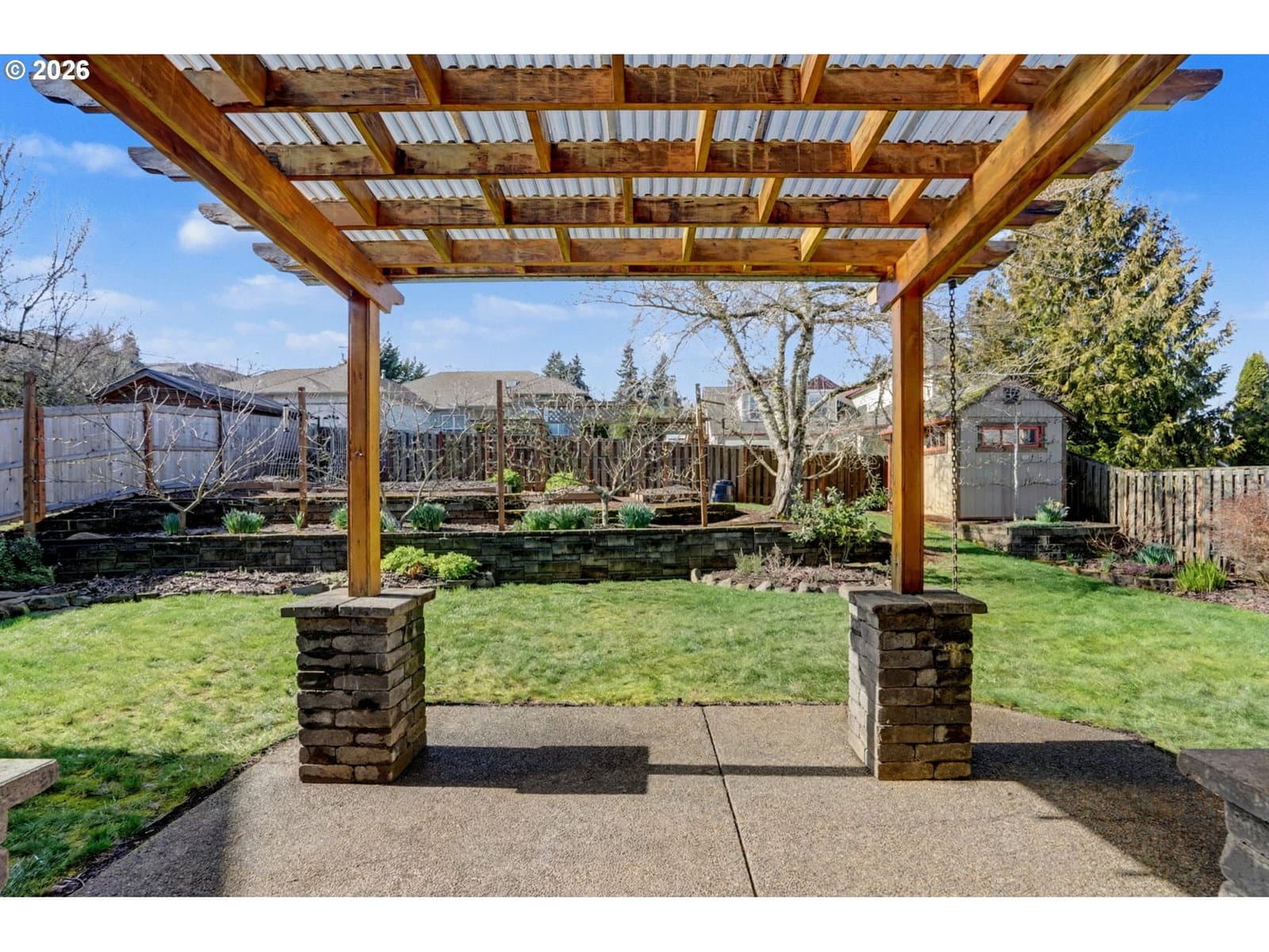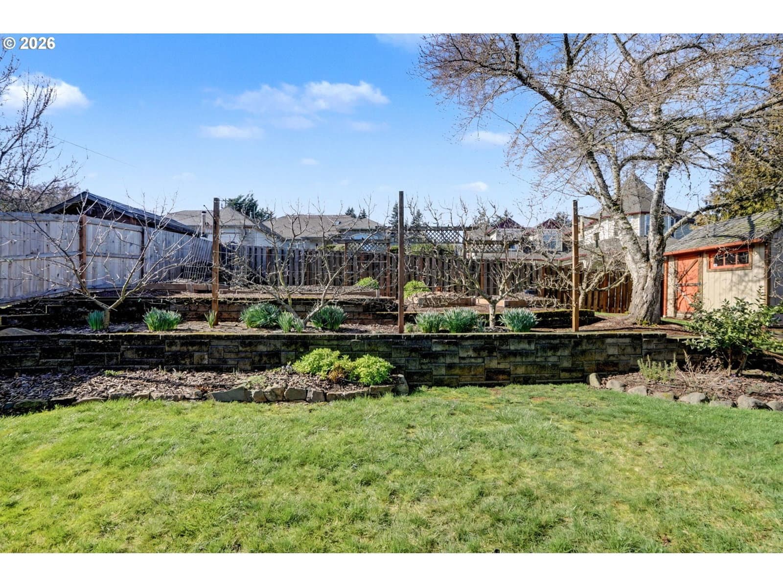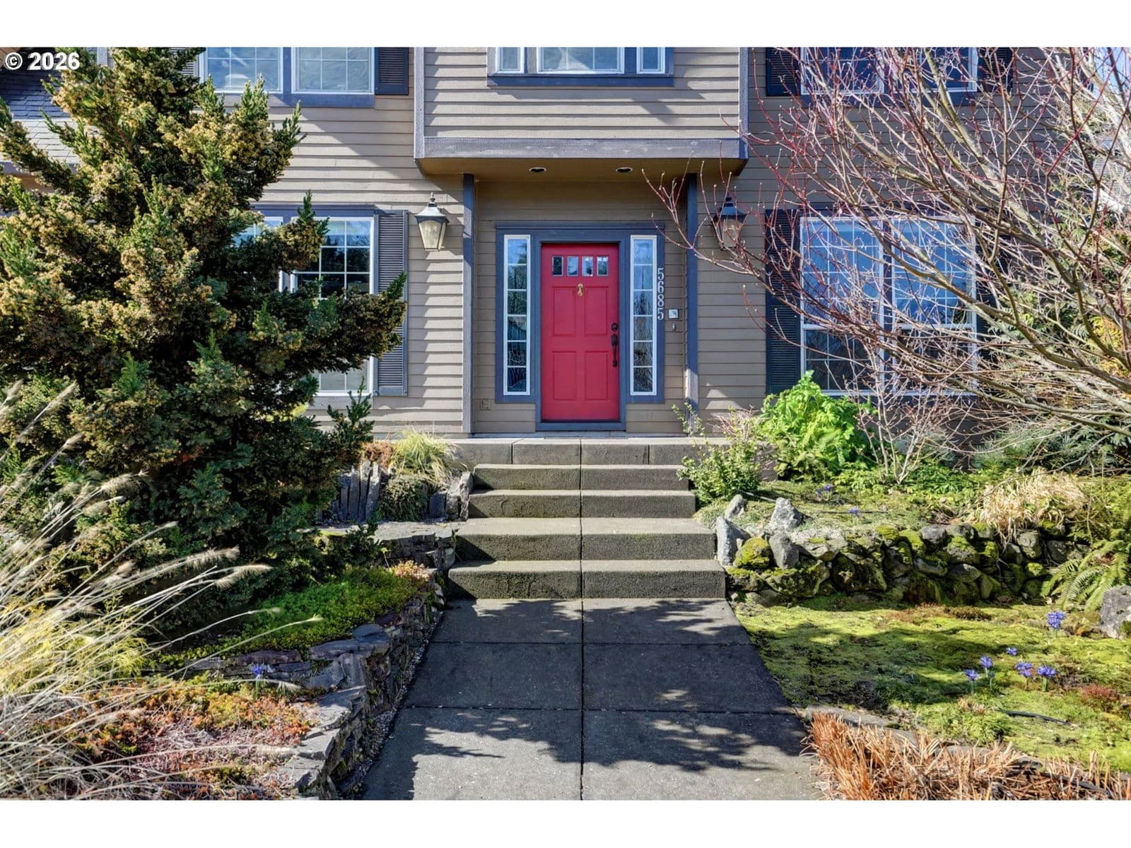 Well-maintained and very energy efficient 4 bed, 2.5 bath home offering 2,627 SF on a quiet cul-de-sac. Flexible layout includes a main floor bedroom, formal living & dining rooms, and both living and family rooms, each with gas fireplaces. Light-filled nook off the gourmet kitchen featuring granite countertops, cherry cabinetry, stainless Frigidaire appliances, and a walk-in pantry. Cherry cabinets continue throughout the bathrooms and laundry room for a cohesive, high-quality finish. Hardwood flooring on the main level. Spacious bonus room provides ideal space for media, office, or playroom. Primary suite features a walk-in closet, jetted tub, walk-in shower, and vaulted sitting/retreat area. Dual heating and cooling systems provide efficient comfort year-round. Central vacuum and central speakers included. The backyard is a true highlight with seven raised garden beds, fruit trees, grapevines, and abundant flowering plants, all within a fully fenced and beautifully landscaped setting. Covered patio, sprinklers, garden shed, and plenty of space to relax or entertain.