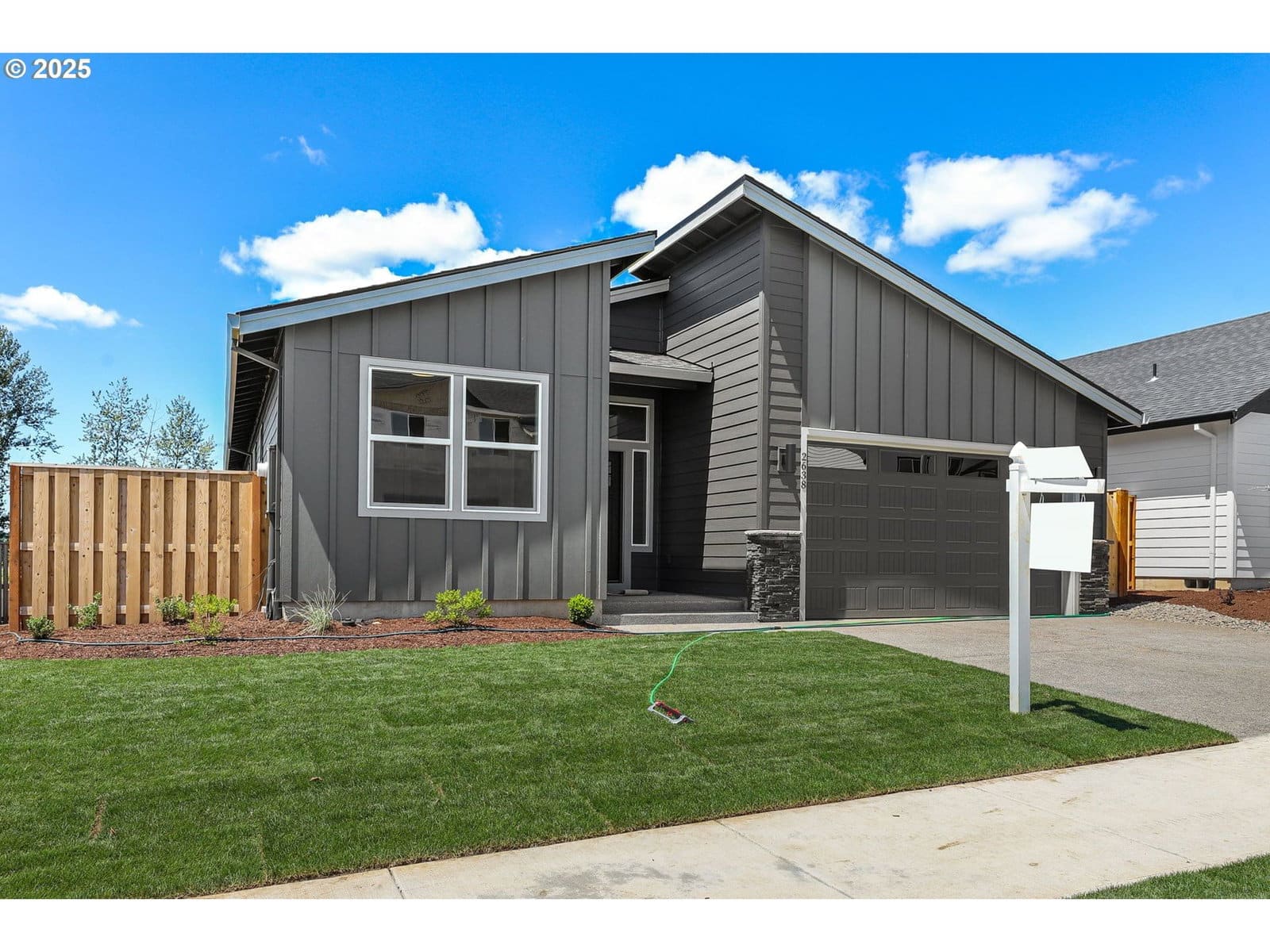 LIMITED TIME SPECIAL PRICING WITH ACCEPTED OFFER THROUGH 2/1/2026!MOVE IN READY!! DUGAN ESTATES IS OPEN WEDNESDAYS THROUGH SUNDAYS 1 TO 4! Start your tour at the host home at 744 NE Trillium Dr, to view available homes in Dugan Estates! Explore the Rock Creek Modern floor plan located in the highly desirable Dugan Estates community. This stunning new construction home features a spacious vaulted great room with a cozy fireplace and stylish, low-maintenance laminate flooring—perfect for both entertaining and everyday living.With 3 bedrooms and 2 full bathrooms, this single-level home offers comfort and functionality. The gourmet kitchen is amazing, showcasing stainless steel appliances, elegant slab countertops, and a convenient walk-in pantry.The primary suite is a relaxing retreat, complete with a large walk-in closet, double vanity, and a beautiful shower. The 3-car tandem garage provides ample storage space for vehicles, tools and hobbies. Come tour these beautiful new homes in Dugan Estates – a premier location for modern living!Note: Washers, dryers, and refrigerators are not included. INCENTIVES WITH PREFERRED LENDER!