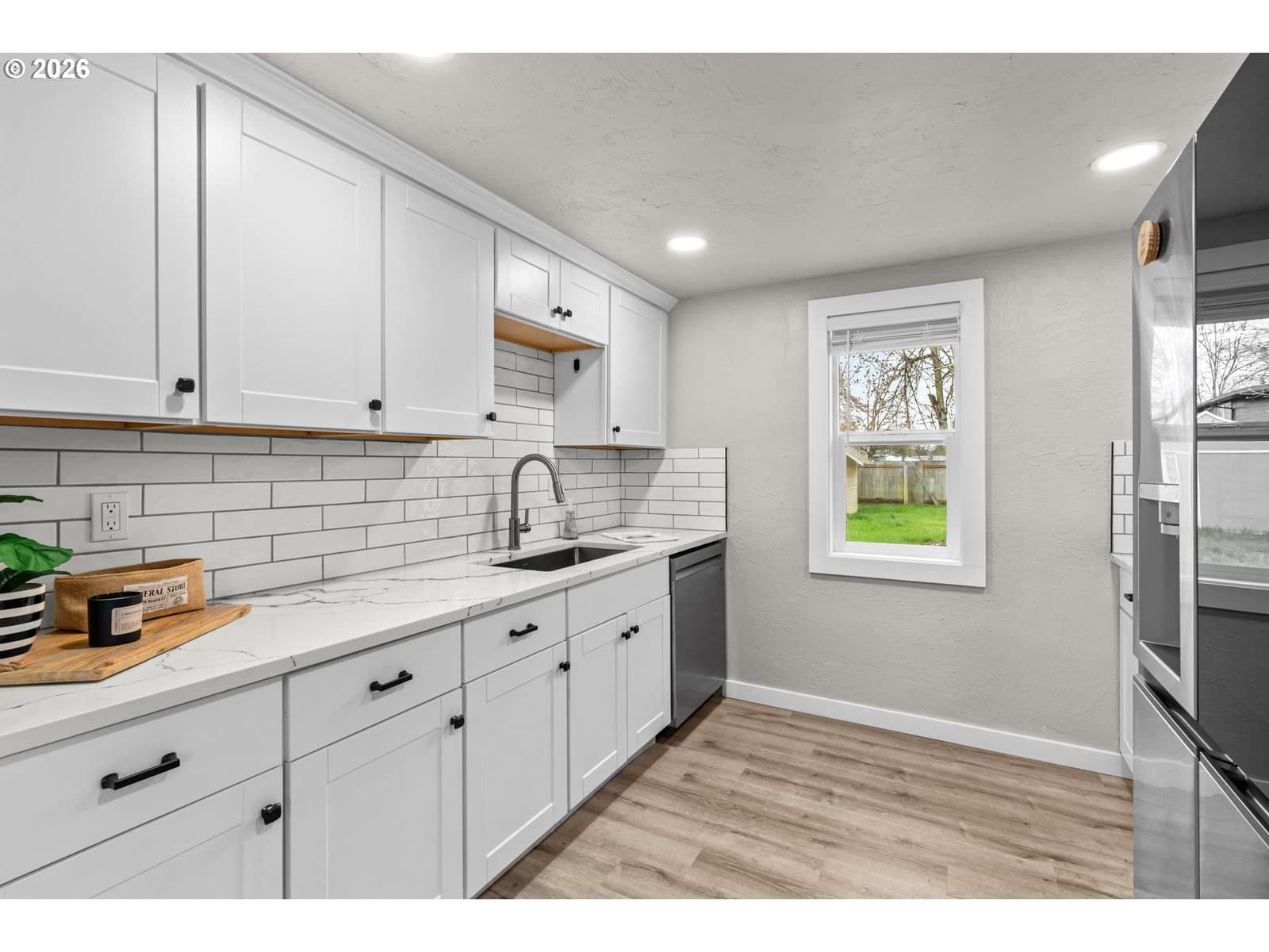Welcome to this delightful, updated 3-bedroom, 1-bath bungalow nestled in the heart of Springfield, near services and easy access to the freeway. In 2023, this gem received a top-to-bottom revamp featuring shaker cabinets, modern stainless-steel appliances, luxury vinyl plank flooring, interior and exterior paint and stylish canned lighting and fixtures. The lustrous quartz kitchen countertops add to the modern ambiance, paralleled by new baseboards, interior doors, as well as a new driveway that further enhance the property. Keeping practicality in mind, a washer and dryer are included, ready for laundry days. The exterior complements the property with a brand-new sod in the front yard, and a sizable backyard featuring an outbuilding—perfect for outdoor family activities or gardening enthusiasts. Plenty of room to add a garage or carport and enough room for RV parking. Under the city's provision, there might be a possibility to add an ADU or partition lot, making this property highly versatile. Don't miss this move-in ready haven that marries style with functionality. Buyer to perform all due diligence.