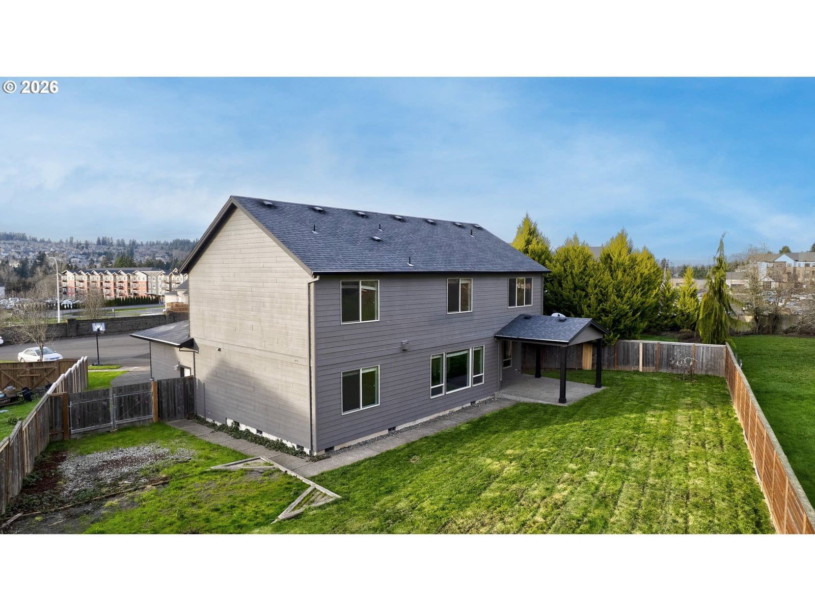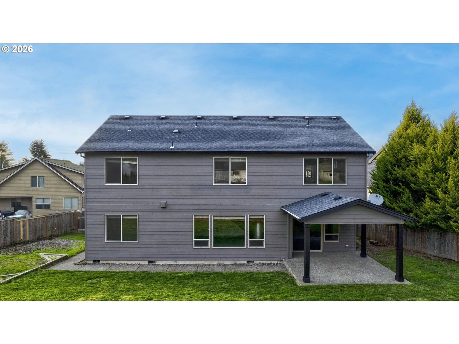 This beautiful home features an open-concept great room with a cozy gas fireplace and custom built-ins, perfect for both everyday living and entertaining. There is an office, bedroom and full bath on the main. The spacious upper primary suite offers a walk-in closet and a luxurious ensuite bath with double sinks, walk-in shower, and a soaking tub. New interior and exterior paint, carpet and refinished hardwoods, updated light fixtures and new furnace make this a move in ready home. A dedicated laundry room includes a utility sink and ample storage for added convenience. Step outside to a 1/4 acre fully fenced backyard with a covered patio—ideal for relaxing or hosting gatherings. Completing the home is a three-car garage equipped with built-in cabinets for organization and storage.