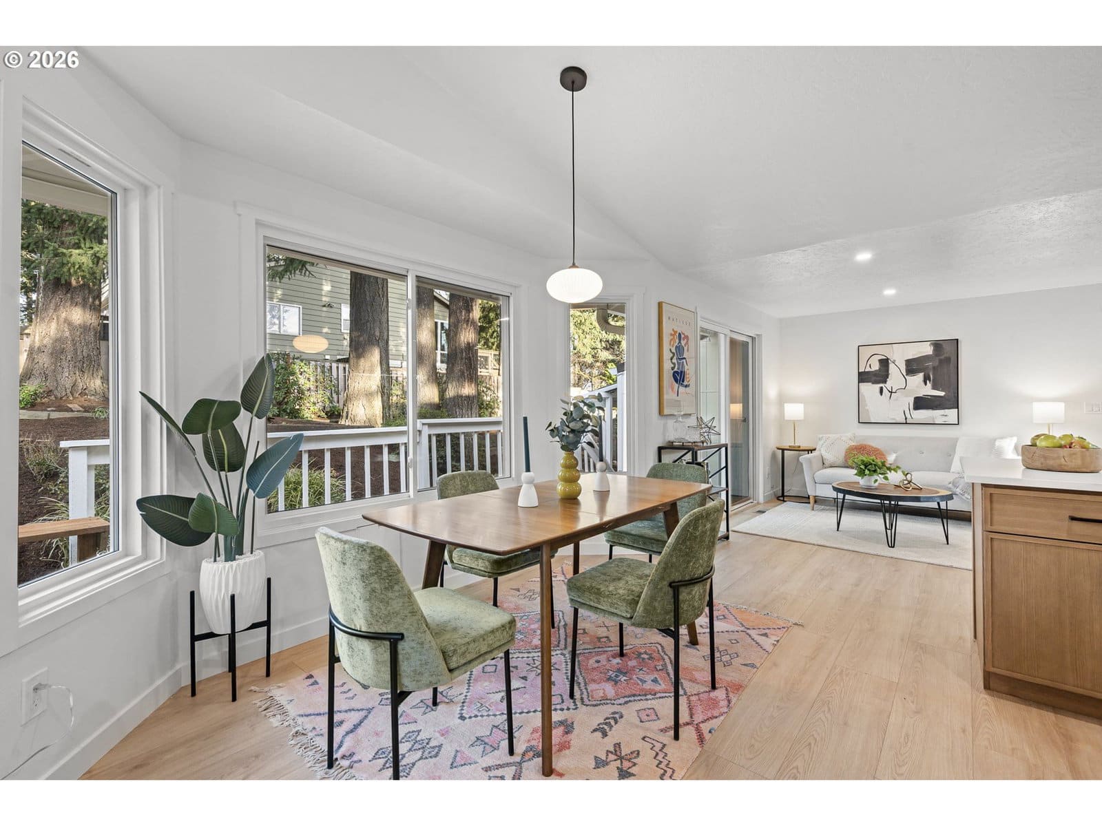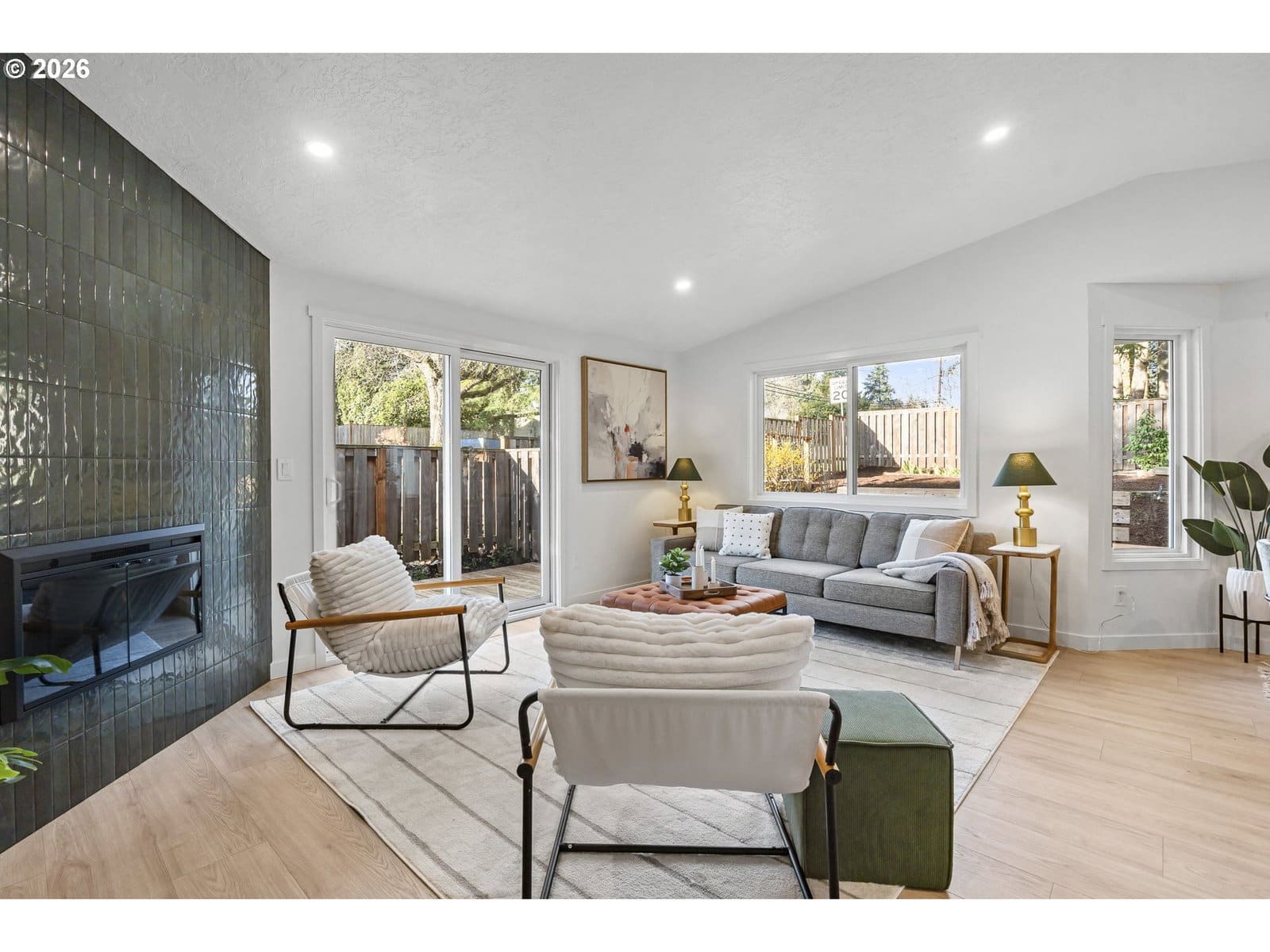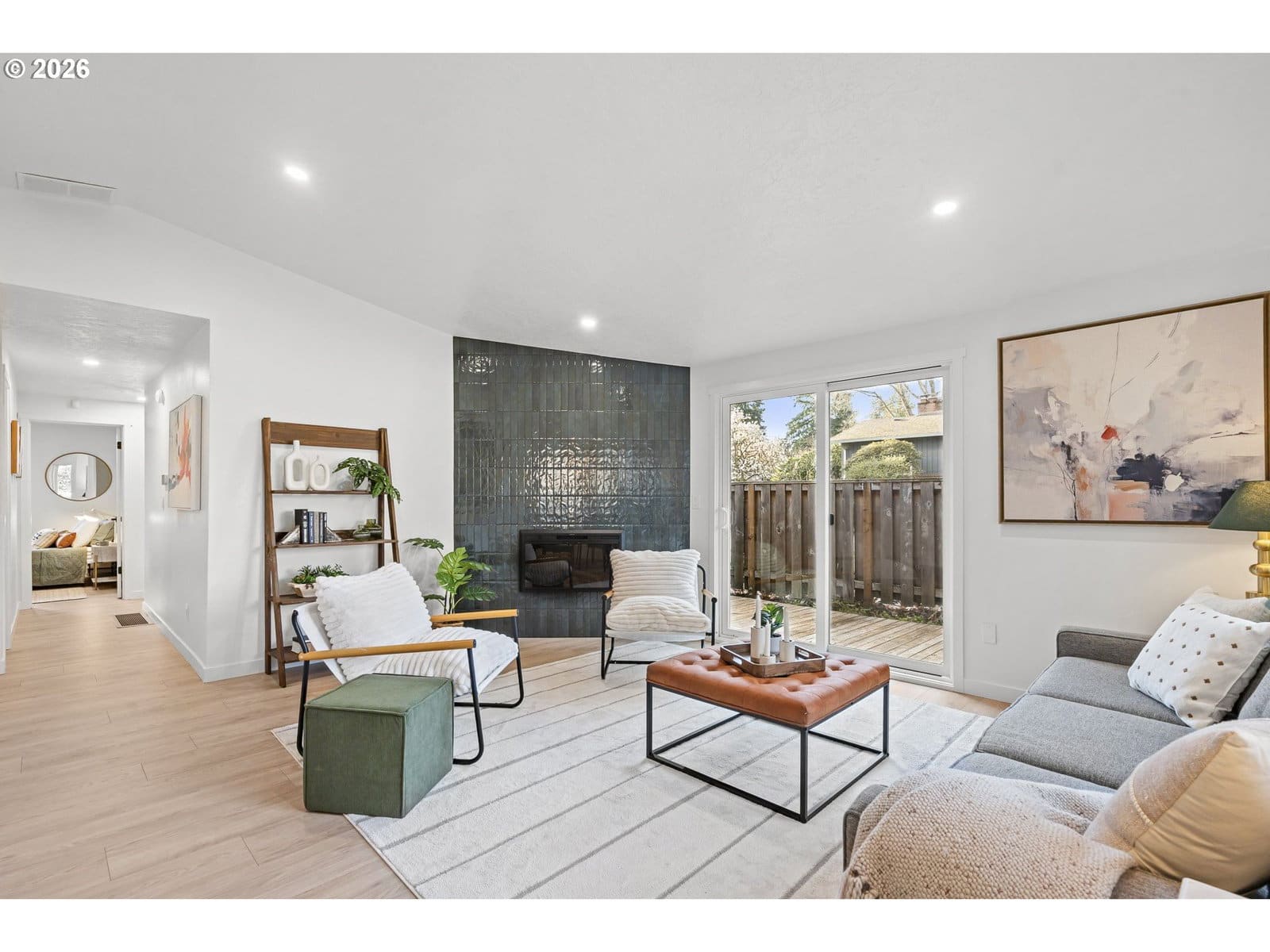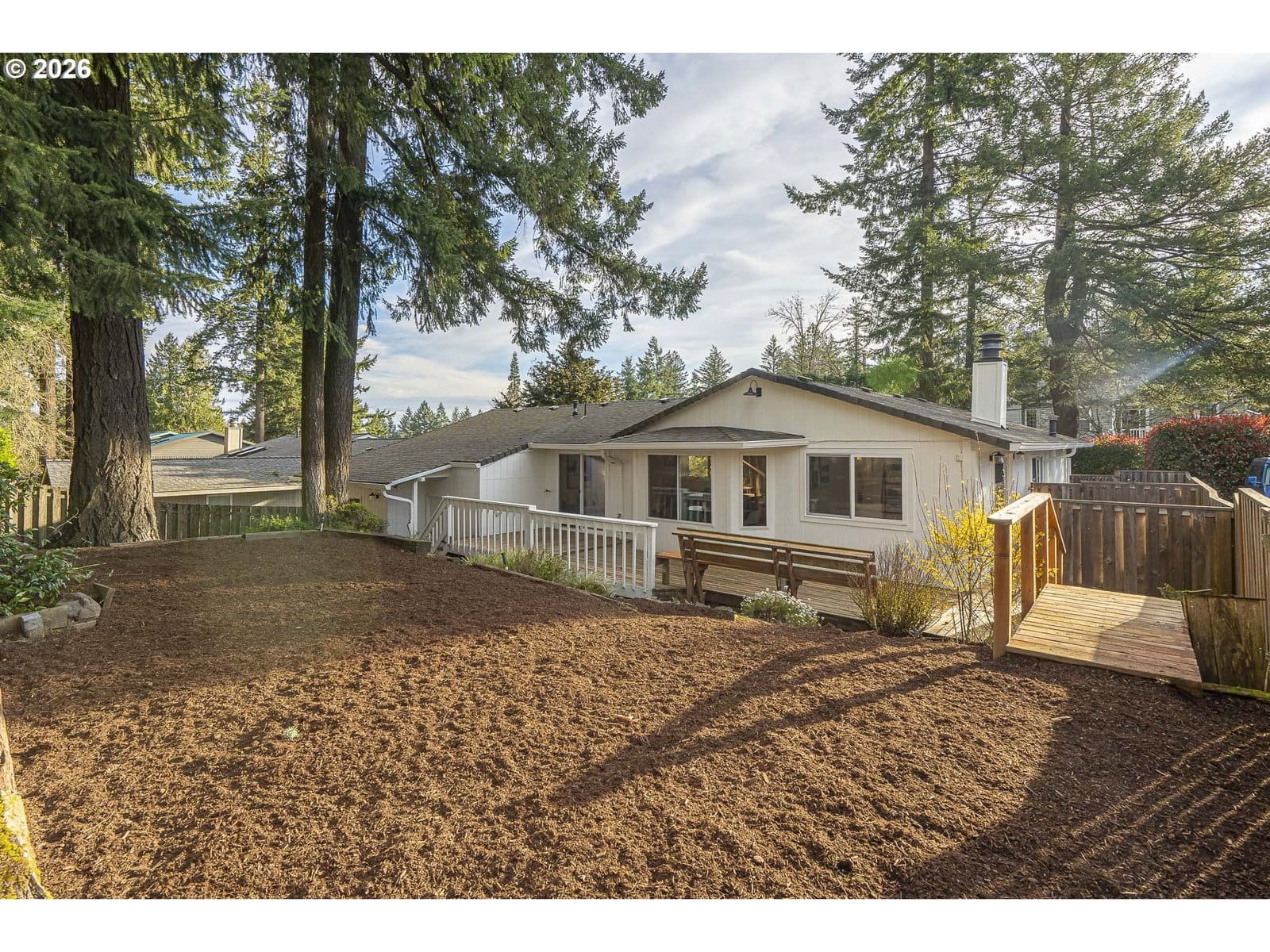 Thoughtfully renovated single-level modern ranch on a spacious corner lot in the desirable Markham neighborhood. This warm and inviting home features fresh interior paint, updated trim, stylish new lighting, and wide-plank light-oak-tone flooring. Vaulted living room is filled with natural light and showcases a striking new electric fireplace with designer tile surround, a sliding door provides easy access to the side deck. The functional kitchen offers modern finishes, including slim shaker cabinetry, quartz countertops, stainless steel appliances, pantry storage and a sunny nook. The kitchen flows effortlessly into the spacious family room with a quartz eat-bar, providing ample space for gathering, entertaining and everyday living, a second slider opens to a generous deck ideal for relaxing or hosting guests . This home features three comfortable bedrooms and two fully updated bathrooms featuring new vanities, tile surrounds, tile flooring and contemporary fixtures. An extra large two-car garage, offers abundant flexibility and storage, with a separate shop area located behind the garage-perfect for hobbies, projects, or additional workspace. The inviting exterior showcases fresh paint, a new overhead garage door, and a new front entry door. The fenced yard and spacious deck provide a private and peaceful setting, perfect for relaxing, entertaining, or bringing your outdoor ideas to life. Washer, dryer & freezer included. Ideally located near parks, scenic hiking trails, schools, and convenient freeway access. A wonderful place to call home!