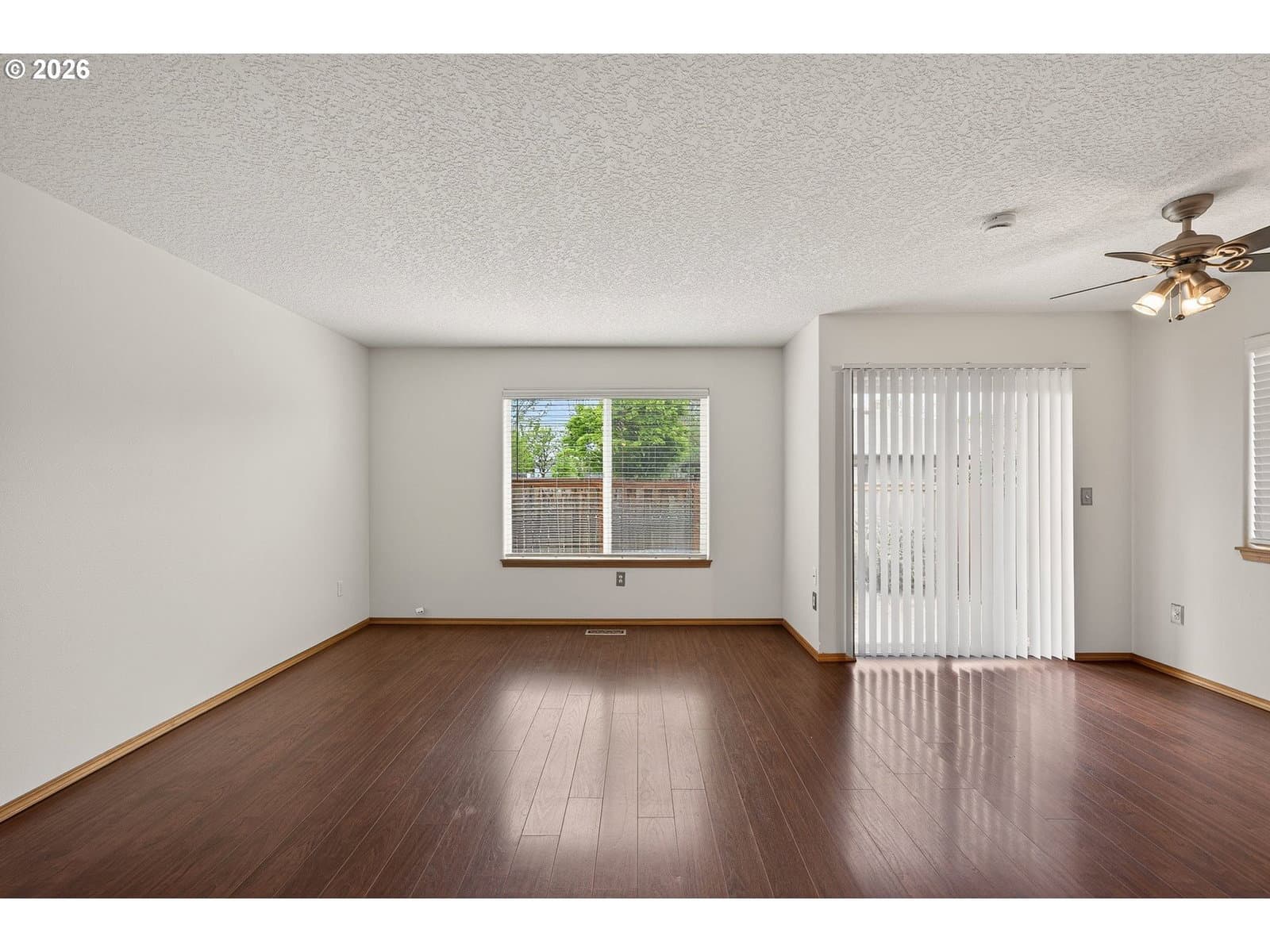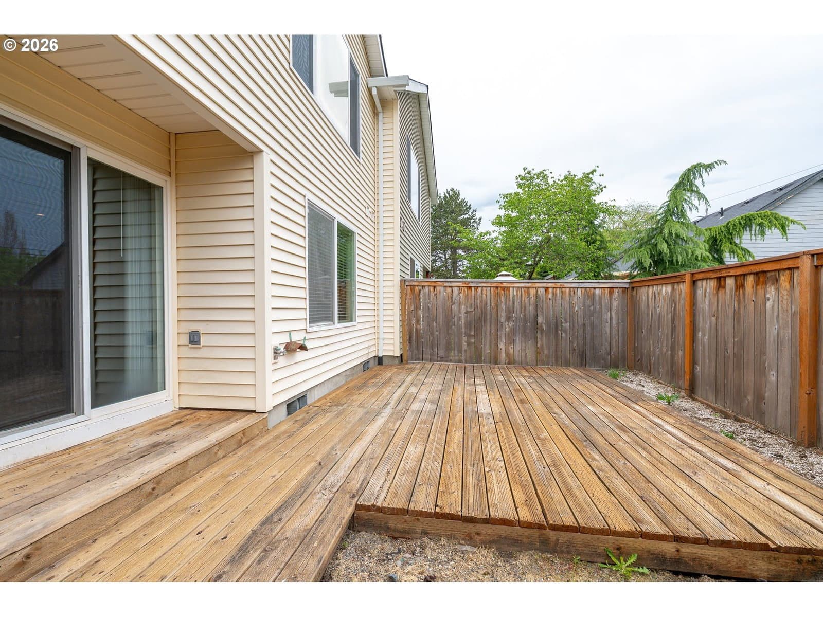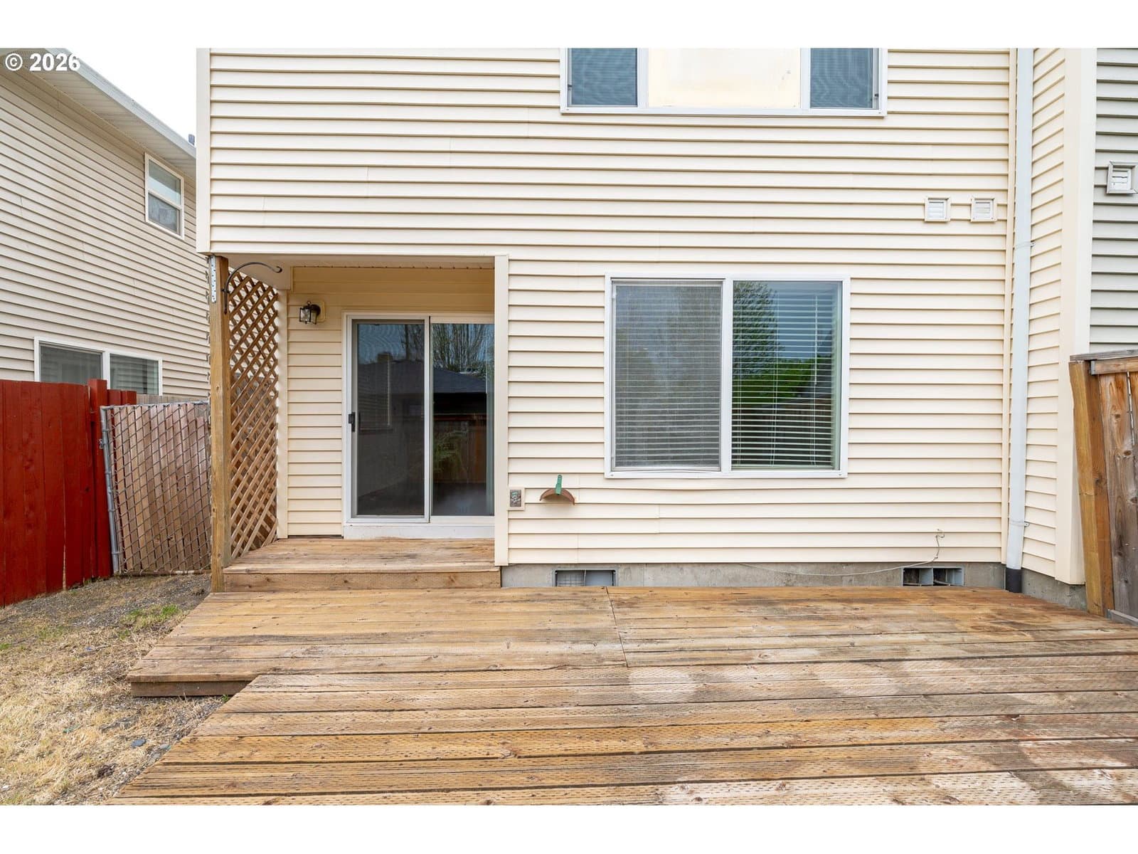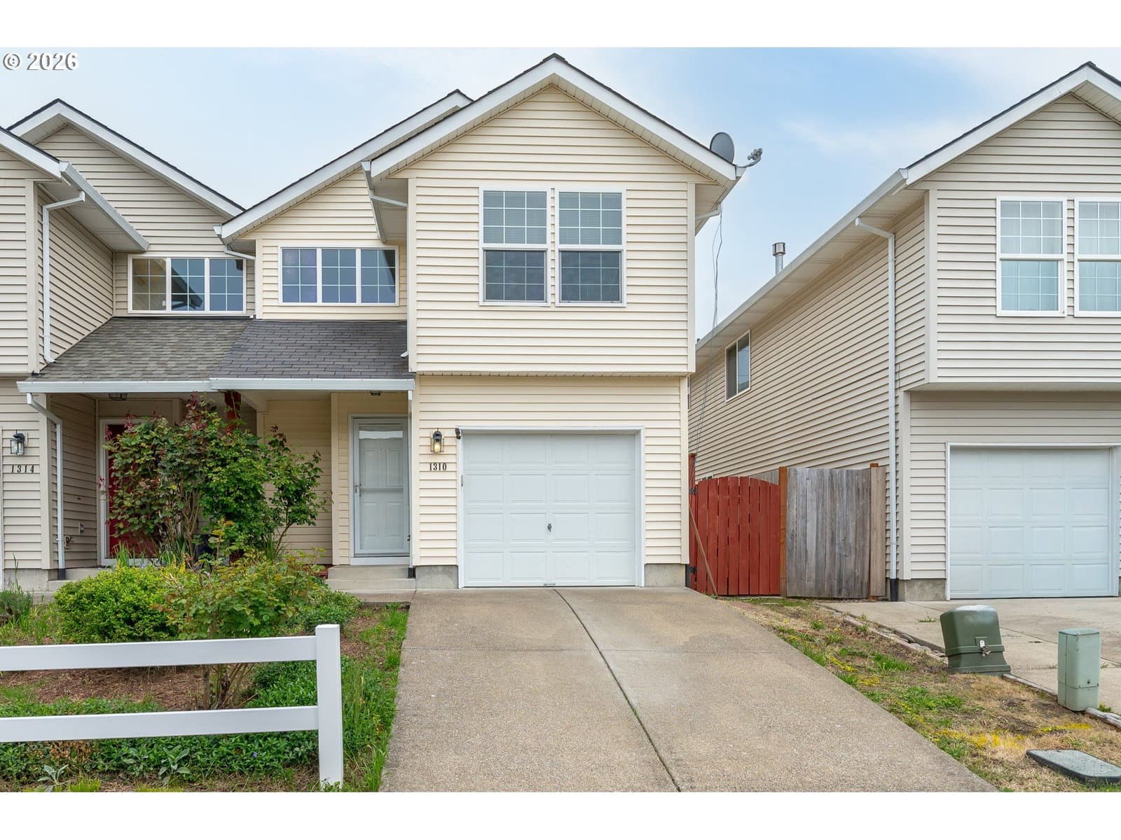 Updated attached home @ Creekside. Great Newberg location near parks, schools, & shopping. Open great room style kitchen living and dining area, wood floors throughout main level, kitchen with eat bar, granite tile countertop- new oven/stove, new sink. Vaulted primary suite with walk in closet & In-suite bathroom. Upper level laundry closet. Fenced back yard with decking. NO HOA fee.