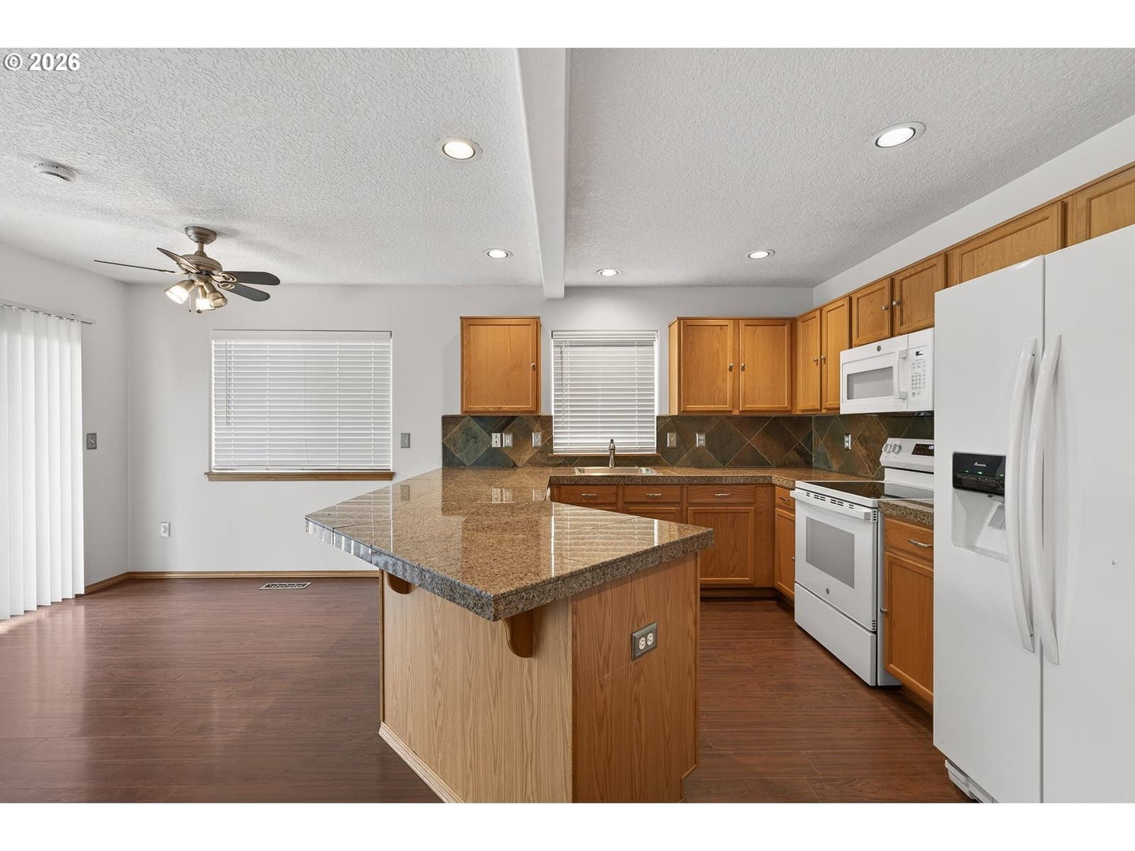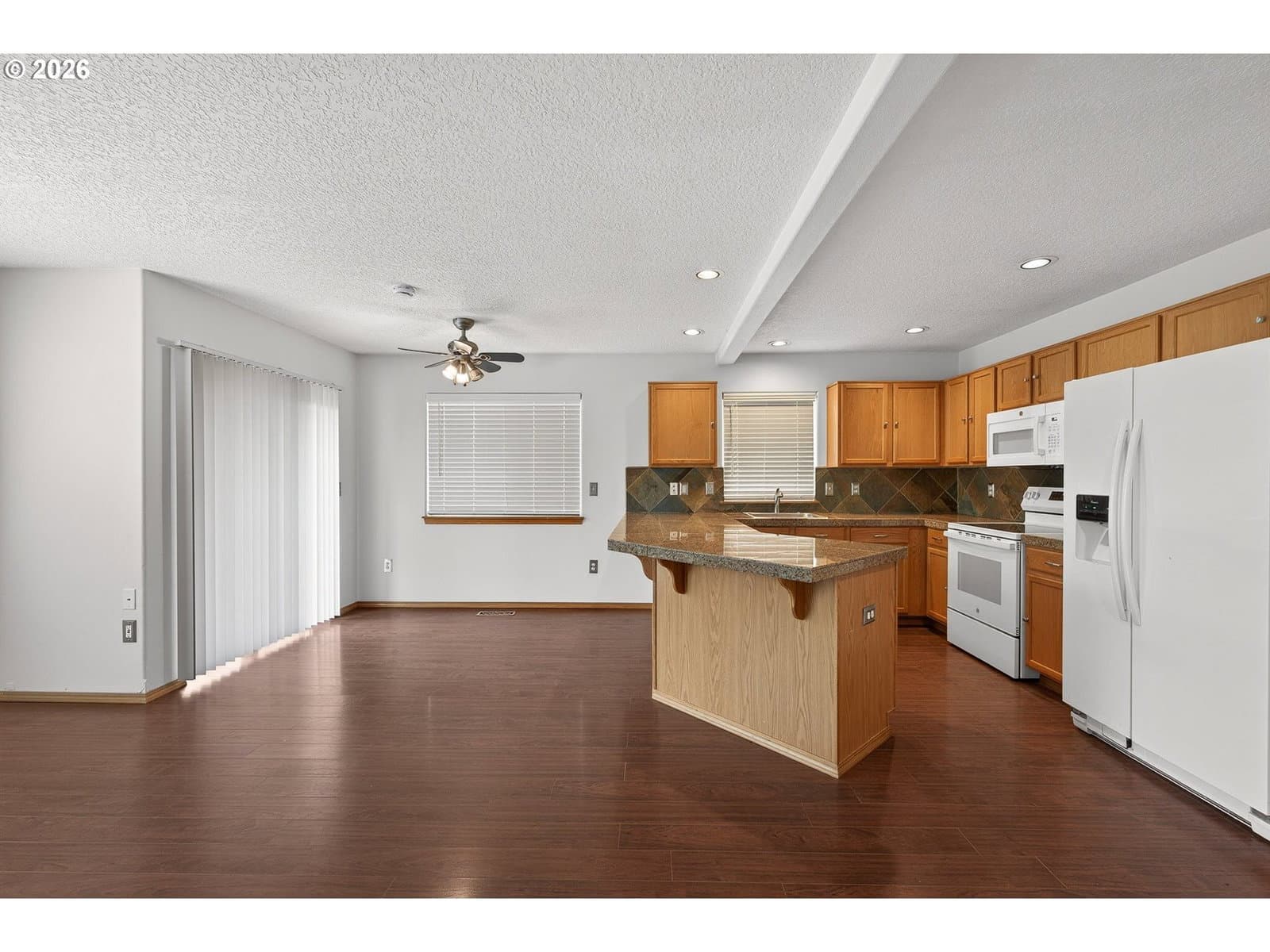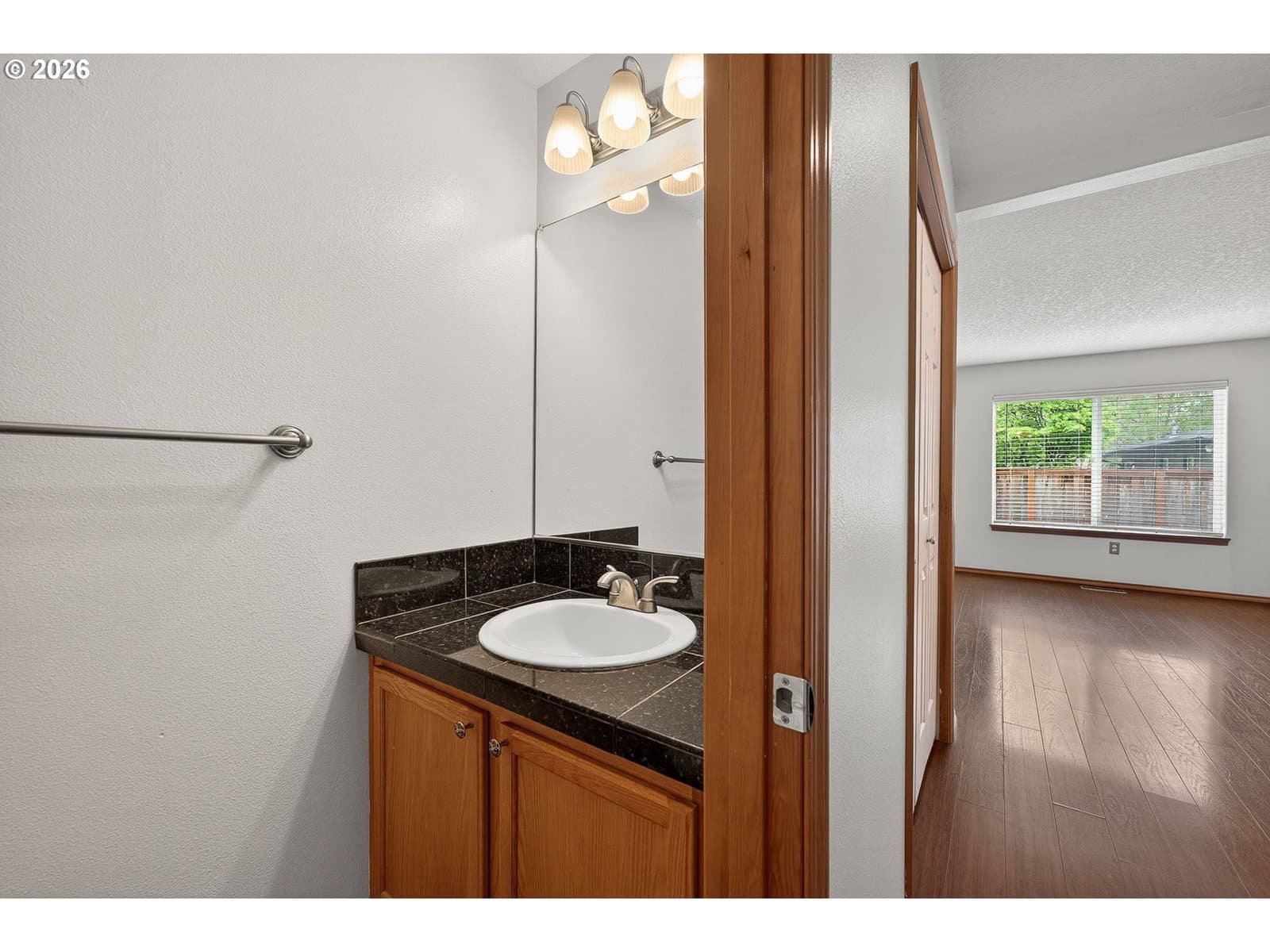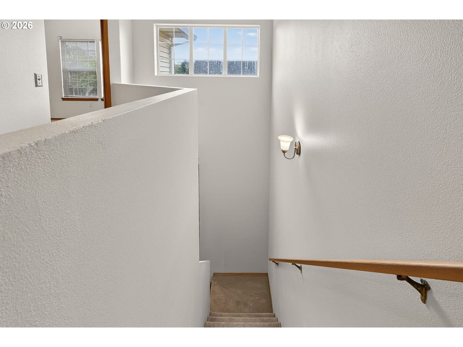 Updated attached home @ Creekside. Great Newberg location near parks, schools, & shopping. Open great room style kitchen living and dining area, wood floors throughout main level, kitchen with eat bar, granite tile countertop- new oven/stove, new sink. Vaulted primary suite with walk in closet & In-suite bathroom. Upper level laundry closet. Fenced back yard with decking. NO HOA fee.