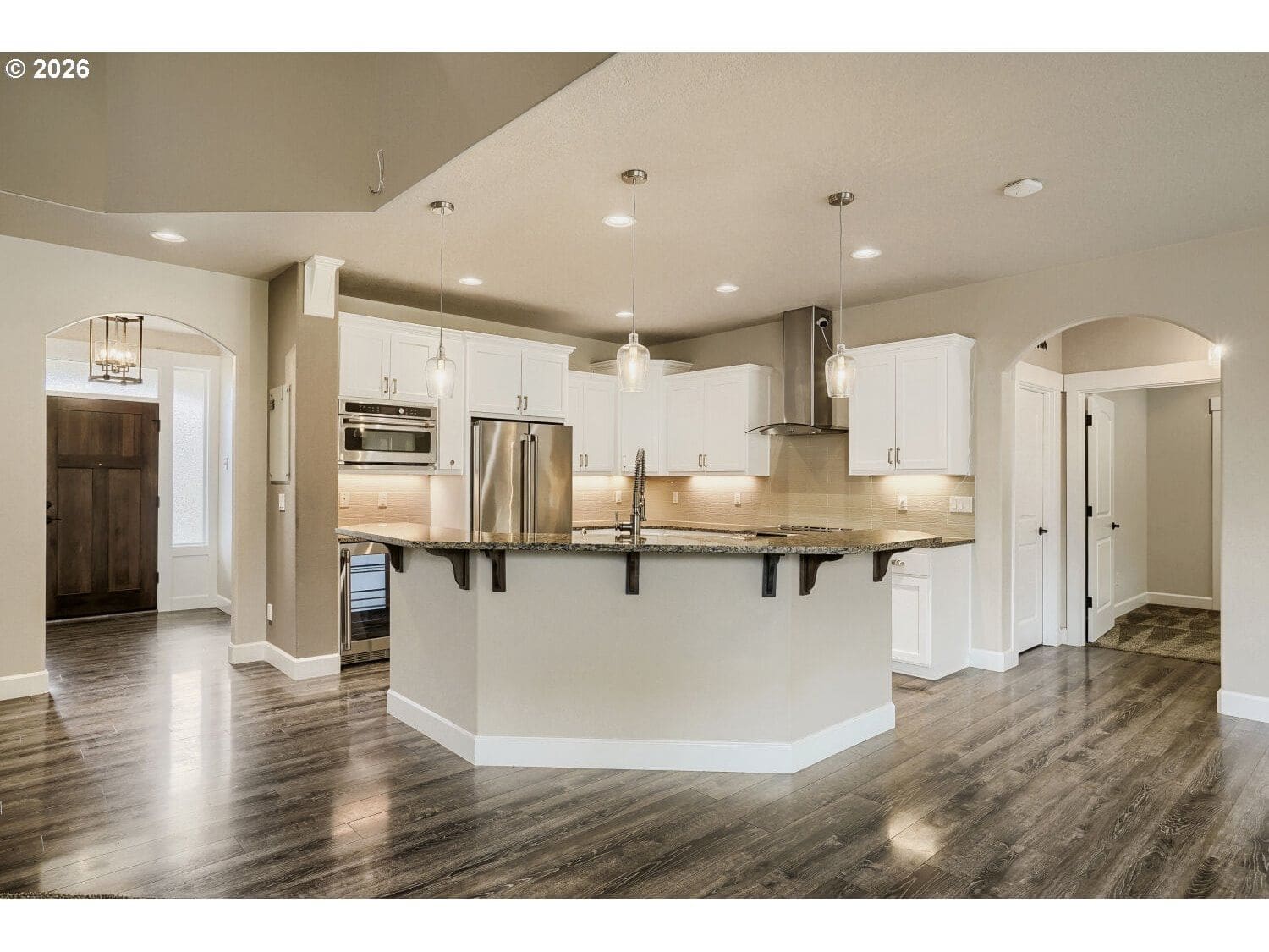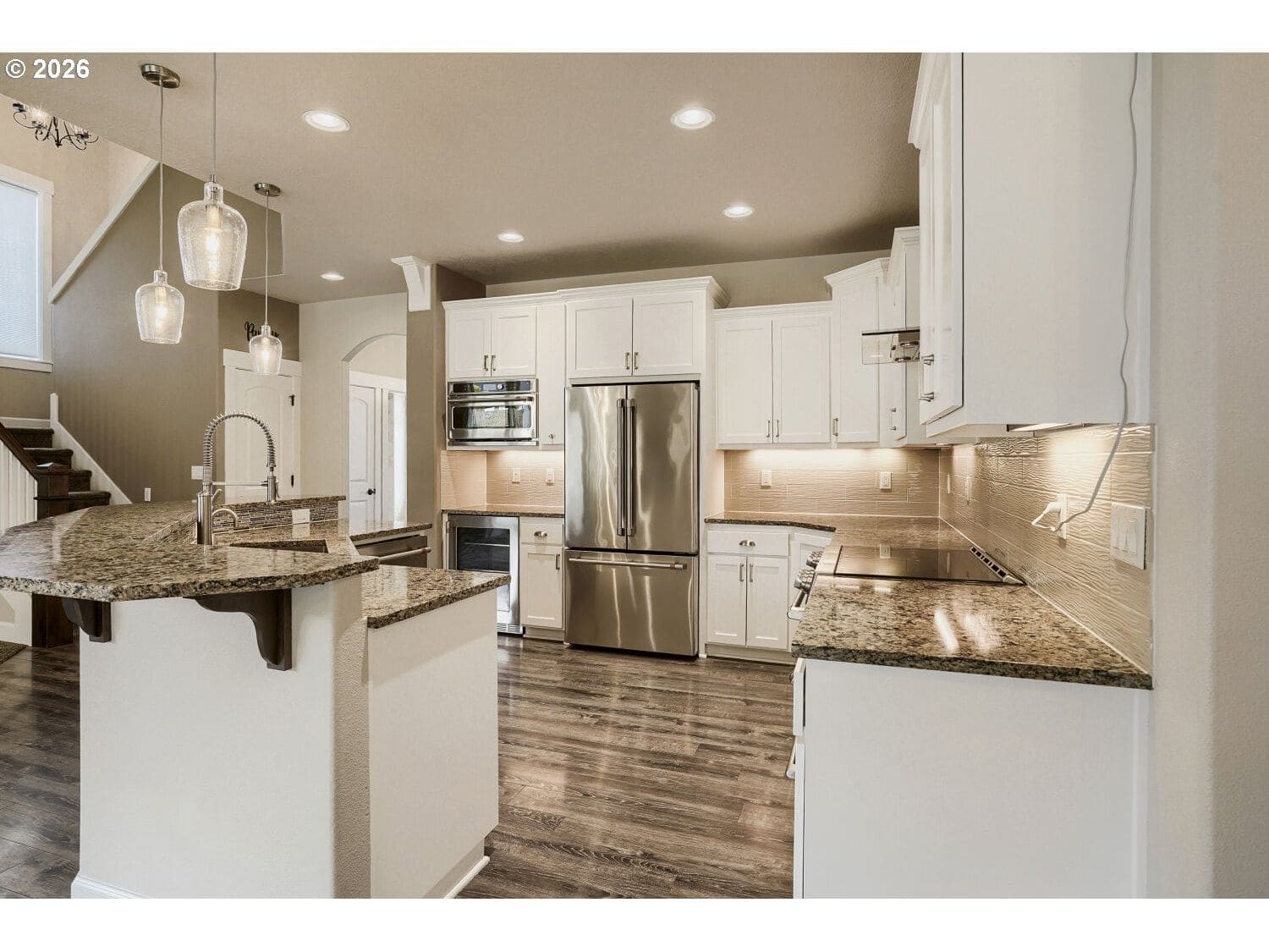 Gas Water Heater, Convection Oven, Dishwasher, Disposal, Free-Standing Range, Free-Standing Refrigerator, Induction Cooktop, Instant Hot Water, Microwave, Plumbed For Ice Maker, Range Hood, Wine Cooler