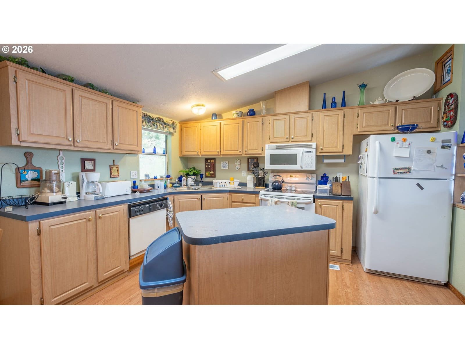 Scenic Retreat with Endless Potential. Don't miss this incredible opportunity to own a charming double-wide manufactured home perfectly situated on a spacious 1-acre lot on the scenic edge of Coquille. Boasting breathtaking valley views from the front deck, this property offers the perfect blend of rural tranquility and town convenience. The interior features a thoughtful, open-concept floor plan that seamlessly connects the kitchen, dining, and living areas—ideal for entertaining or quiet evenings taking in the vista. With 2 bedrooms and 2 full baths, the layout is both functional and inviting. Outside, you’ll find a detached garage providing ample storage or workspace. While this home needs a little TLC to truly shine, it is brimming with potential for an investor or a buyer looking to build sweat equity in a prime location.