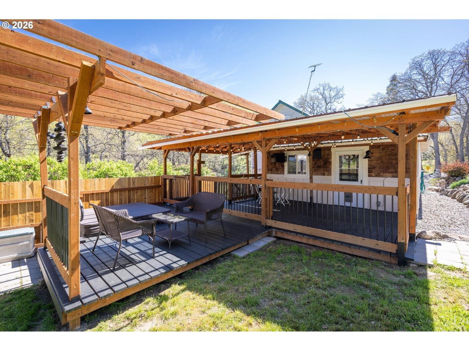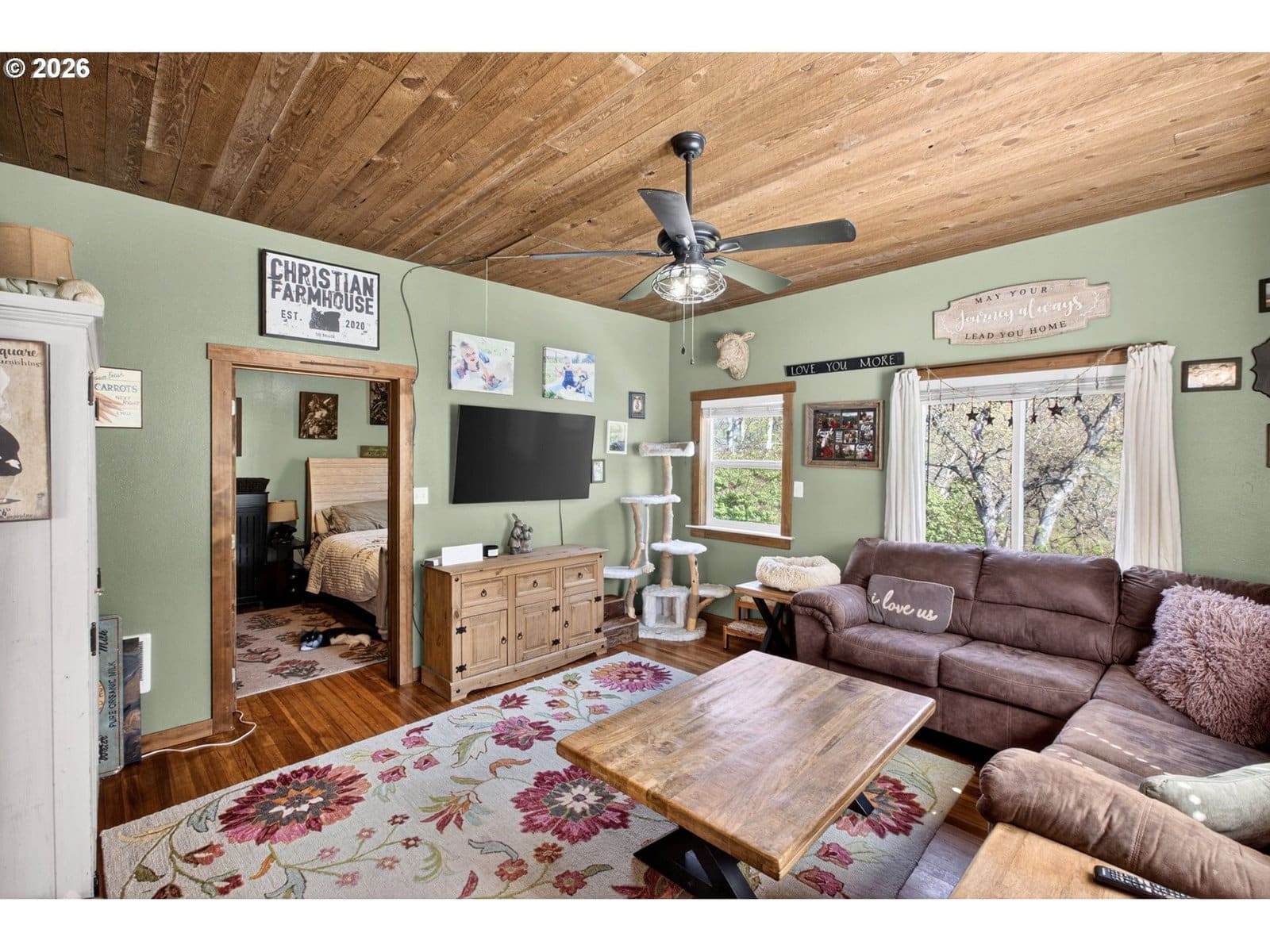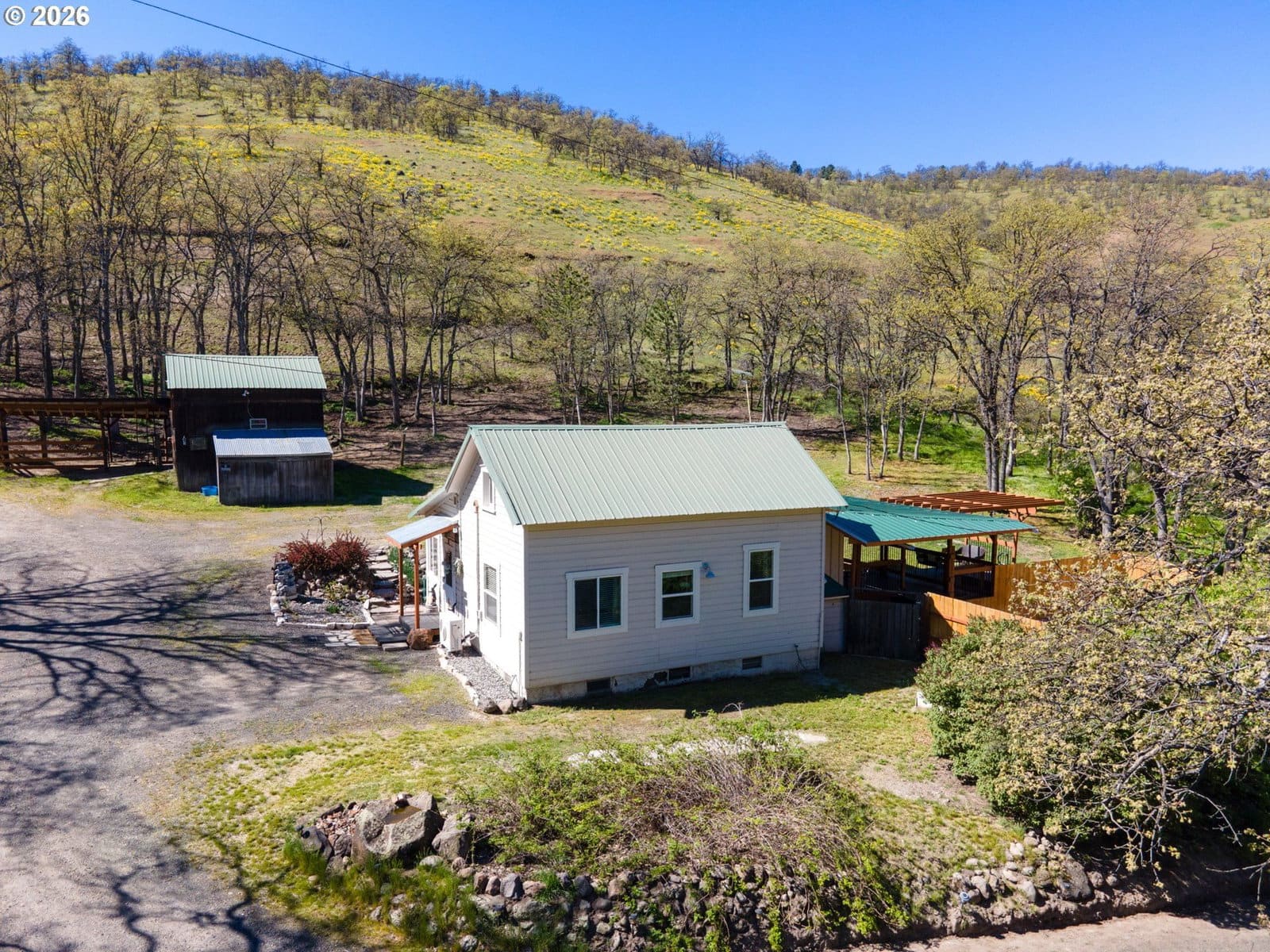 All you need set on over 7 acres of peaceful countryside! This charming cottage blends comfort and modern updates with a truly special setting. Inside, you’ll find hardwood floors, a mini-split system for efficient heating and cooling, and an updated kitchen and bathroom featuring stainless steel appliances along with upgraded plumbing and electrical. Step outside to the covered back deck-complete with a hot tub-perfect for relaxing evenings, entertaining, or simply taking in the quiet surroundings and star-filled skies. The land offers a wonderful mix of open pasture and mature trees, with a seasonal creek adding to the property’s natural beauty. Thoughtfully set up for animals, the property includes a fenced dog area, a barn, and approximately 1.5 acres of fenced pasture with an adjacent animal shelter. Enjoy the best of both worlds—your own private slice of country living, just under 10 minutes from downtown The Dalles.