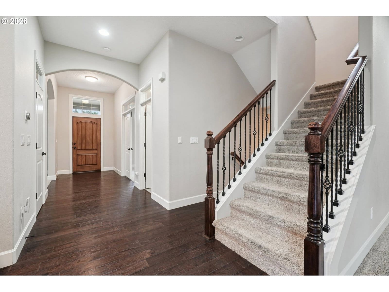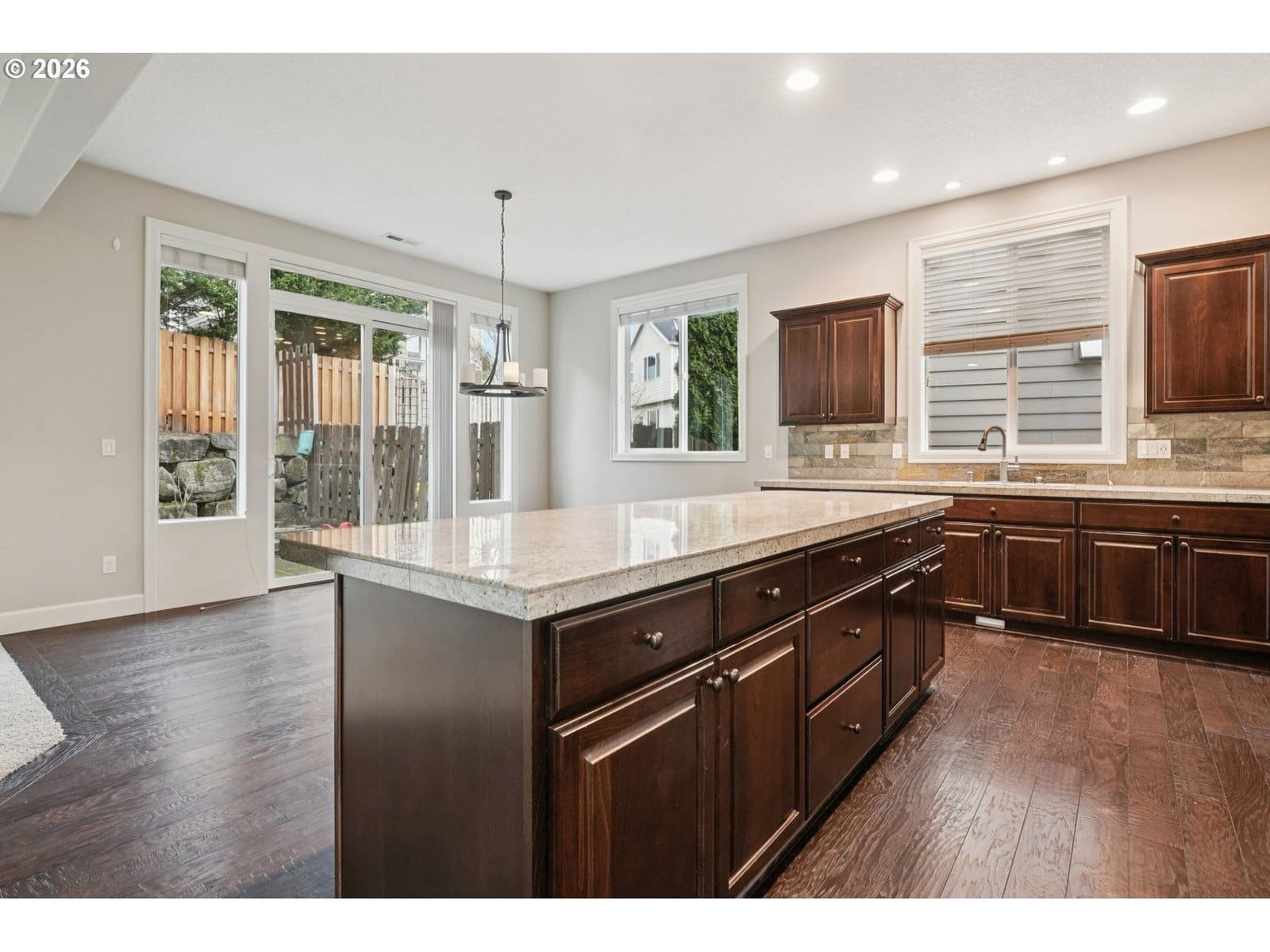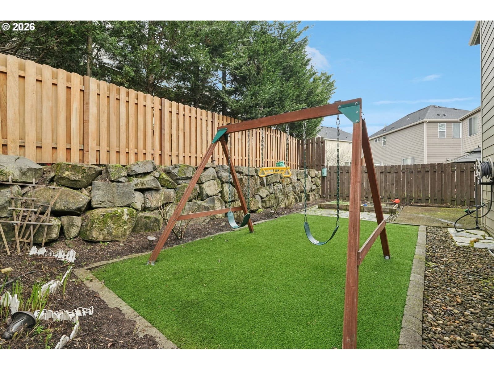 Beautiful home located directly across from Bonny Slope Elementary School. This thoughtfully designed home features a bedroom with elegant French doors and a full bathroom on the main level, perfect for guests or a home office. The kitchen is a chef’s dream with stainless steel gas appliances, a large island with an eating bar, granite countertops, and a butler’s pantry. A formal dining room greets you off the main entry, while the informal dining area opens to a the low-maintenance back yard with turf, a play structure, and a raised garden bed.The living room offers beautiful built-ins surrounding a cozy gas fireplace, creating a warm and inviting gathering space. In front, enjoy a spacious covered deck with a charming porch swing—perfect for year-round entertaining and relaxing outdoors.Upstairs you’ll find a spacious primary suite complete with a walk-in closet and a luxurious bathroom, along with three additional bedrooms and a media room with built-in power for a media system. Additional highlights include owned and paid off solar panels (4.8 kW system), garage overhead storage and an additional storage area. Ideally located just minutes from scenic walking trails, parks, shopping, and dining, with a convenient commute to major employers like Nike and Intel, as well as easy access to downtown Portland. This home truly offers the perfect blend of comfort, convenience, and lifestyle.