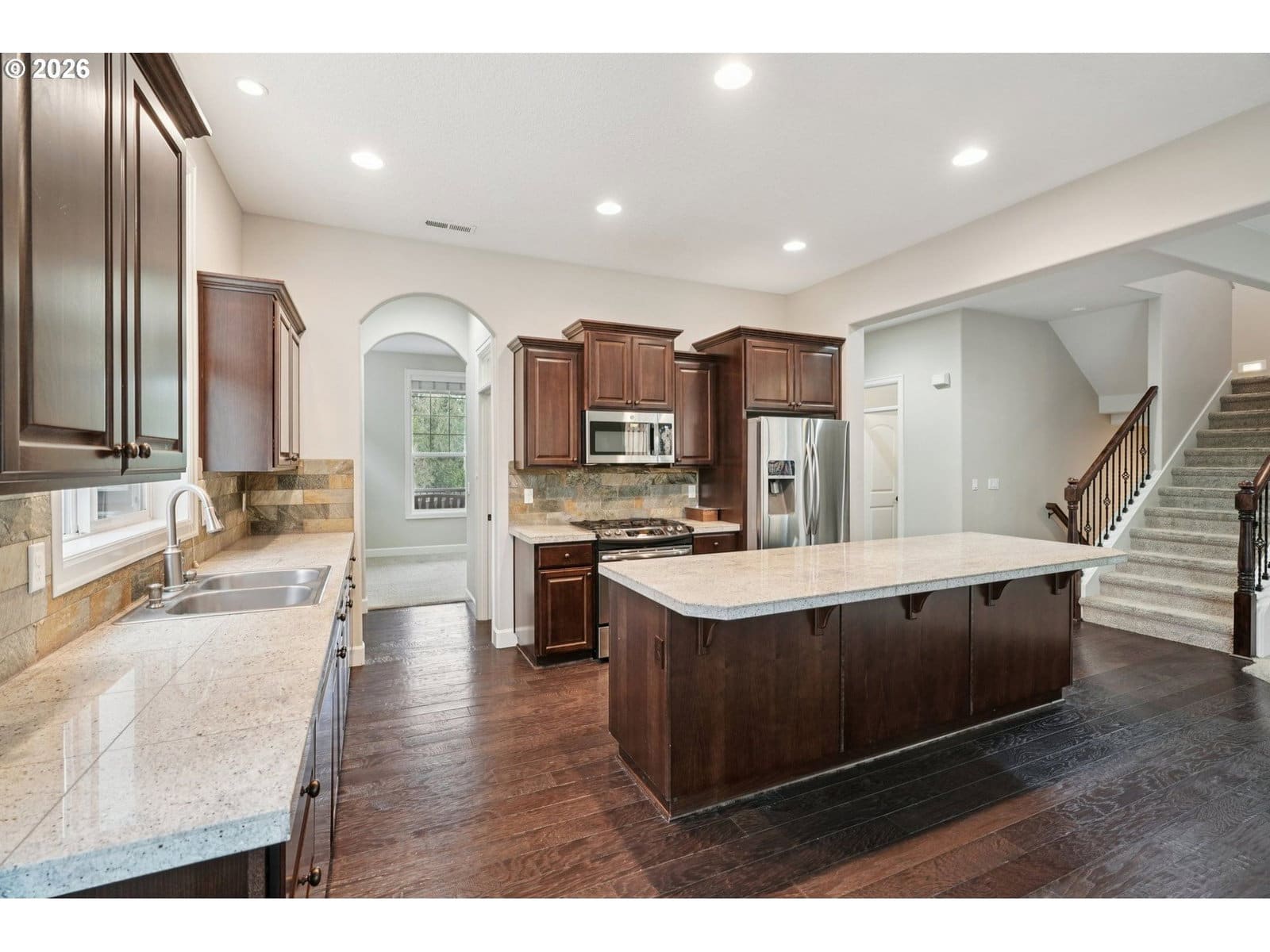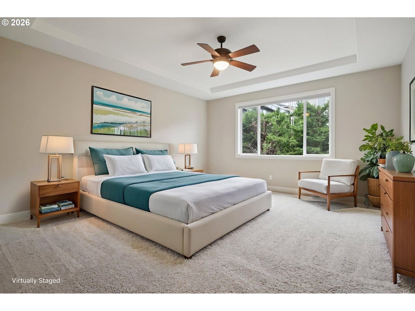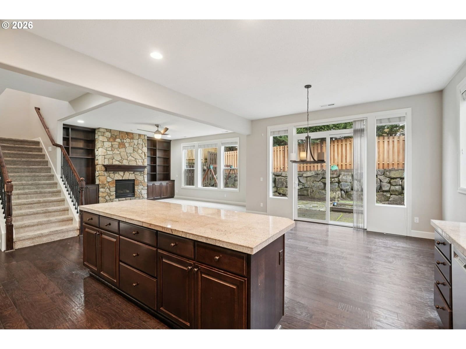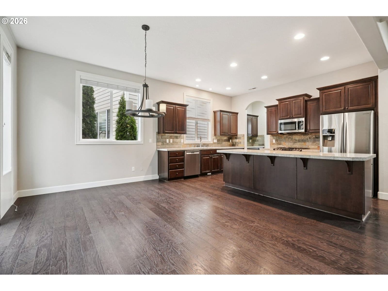 Beautiful home located directly across from Bonny Slope Elementary School. This thoughtfully designed home features a bedroom with elegant French doors and a full bathroom on the main level, perfect for guests or a home office. The kitchen is a chef’s dream with stainless steel gas appliances, a large island with an eating bar, granite countertops, and a butler’s pantry. A formal dining room greets you off the main entry, while the informal dining area opens to a the low-maintenance back yard with turf, a play structure, and a raised garden bed.The living room offers beautiful built-ins surrounding a cozy gas fireplace, creating a warm and inviting gathering space. In front, enjoy a spacious covered deck with a charming porch swing—perfect for year-round entertaining and relaxing outdoors.Upstairs you’ll find a spacious primary suite complete with a walk-in closet and a luxurious bathroom, along with three additional bedrooms and a media room with built-in power for a media system. Additional highlights include owned and paid off solar panels (4.8 kW system), garage overhead storage and an additional storage area. Ideally located just minutes from scenic walking trails, parks, shopping, and dining, with a convenient commute to major employers like Nike and Intel, as well as easy access to downtown Portland. This home truly offers the perfect blend of comfort, convenience, and lifestyle.