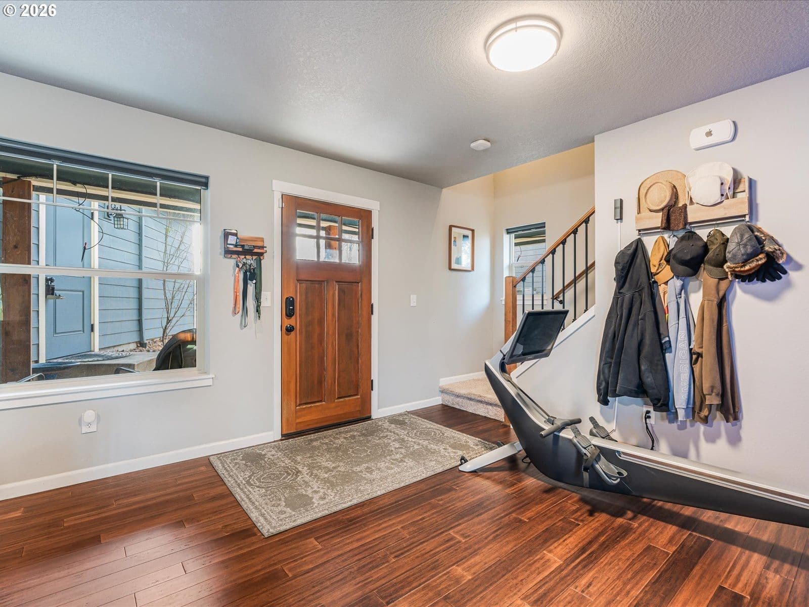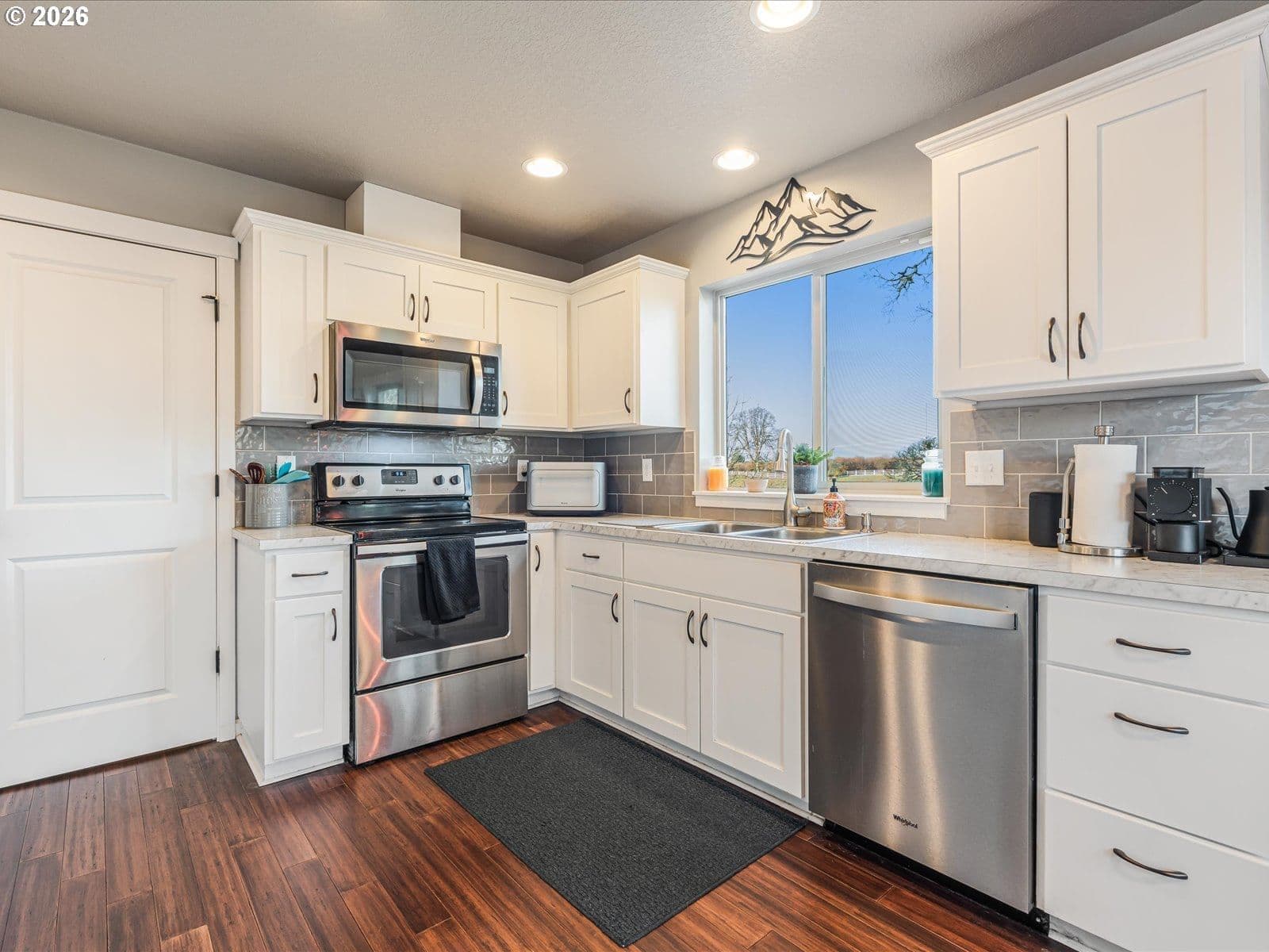 Situated in a quiet cul-de-sac abutting a park, this recently built two story home boasts an open layout and a wonderful view of the creek and countryside from the kitchen and back deck. The solar power system (only 3 years old) and the power-out generator plug-in are great plusses! Living room, dining area and kitchen flow together nicely on the ground floor. A pantry/laundry walk-in space off the kitchen is very practical, as is the storage space under the stairs and the half bathroom. On the upper floor the 3 bedrooms and 2 full bathrooms are well laid out, with some offering the countryside and creek view as well. The detached one-car garage connected by a breezeway and the fully fenced backyard complete this must-see property.