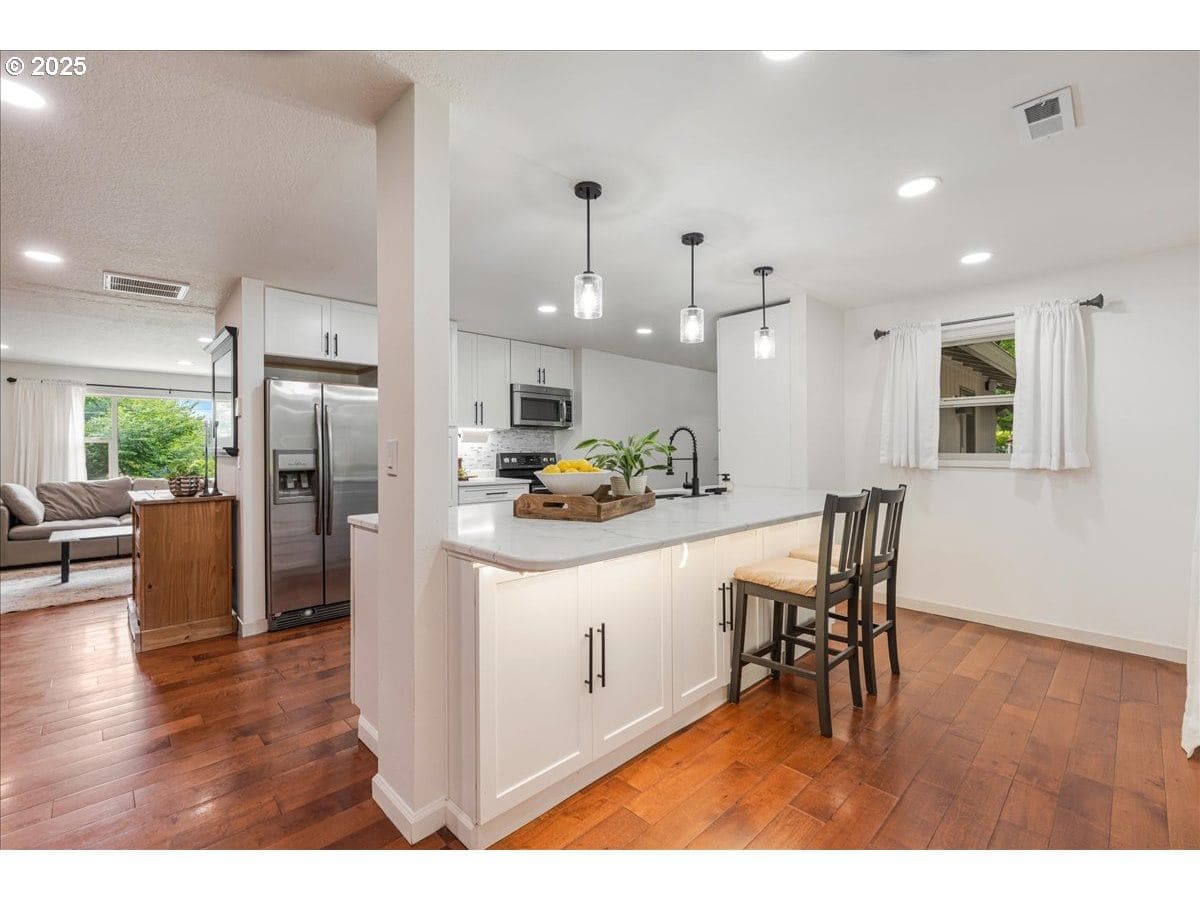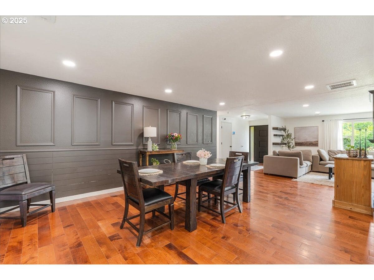 Priced to sell! Submit your offer for consideration asap! Just a short stroll from the river, with plenty of space to park your boat or RV, this beautifully updated single-level home in Milwaukie’s tranquil River Forest neighborhood is a rare find. Sitting on a generous 1/3-acre lot, it offers the peaceful feel of country living while staying close to the heart of the city. Inside, the open-concept layout welcomes you with light-filled spaces and thoughtful updates, including a modern kitchen with a built-in flex area—perfect for a home office, extra prep space, or a cozy spot for kids to do homework. The flow of the home makes it equally suited for quiet evenings by the fireplace or hosting lively gatherings with loved ones, creating a backdrop for wonderful memories. Step outside to your own private retreat, where the expansive lot invites gardening, playtime, or simply soaking in the serenity of Oregon’s seasons. The large covered patio, complete with a stunning tongue-and-groove ceiling, lighting, and a ceiling fan, transforms outdoor living into something truly special—imagine morning coffee as the sun rises or summer barbecues filled with laughter. The spacious two-car garage is complete with a full set of cabinets and huge counter space, creating a mini workshop. A man door in the garage leads to an attached, covered storage space for all your extra implements and toys. Situated in the tree-lined streets of River Forest, with Milwaukie’s charming shops, parks, and riverfront just moments away, this home offers a lifestyle of comfort, connection, and countless moments to cherish with family and friends.