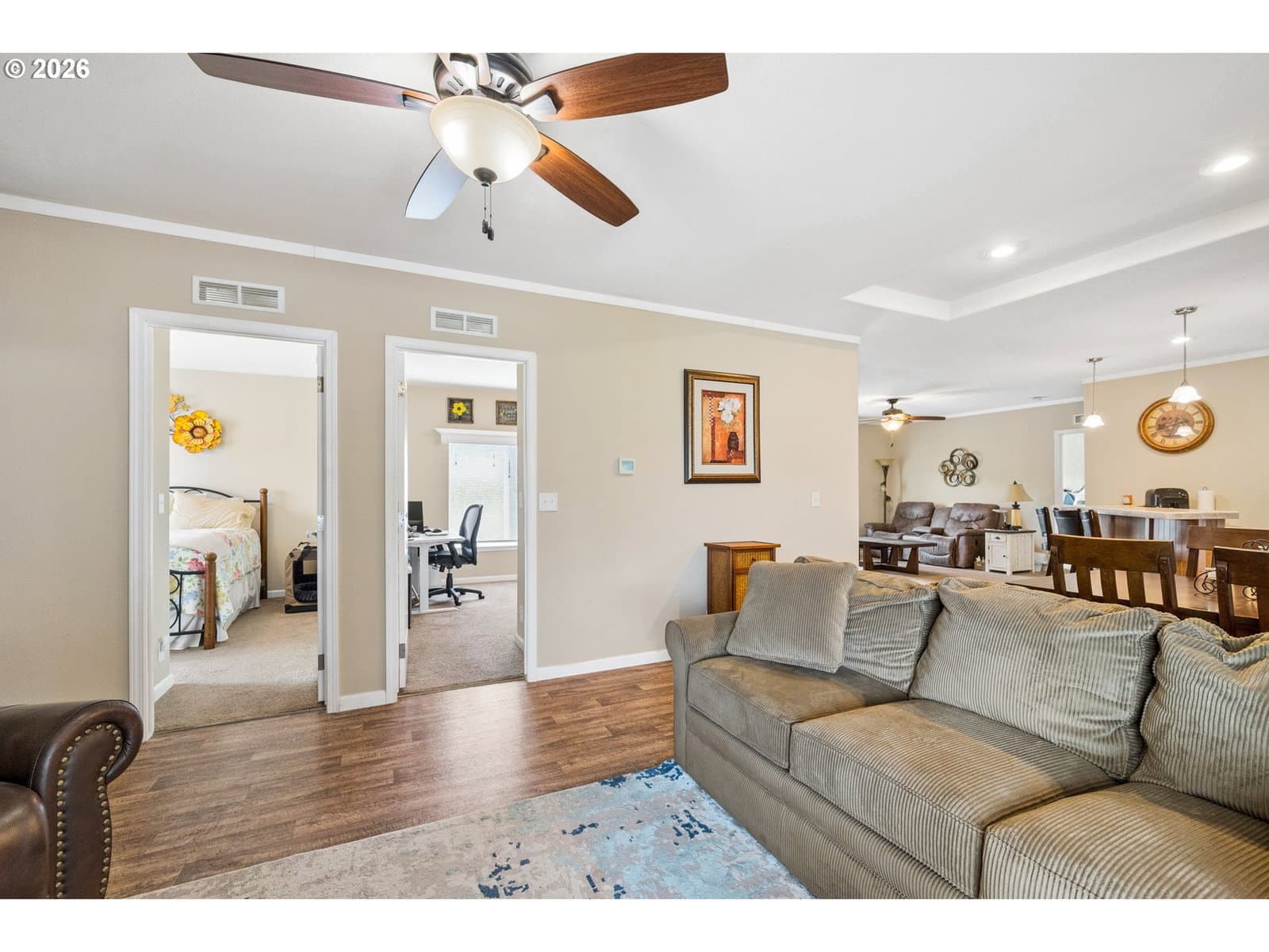 Country living! Come see this warm and inviting 3 bedroom, 2 bath home in the serene countryside, on the edge of Junction City. This home offers a well laid out open floor plan, covered patio, and nicely landscaped yard. Located in an all ages manufactured home park. Space rent is $750. Park approval is required to complete purchase. Land is not included in the sale.
