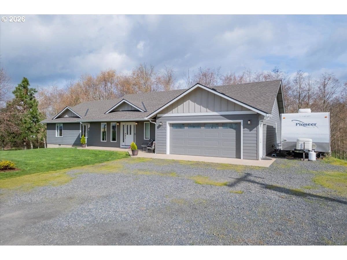 17days on marketStunning like new single-level home on acreage! This 4 bed,3 bath + office & bonus rm offers Light-filled great room with vaulted ceilings that flows into a open kitchen with island, quartz counters and custom cabinetry.All bedrooms feature walk-in closets, including a private primary suite with deck access & dual vanities. Large laundry room & excellent storage throughout.Elevated deck looks over custom stamped patio & pool perfect for entertaining.16x30 shop with power & concrete floors + workshop under home.