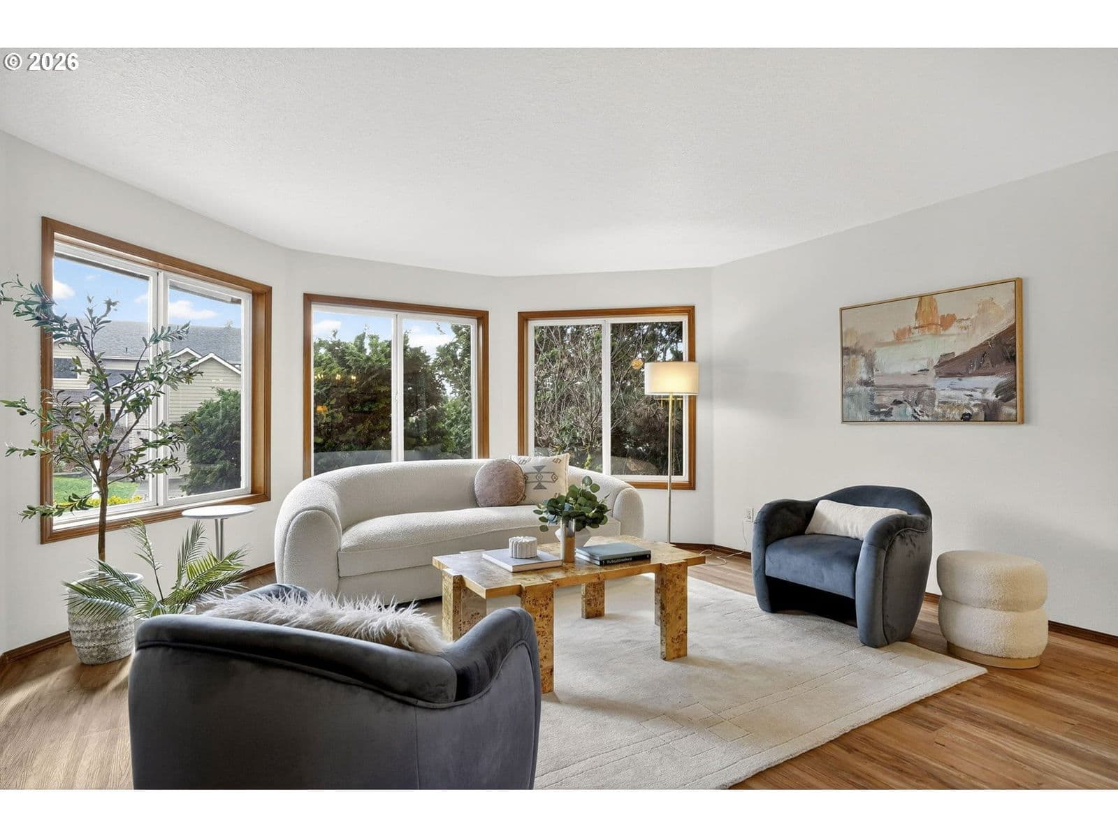Rare ONE-LEVEL living at its finest! This beautifully designed home offers effortless flow, new flooring, expansive windows, and an abundance of natural light throughout. Enjoy generous open-concept living spaces and a specious kitchen featuring a gas stove, quartz countertops, undermount sink, new disposal and stainless steel appliances. The bedrooms provide comfort for all, while the sizeable primary suite boasts dual sinks and a walk-in closet. A dedicated laundry room adds convenience (washer and dryer included), and the new roof (2023) offers peace of mind. Step outside to a serene deck, ideal for sipping your morning coffee. Located just minutes from Clackamas Town Center, the MAX Green Line light rail, Mount Talbert Nature Park, Kaiser Permanente Sunnyside Medical Center, and Costco Wholesale, this home perfectly blends style, comfort, and convenience. Don’t miss your opportunity! Open Sunday, March 1st, from 12pm–2pm!