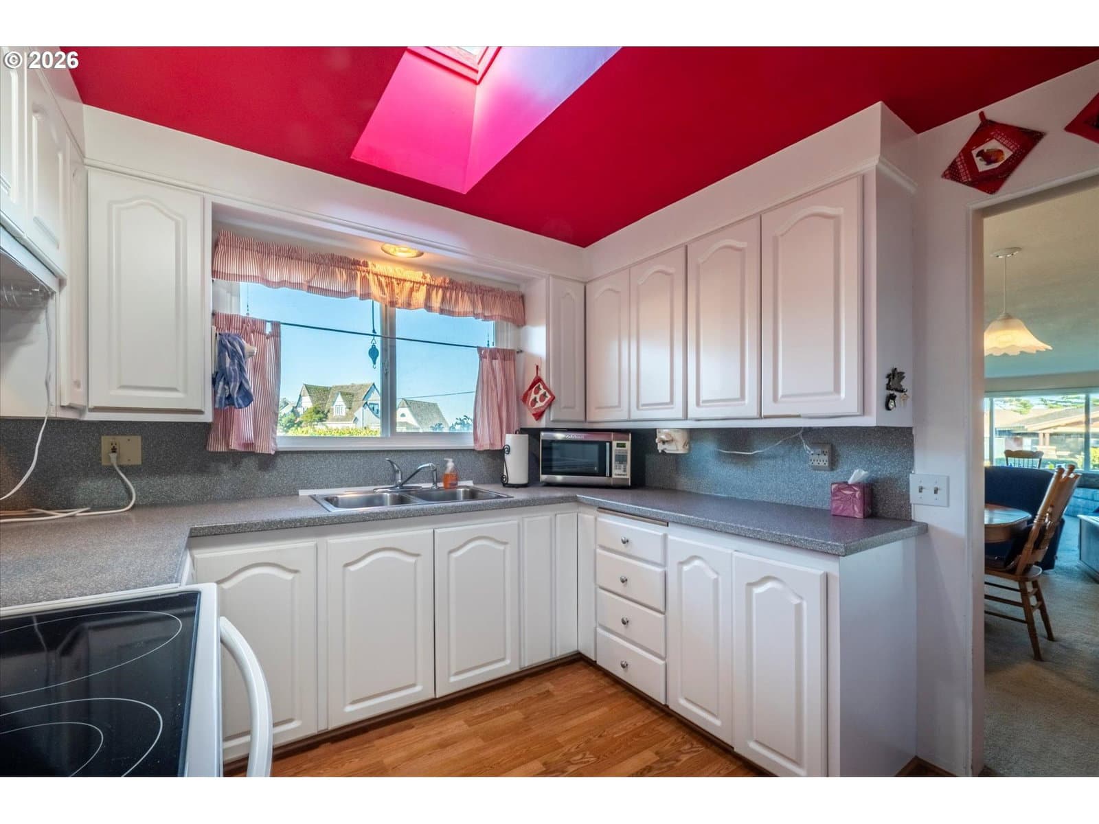 OCEAN WAVES ROLLING ON IN to the Jetty at the mouth of the Coquille River is the view from this single level 1960 Ranch Home on large, fenced lot features 3 Bedroom/2 Baths, 1962 sq. ft., decorative brick siding, picture windows, a spacious family room with 6 skylights in addition to the large Living Room/Dining Room with Pellet Stove with Brick & Myrtlewood Mantle, new Daikin Heat Pump, front loading Kenmore Elite Washer/Dryer, vinyl windows, small sheltered, private deck, 2 car attached garage with built in workbench & shelving plus an extra fridge. Sold mostly furnished if you would like. The .22-acre yard is fenced into 3 sections. One area, 55 x 60 ft. might be just right for an ADU, studio or shop or just an enviable garden. Quick walk to all the fun: beach, park, library, pickleball, disc golf, senior center, Old Town shops & dining! Great Bandon Beach House in a prime sweet spot!