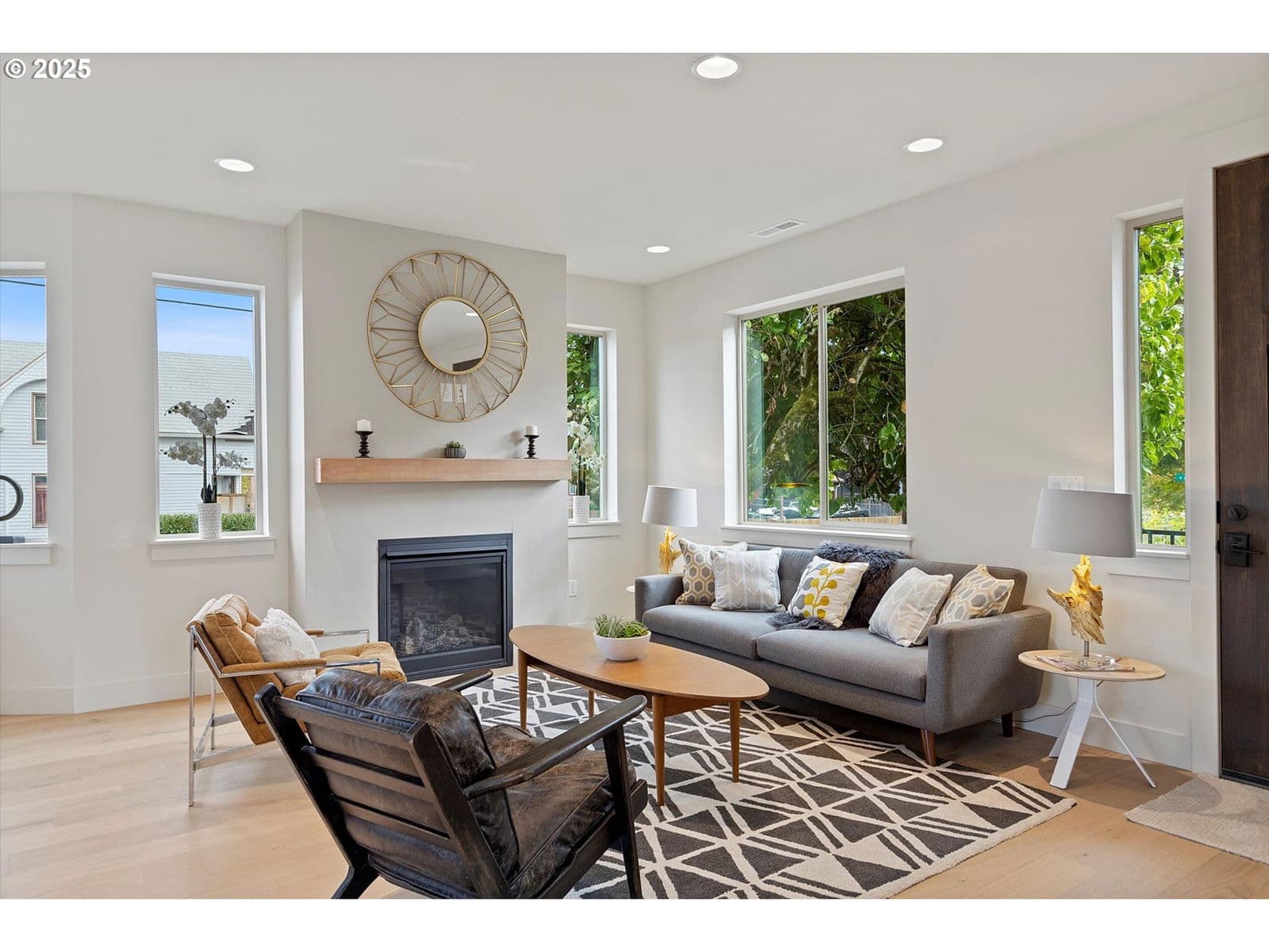 Welcome to this sophisticated rebuild in the coveted Boise–Eliot neighborhood!This stunning home was completely rebuilt from the ground up and showcases modern design, luxurious finishes, and thoughtful functionality throughout. With 4 bedrooms, an office, 3.5 baths, and a finished basement featuring soaring 8-foot ceilings, this residence offers the perfect balance of comfort and style.Step inside to an inviting living room centered around a custom plaster fireplace, seamlessly flowing into an open-concept kitchen designed for both everyday living and entertaining. The chef’s kitchen boasts extensive custom cabinetry, elegant marble countertops, and a butler’s pantry with a hidden appliance bar for a clean, streamlined look.Just off the main level, a spacious office provides the ideal work-from-home setup, paired with a show-stopping half bath that’s sure to impress. Upstairs, the primary suite is truly spa-like — featuring a luxurious, expansive bathroom and generous closet space. Two additional large bedrooms and a stylish shared bath complete the upper floor.Downstairs, the fully finished basement offers endless flexibility — perfect for a media room, guest suite, or fitness area.Additional highlights include off-street parking, EV wiring for your electric vehicle, and a large rear deck overlooking a beautifully landscaped backyard.All of this in an unbeatable location — just blocks from the vibrant restaurants and shops on N Mississippi and N Williams, with easy access to transit and nearby freeways for quick connectivity throughout the city.