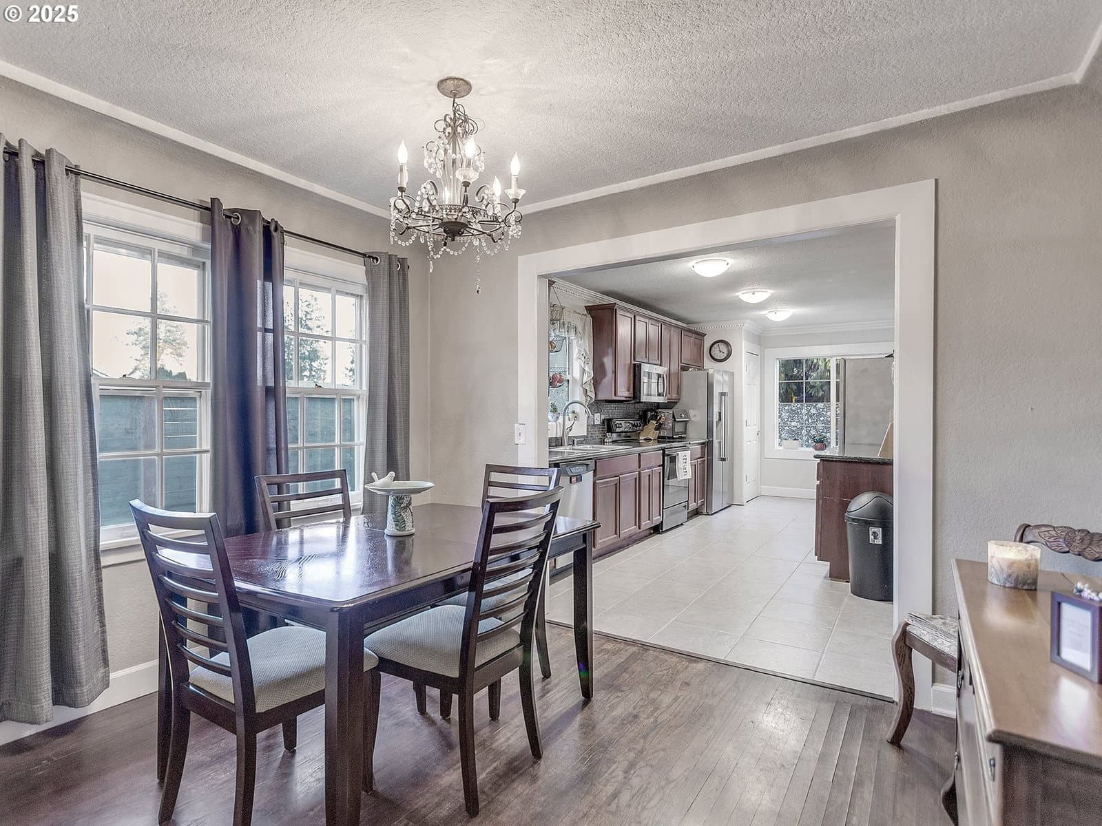 Step into timeless 1950s charm beautifully blended with thoughtful modern updates. This remodeled home welcomes you with original, gleaming hardwood floors and inviting coffered ceilings accented by elegant archways in the main living room. A cozy wood stove and dual ceiling fans create the perfect atmosphere for year-round comfort. The spacious kitchen and dining room feature durable tile flooring, granite countertops, and a functional layout ideal for cooking or entertaining. The brand-new remodeled bathroom adds a fresh, stylish touch to the main level.Upstairs, you’ll find a private bedroom and bathroom—perfect as guest quarters, or separate living area. The property also includes an additional bonus space that lives like its own apartment boasting a living room, kitchen, full bathroom and bedroom. Situated on an impressively large in-town lot, this home offers room to spread out, garden, entertain, or simply enjoy the space rarely found in this central location. Classic character, modern comfort, and flexible living spaces—this one truly has it all.