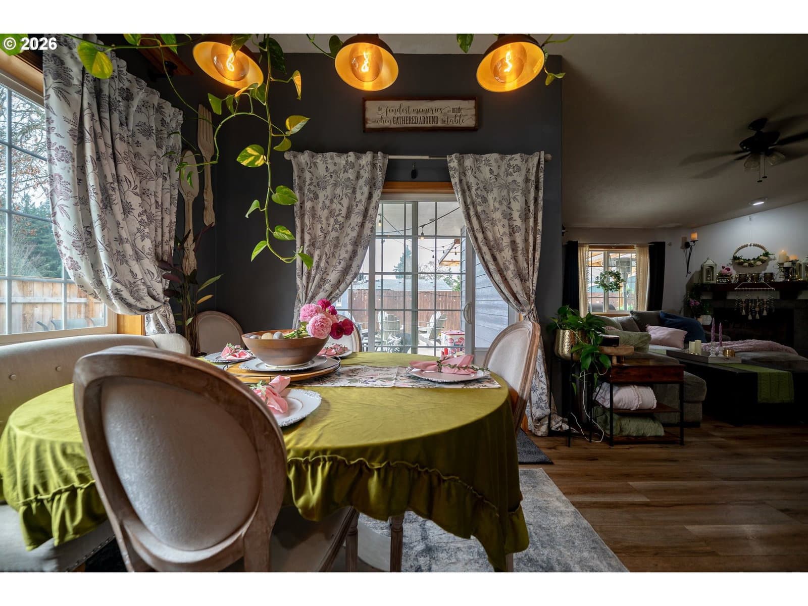 Outdoor entertaining at its best. 3 bed, 2 bath, 1,327 sqft home offers a open-concept layout with great flow for everyday living. Enjoy a cozy gas fireplace, new HVAC system with A/C, and a spacious kitchen & newer black S/S appl. Step outside to a true highlight—an outdoor entertaining space with covered patio and custom firepit, ideal for summer BBQs, relaxing evenings, or hosting friends year-round. The fully fenced yard provides room for pets, play, or gardening, plus RV parking & garden shed