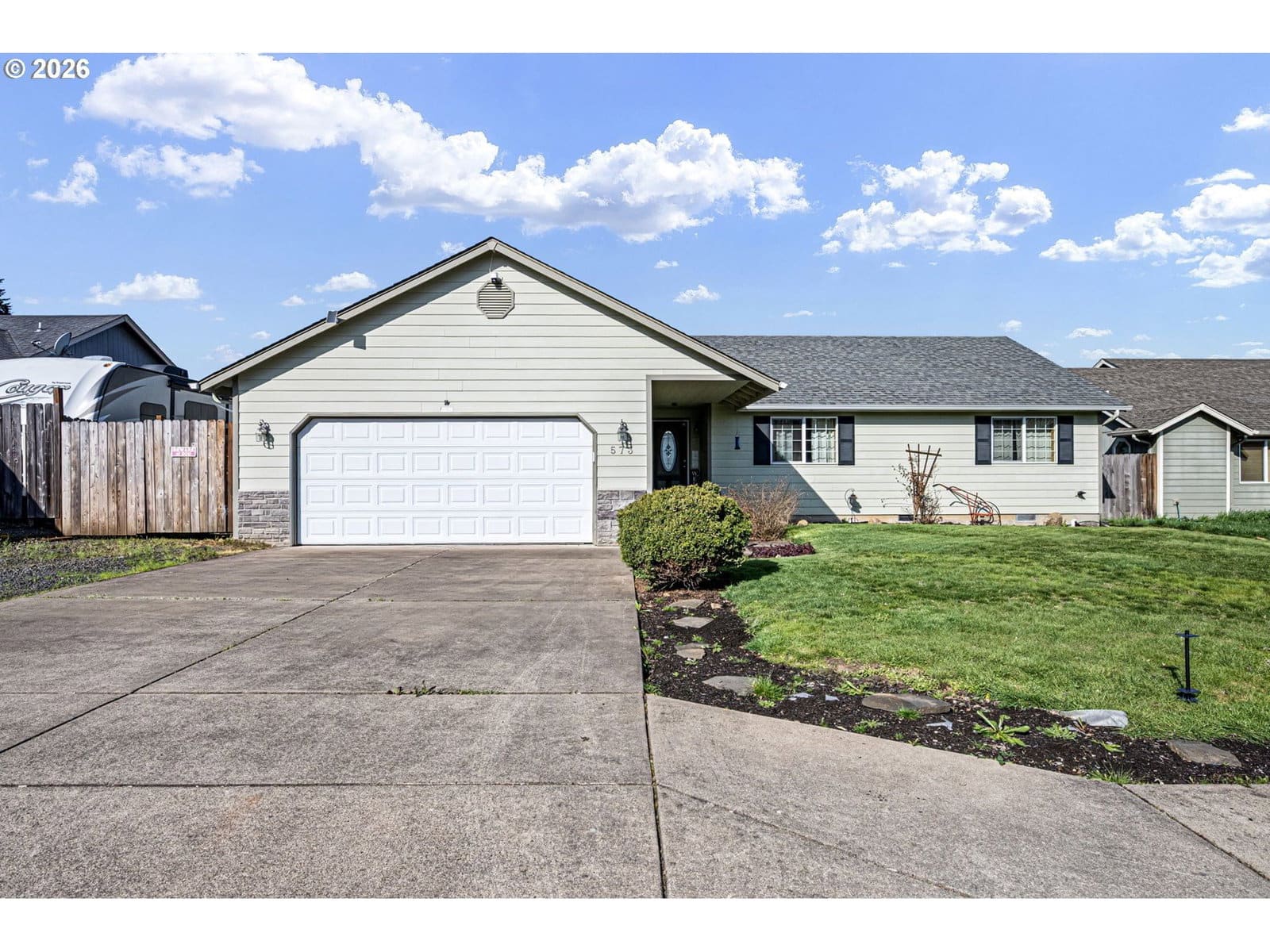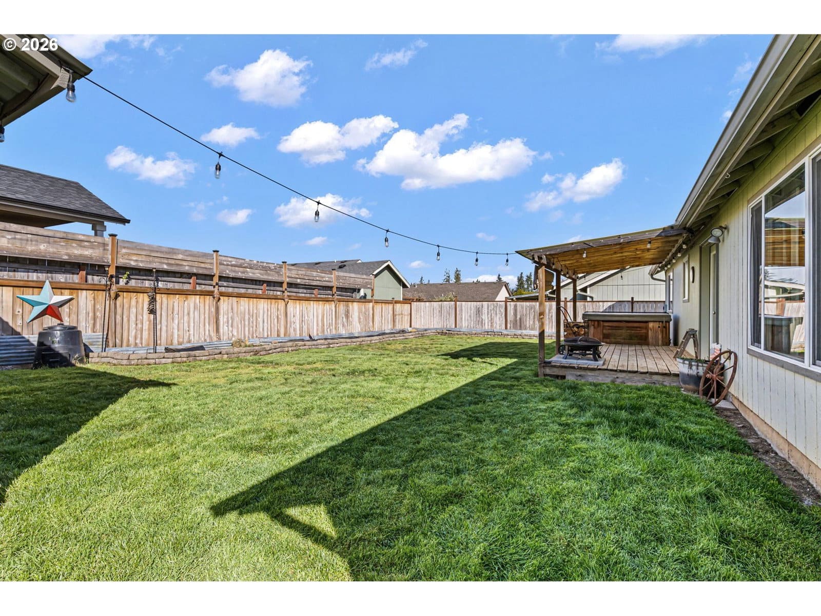 Charming single-level 3 bed, 2 bath home with an open-concept living, dining, and kitchen layout. Kitchen features a large pantry and easy flow for everyday living and entertaining. The primary suite includes a private bath. Living room french doors lead to a covered back porch with a hot tub just off to the side, creating a great space to relax.Front and backyard include in ground sprinkler systems, along with raised garden beds ready for spring and summer planting. The fully fenced yard offers a wide side gate with room for additional parking, including space for boats or recreational vehicles.The 2-car garage includes a nicely finished hobby room, offering flexibility for a variety of uses. Clean and well-maintained, this home is ready for its next owner to make it their own.