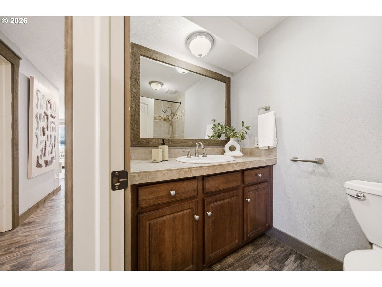 Nestled at the end of a private drive, this established ranch-style home offers unparalleled privacy on an expansive lot. The massive, fully fenced back and front yards are a true outdoor sanctuary with mature landscape, featuring an enormous covered patio designed for year-round comfort. With over 15,000 sq ft lot, enjoy abundant space for pets, gardening or future projects or expansion or potential ADU. The property also includes extensive parking-perfect for an RV w/existing gate, boats, or a dream shop. Experience the ease of single-level living in this thoughtful custom 4-bedroom, 2-bathroom, 1,664 sq ft home. This is no cookie-cutter home! The open-concept interior has many windows & dual sliding glass doors. Durable LVP flooring throughout, offering a completely carpet-free environment. A unique double-sided fireplace anchors the spacious living & dining rooms. Living room provides private access to a secluded hot tub area. The dining room provides access to a huge patio. The kitchen is equipped with a eating bar, granite countertops, gas cooktop & double ovens! Retreat to the primary suite, which features double closets and a tastefully updated bathroom. The garage features overhead storage, a separate workshop/storage room with outlets for power tools & has multiple exterior access doors. Recent professionally serviced HVAC, water heater and roof, & upgraded electrical GFCI outlets. No CC&R's or HOA. A rare find in Battle Ground-schedule your private tour today!