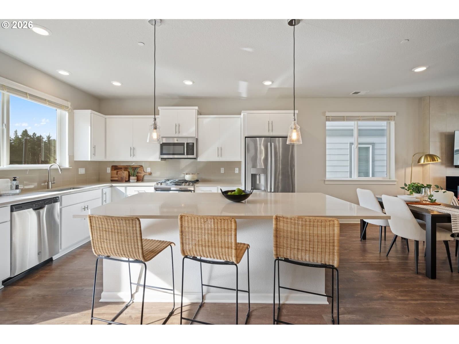 Tucked into a quiet neighborhood and built in 2018, this home was made for those who value both peace and quiet, and access to what matters; quality dining, shopping, and outdoor recreation all just a stones throw away. The main living spaces are open and bright, positioned so that the sun flows throughout the entire floor with windows that look out into nature. The spacious kitchen leads directly into the comfort of your living room where you can kick back and relax. Adjacent to the living room, you’ll find a dedicated den providing a quiet space to work without leaving home. Upstairs the loft area offers flexibility for a second entertainment space, reading nook, or quiet retreat. You’ll also find the primary bedroom ,with a generous walk-in closet, and two additional bedrooms. Heading outside is an expansive deck looking out onto a greenspace that feels like an extension of your own backyard. It's the kind of view that makes you feel like you are directly in nature for that morning coffee or to entertain guests in the evening. Located in a neighborhood that balances seclusion with convenience, you get genuine privacy without feeling isolated. Restaurants, cafés, and parks are all mere blocks away. This is a home for those who prefer substance over spectacle, a place surrounded by nature with all of the practical amenities nearby. Come see how amazing the home truly is Exterior landscaping and community play structure maintenance.