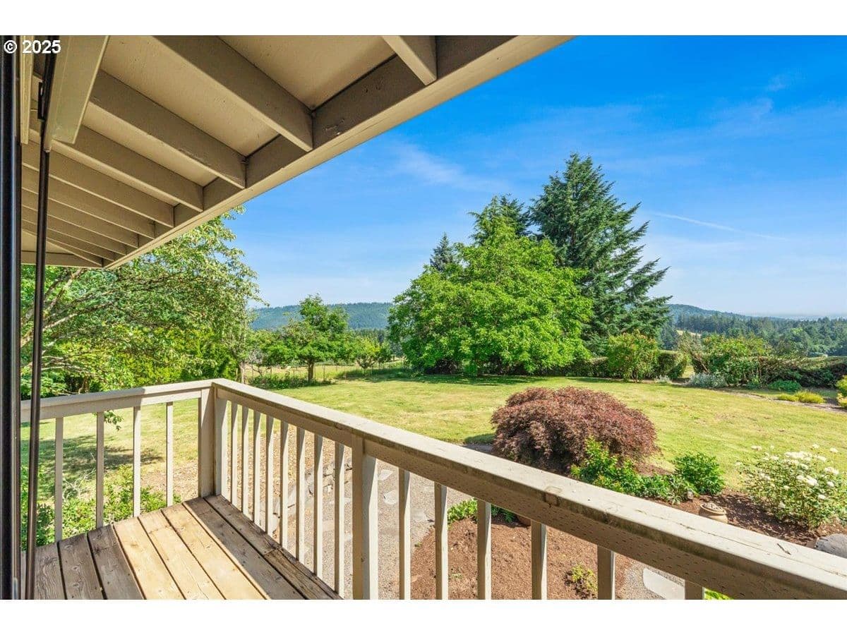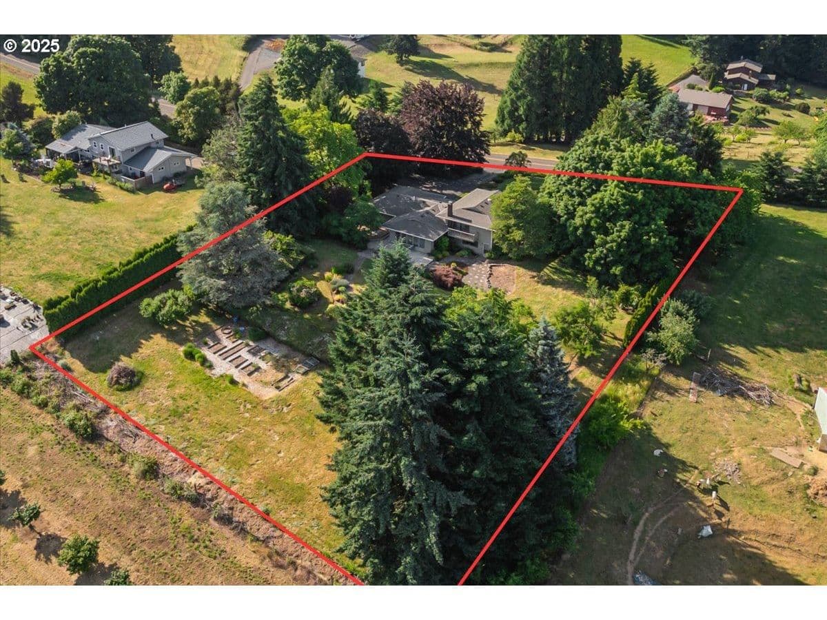 Some homes have a feeling you just can't capture in photos. This is one of those rare finds that surprises you in the best way. From the moment you step inside, the wall of floor-to-ceiling windows floods the interior with natural light and draws your eye to the landscape and sweeping valley views. Tucked into the heart of Oregon wine country, you feel a world away, yet you're just minutes from Sherwood and Newberg's shops, restaurants, wineries, parks and trails. Inside, the layout blends open-concept living with defined spaces for both gathering and retreat. A subtle nod to mid-century design adds character without feeling dated. Thoughtful updates reflect consistent care and pride of ownership. The kitchen was designed for both everyday function and easy entertaining, featuring a gas range, prep sink, oversized Sub-Zero refrigerator and freezer and stainless steel appliances. With a living room, separate family room, three bedrooms, three full bathrooms, and a versatile bonus room that can serve as a fourth bedroom or home office, there's plenty of space to spread out. Outside, the living space continues with an expansive patio, Ipe deck, private balcony off the primary suite, and a dry sauna for year-round relaxation. Situated on a quiet dead-end street, this 1.35-acre property is both private and manageable, offering room to garden, play and unwind without being overwhelmed by upkeep. Garden beds are in place, a tool shed is ready for your gear, and several fruit and nut trees are already established; including apple, pear, plum, quince, walnut, and even kiwi. This is a home that lives well in every season, offering peaceful rural living paired with the convenience of being near everyday amenities. Come experience it for yourself. You'll be captivated by the setting and lifestyle this property has to offer. Significant Price Improvement! Homeowners on Canter Lane share a community well. Chehalem Mountain Sun Ridge HOA was formed to manage the billing and maintenance of the well only.