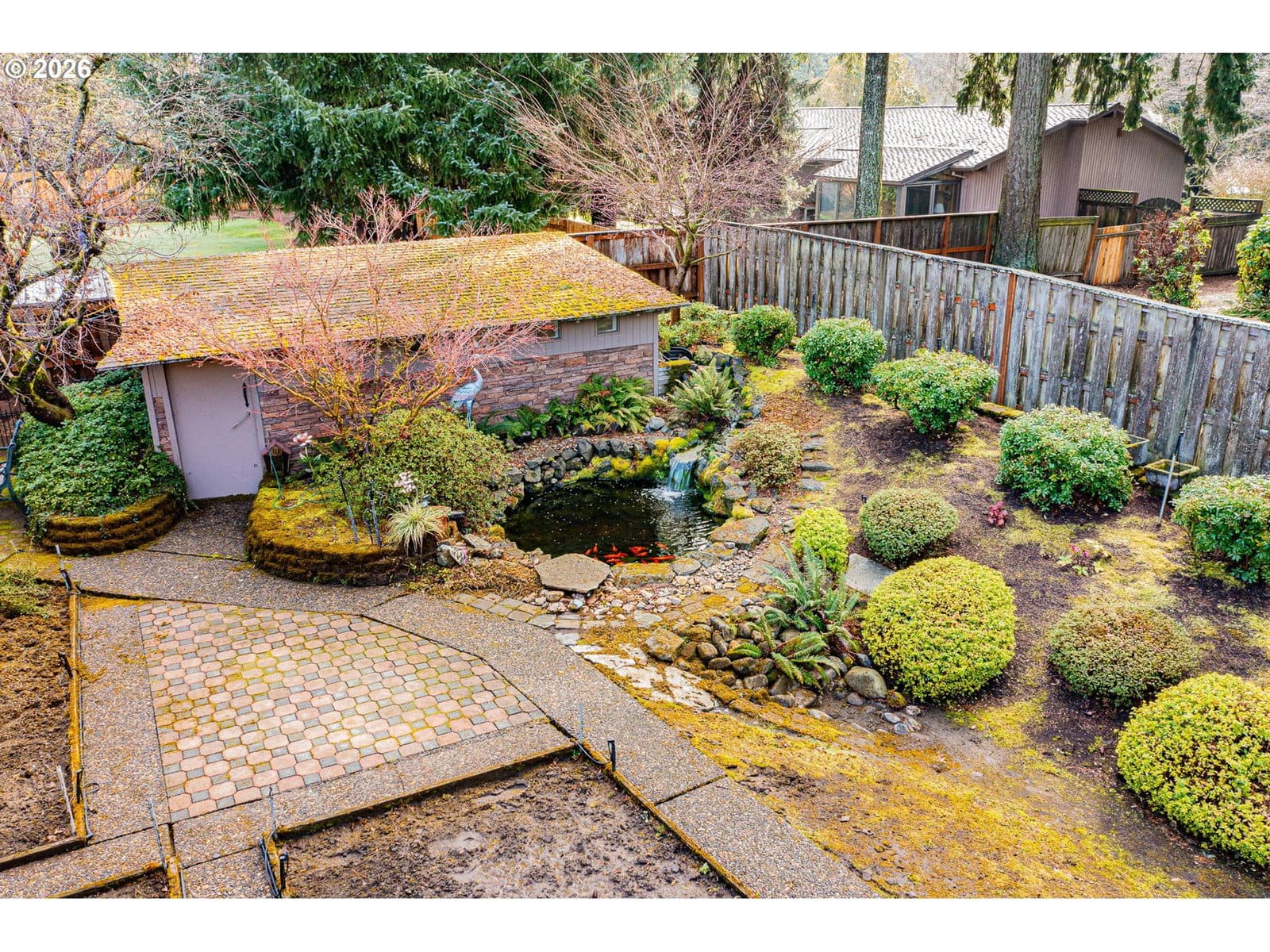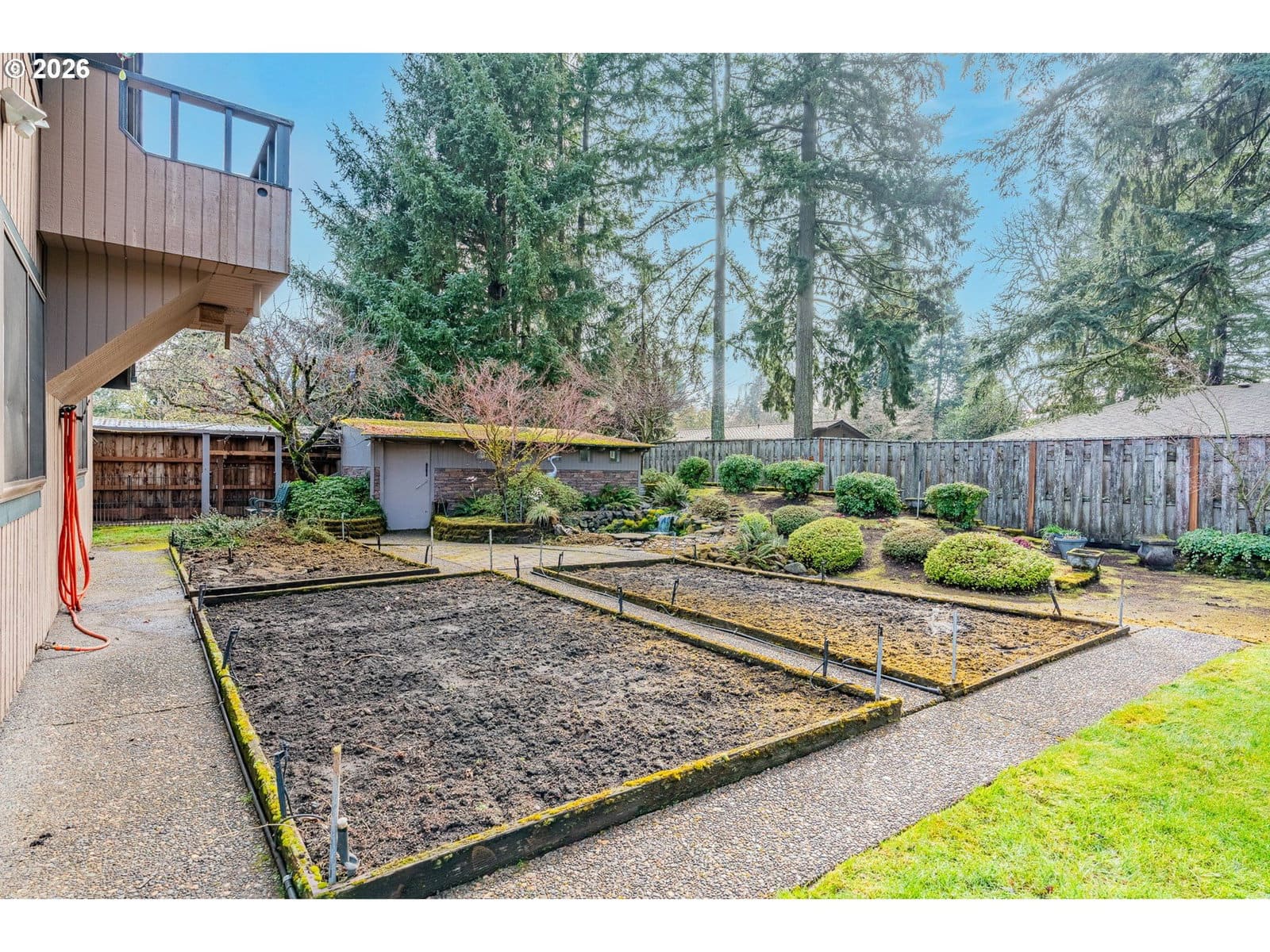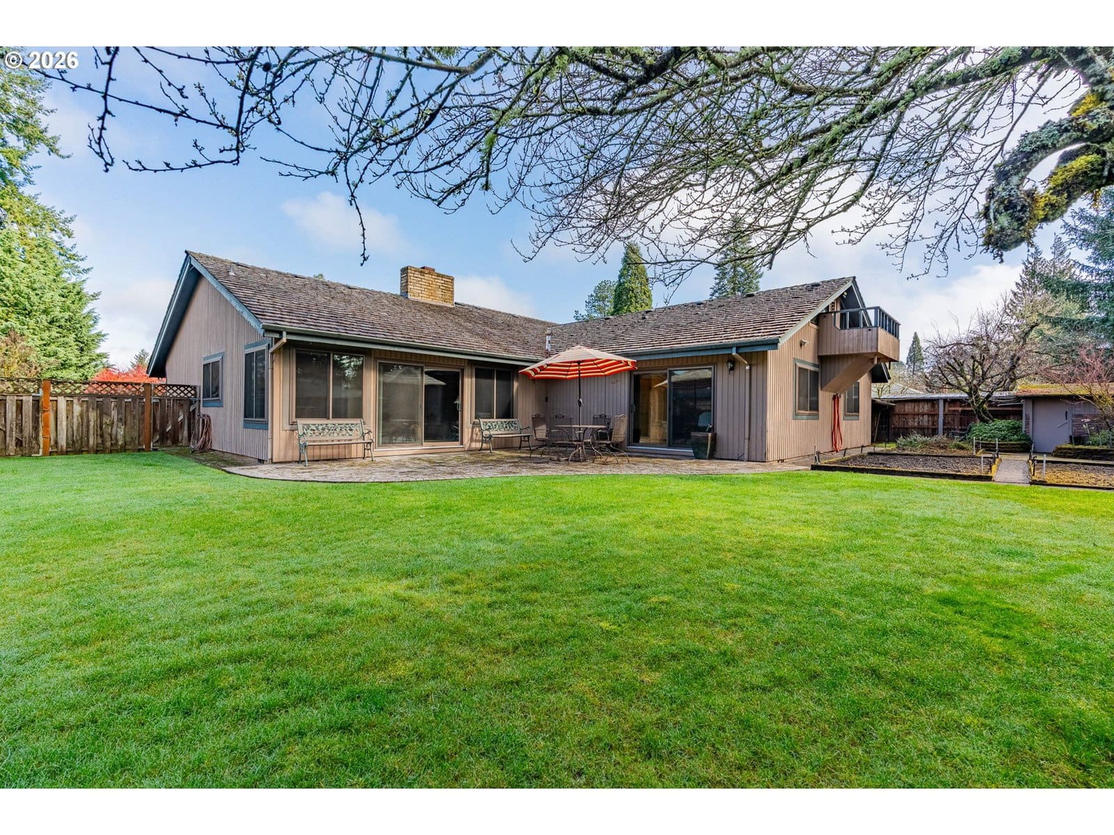 Step into timeless charm in this 4 bed, 2 bath Beaverton home filled with character and warmth. A stunning double-door entry with stained glass welcomes you into a vaulted family room with exposed wood beams and a cozy fireplace, while a separate living room also features beams and its own fireplace for added ambiance. Wood floors run throughout most of the main level, connecting the formal dining room and a kitchen equipped with stainless steel appliances. All four bedrooms are on the main floor, including one set up as an office. The primary suite offers an updated en suite bath with a glass walk-in tiled shower and a private sliding door to the backyard. A hall bath serves the additional bedrooms. Upstairs you’ll find a large flex/bonus space plus an expansive loft with two beds for visitors and a deck overlooking the yard. Situated on a huge lot, the fully fenced backyard is a private retreat with mature landscaping, a garden area, tranquil koi pond, and a stone paver patio accessed by sliding doors—perfect for indoor-outdoor living. An attached two-car garage completes this truly special property.