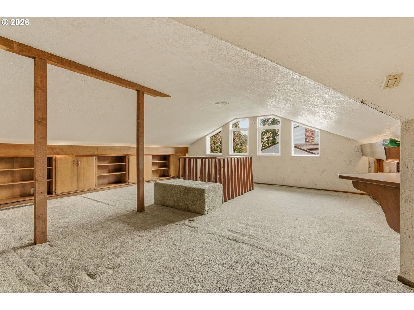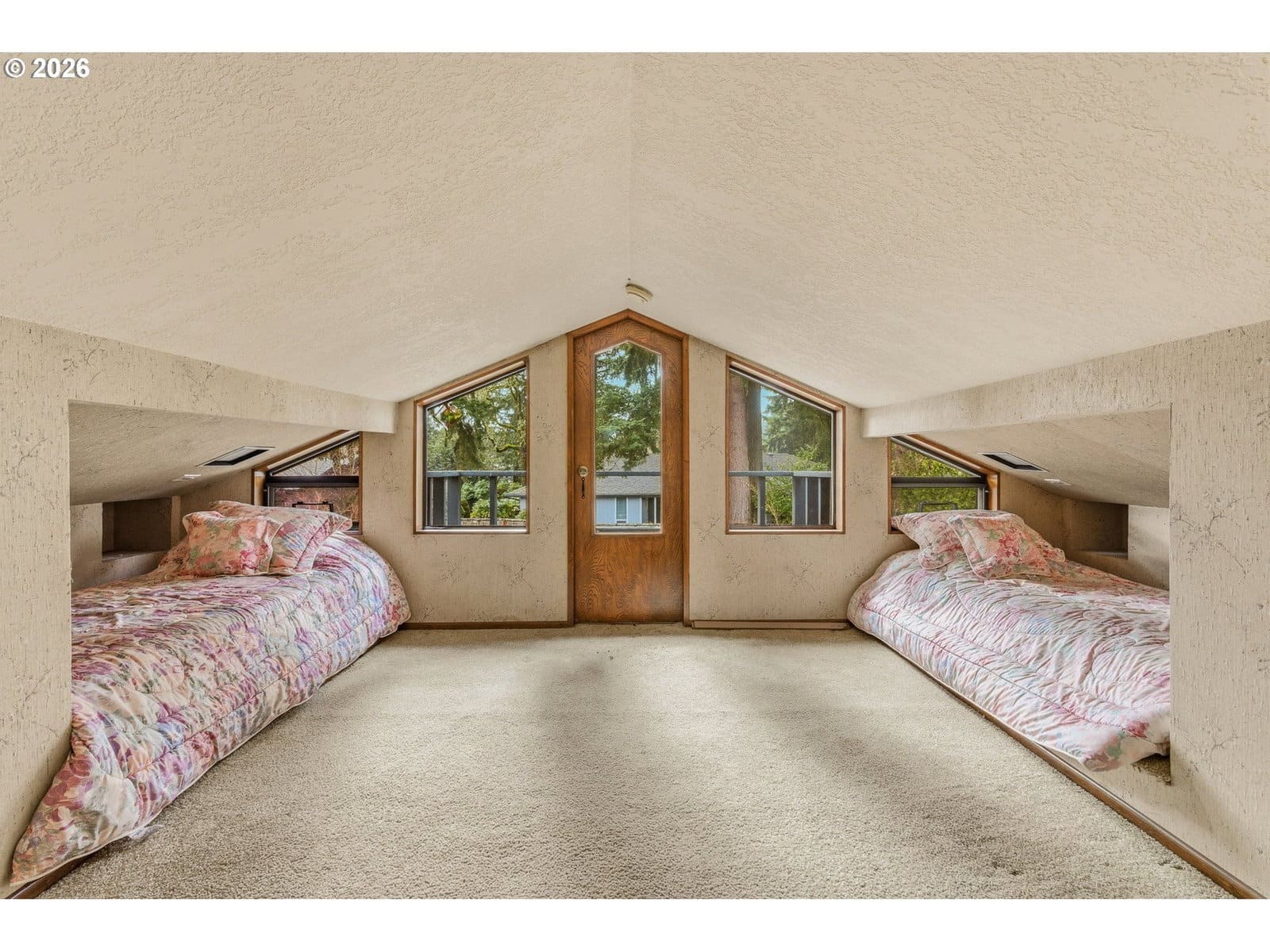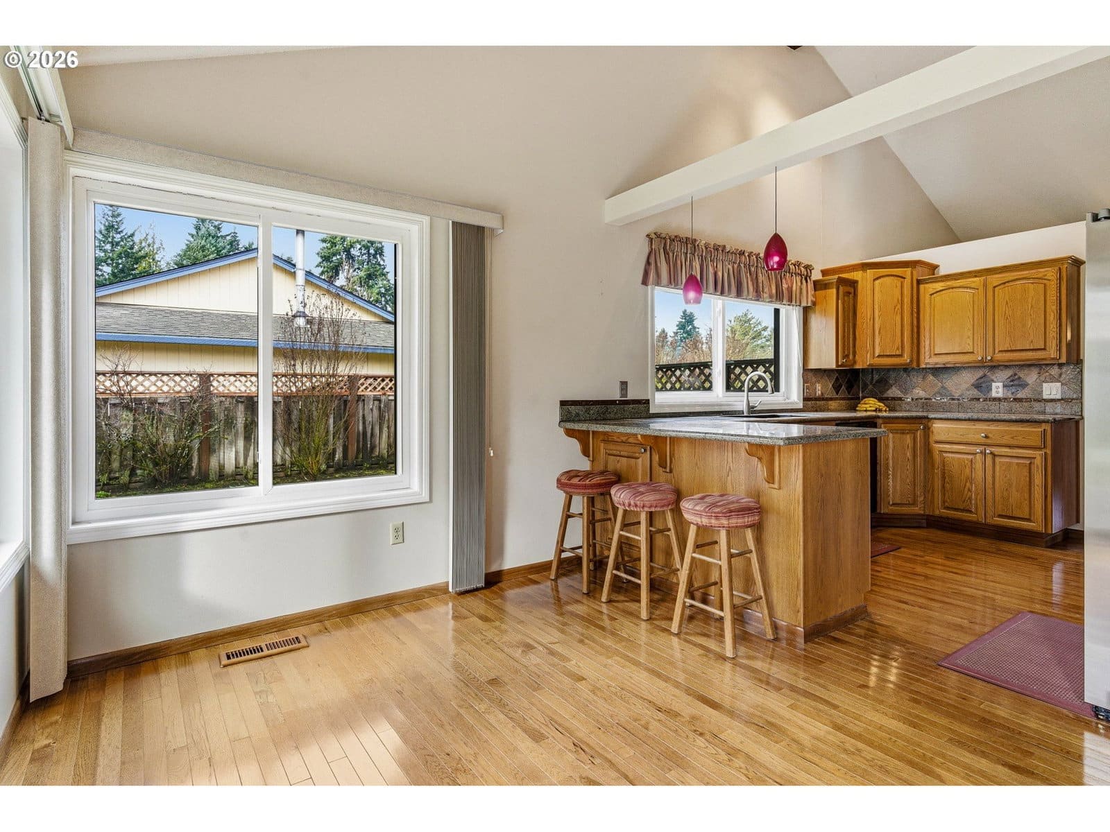 Step into timeless charm in this 4 bed, 2 bath Beaverton home filled with character and warmth. A stunning double-door entry with stained glass welcomes you into a vaulted family room with exposed wood beams and a cozy fireplace, while a separate living room also features beams and its own fireplace for added ambiance. Wood floors run throughout most of the main level, connecting the formal dining room and a kitchen equipped with stainless steel appliances. All four bedrooms are on the main floor, including one set up as an office. The primary suite offers an updated en suite bath with a glass walk-in tiled shower and a private sliding door to the backyard. A hall bath serves the additional bedrooms. Upstairs you’ll find a large flex/bonus space plus an expansive loft with two beds for visitors and a deck overlooking the yard. Situated on a huge lot, the fully fenced backyard is a private retreat with mature landscaping, a garden area, tranquil koi pond, and a stone paver patio accessed by sliding doors—perfect for indoor-outdoor living. An attached two-car garage completes this truly special property.